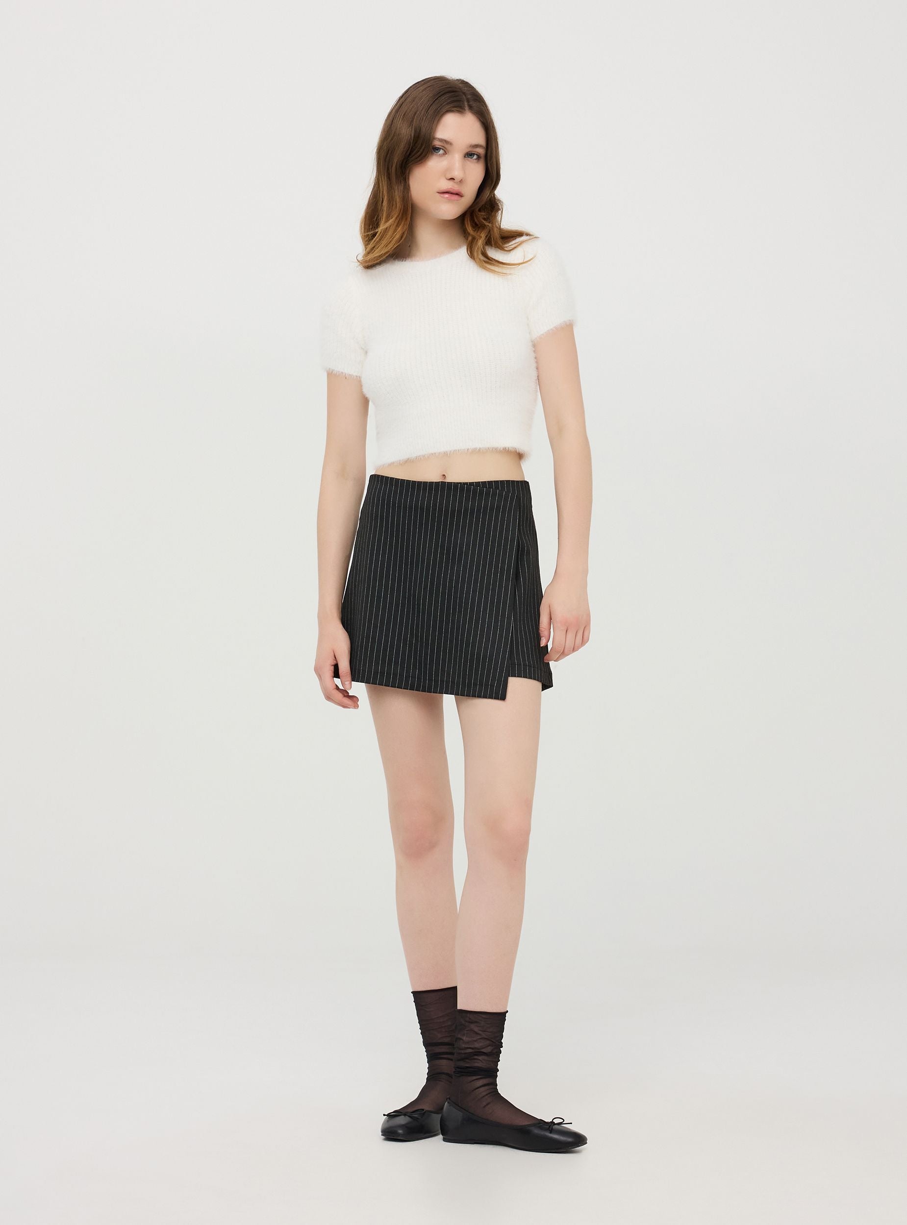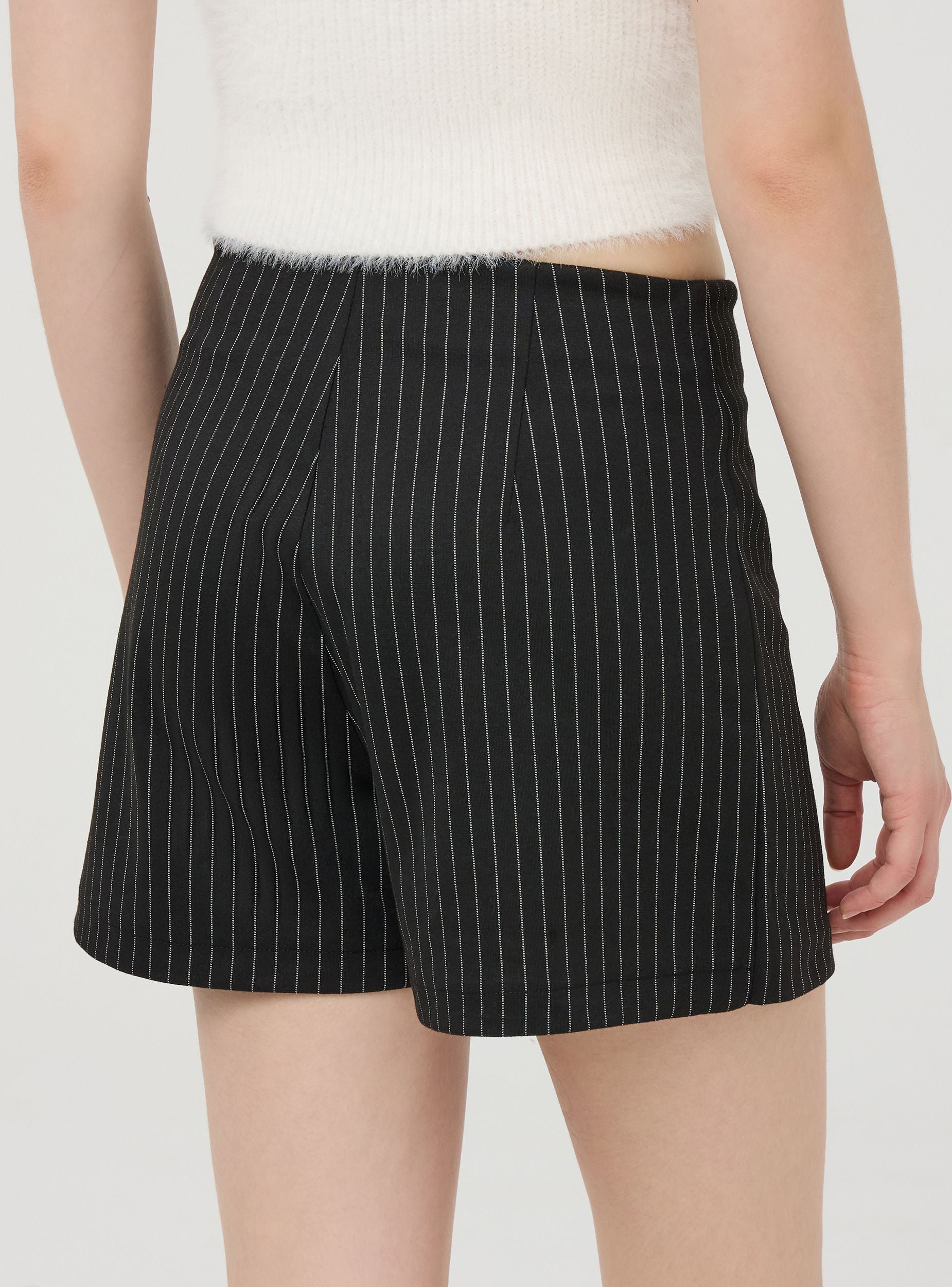 Gonna pantaloncini da donna, caratterizzata da un tessuto gessato. La gonna pantalone ha una vestibilità aderente che esalta la silhouette. Il design senza tasche e con cuciture precise accentua la sua linea elegante. Ideale per outfit casual chic.