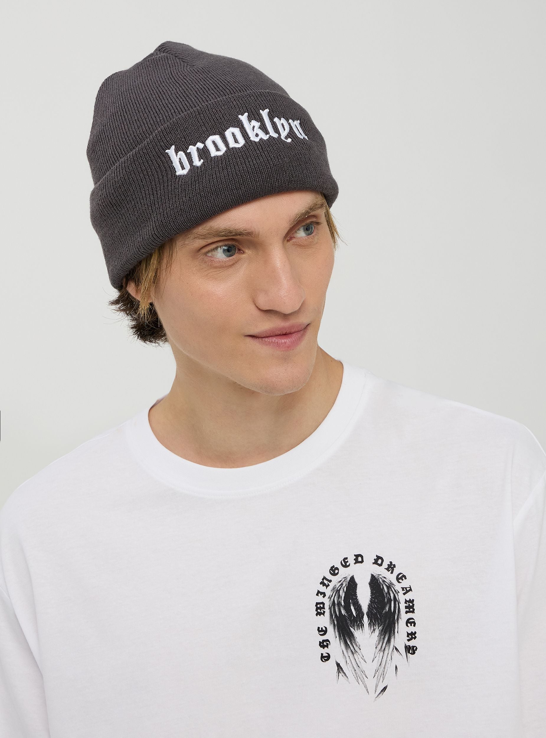 Berretto da uomo a tinta unita con scritta ricamata. Offre una morbidezza e un comfort eccezionali. Il ricamo “Brooklyn” sul risvolto aggiunge un tocco urbano e distintivo. La vestibilità aderente lo rende ideale per le giornate fredde, mentre il design semplice e versatile lo rende perfetto per occasioni casual.
