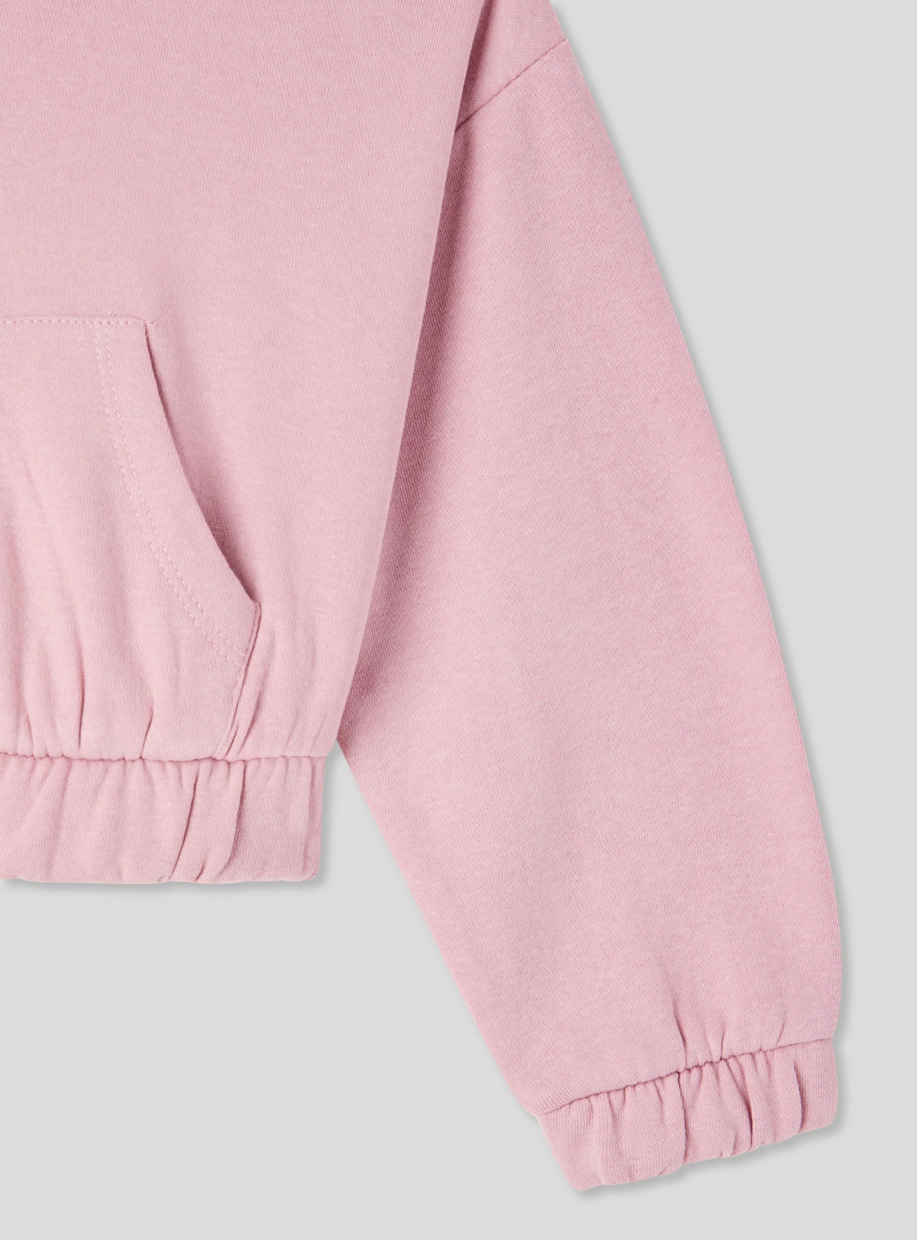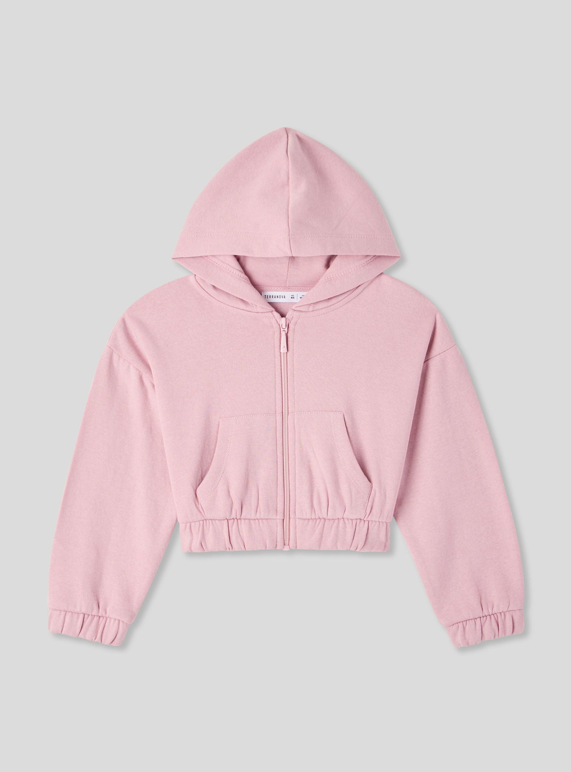 Felpa pesante da bimba con cappuccio, ideale per look casual e dinamici. Il modello crop aggiunge un tocco moderno, mentre la chiusura con zip frontale la rende pratica da indossare. Le maniche lunghe e il fondo elasticizzato assicurano comfort e libertà di movimento. Perfetta da abbinare a jeans o leggings per la scuola, il tempo libero o le uscite con gli amici. Design a tinta unita.