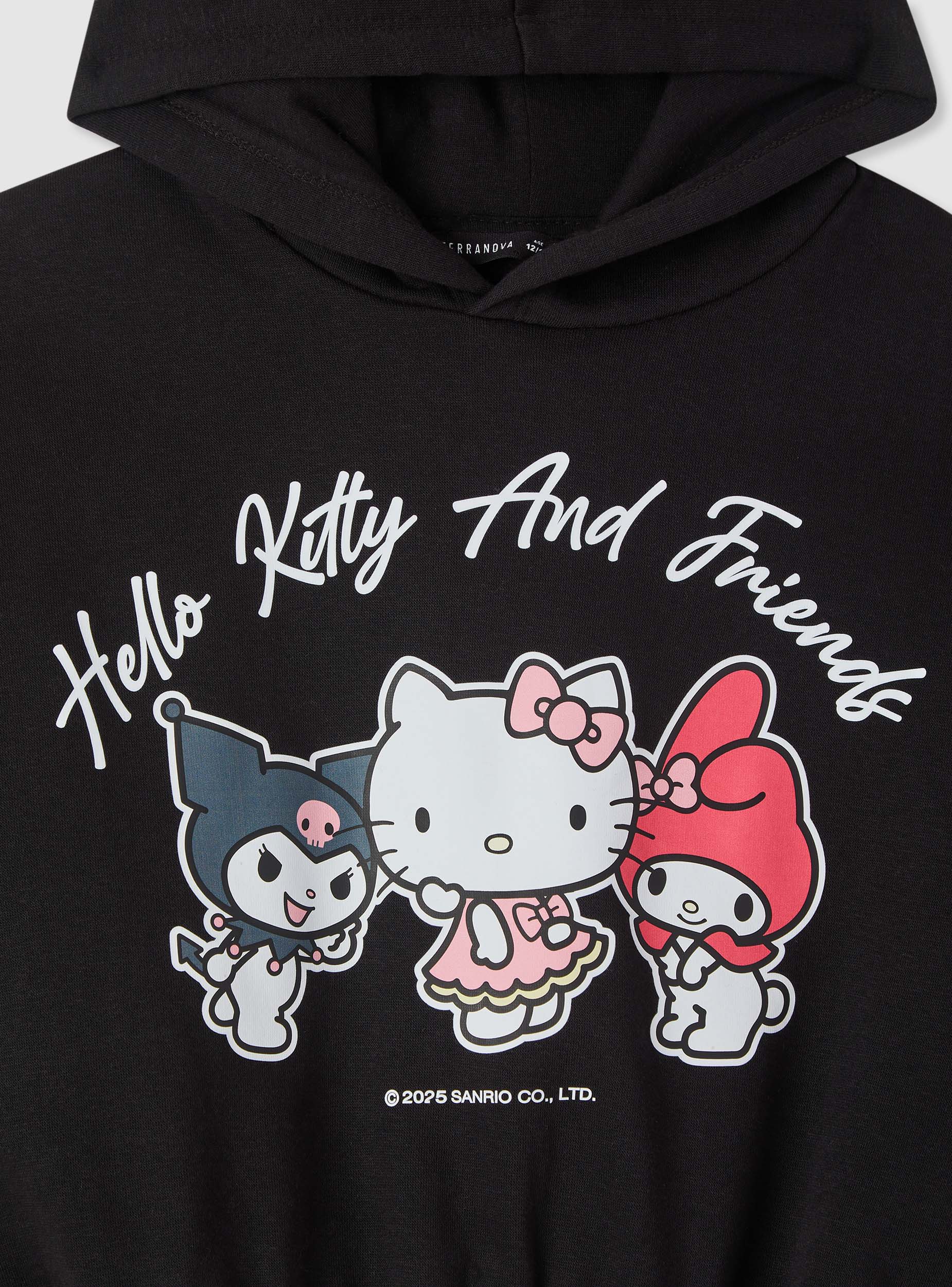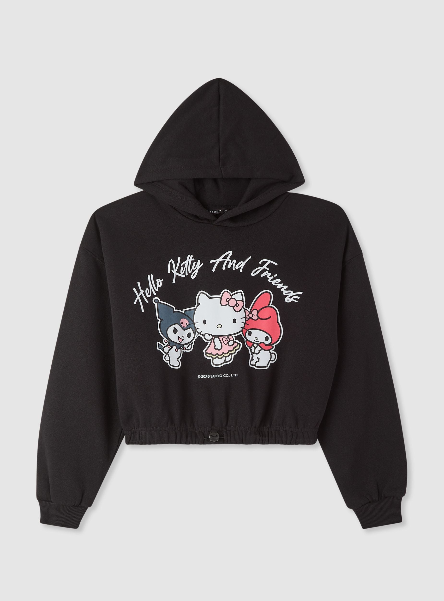 Felpa da bambina a maniche lunghe. Modello con cappuccio e senza zip, vestibilità crop e stampa lettering e personaggi Hello Kitty® sul davanti. Ideale per il tempo libero e la scuola, si abbina a jeans o pantaloncini per look casual.