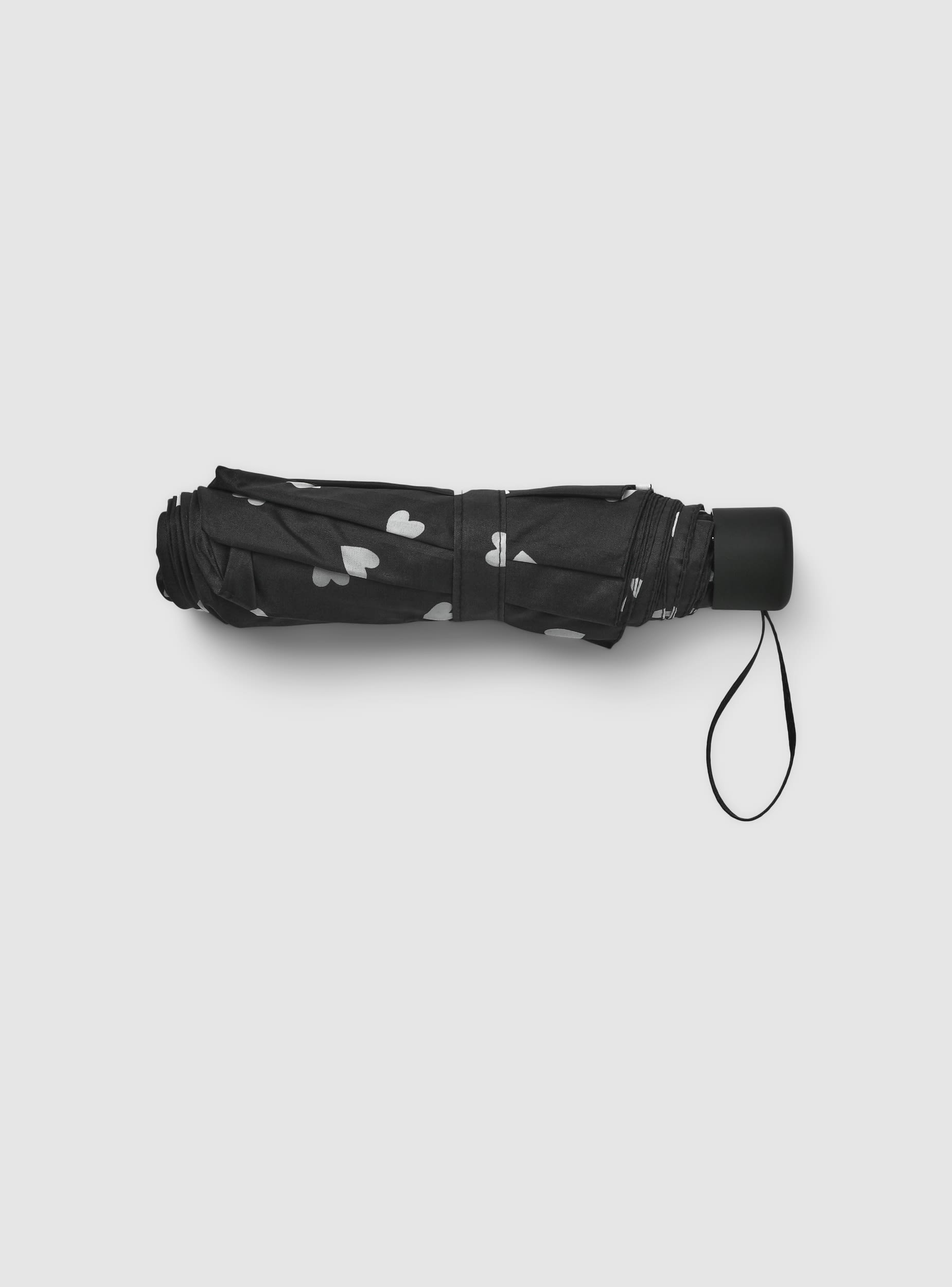Ombrello da donna pieghevole con stampa a cuori. Ideale per proteggersi dalla pioggia con stile, grazie al design compatto e pratico. Perfetto da portare in borsa. La stampa a cuori aggiunge un tocco di femminilità e originalità. Un accessorio indispensabile per affrontare le giornate piovose con eleganza e praticità.