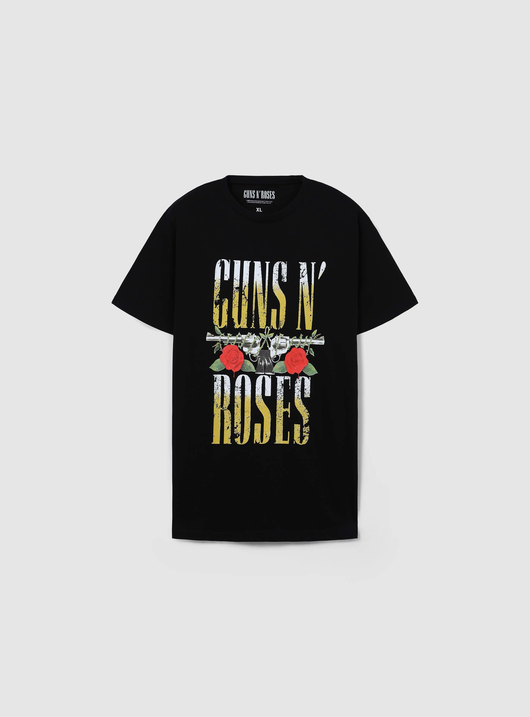 Maglietta da uomo dal design grintoso, perfetta per gli appassionati di musica rock. Il modello a maniche corte e girocollo garantisce comfort e versatilità, mentre la stampa frontale Guns N' Roses® aggiunge un tocco deciso e iconico. Ideale per un look casual con jeans e sneakers o da abbinare a una giacca in pelle per un outfit dal carattere audace, perfetto per concerti e uscite serali.