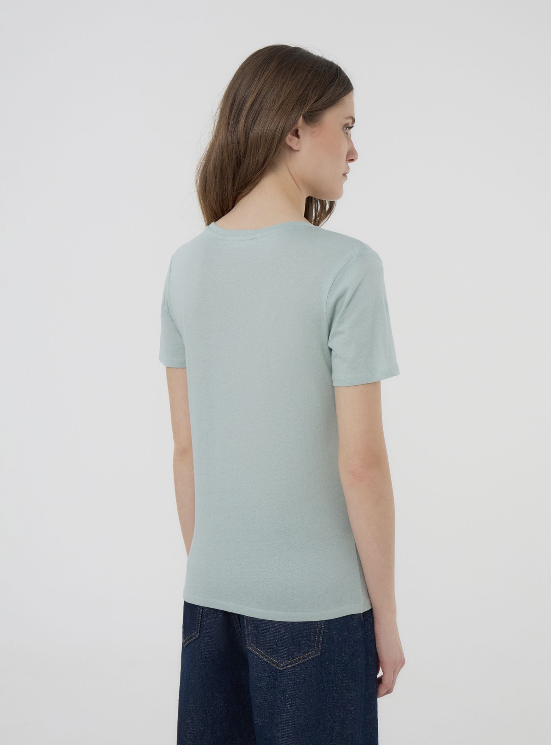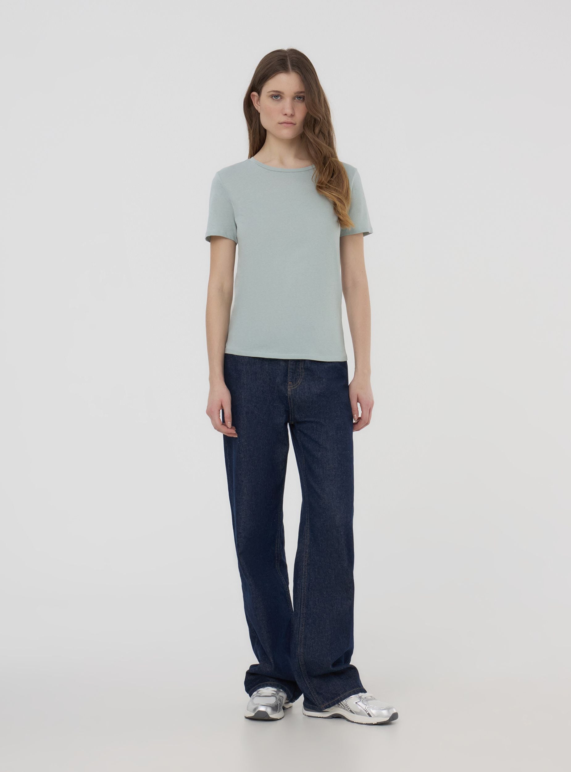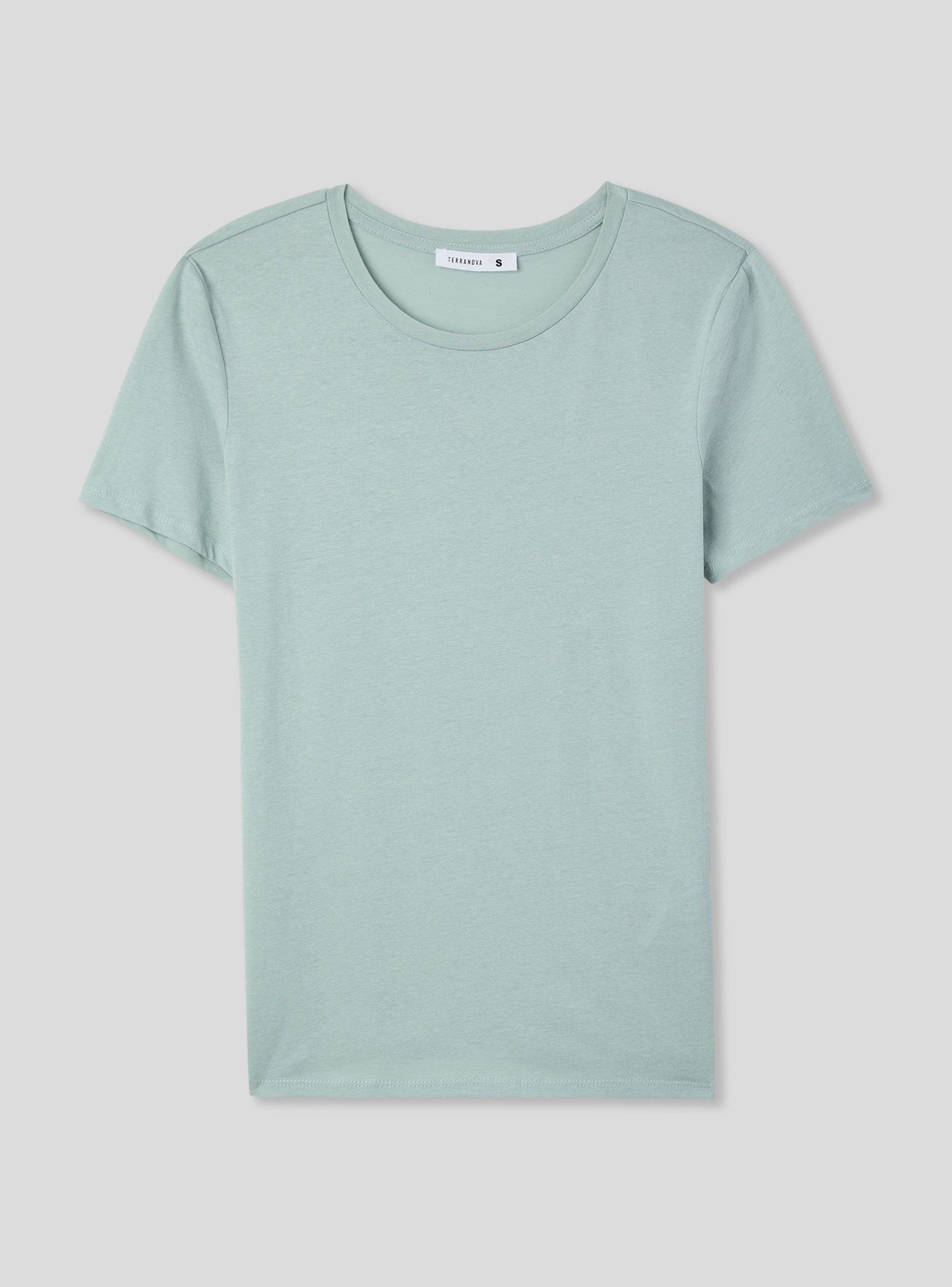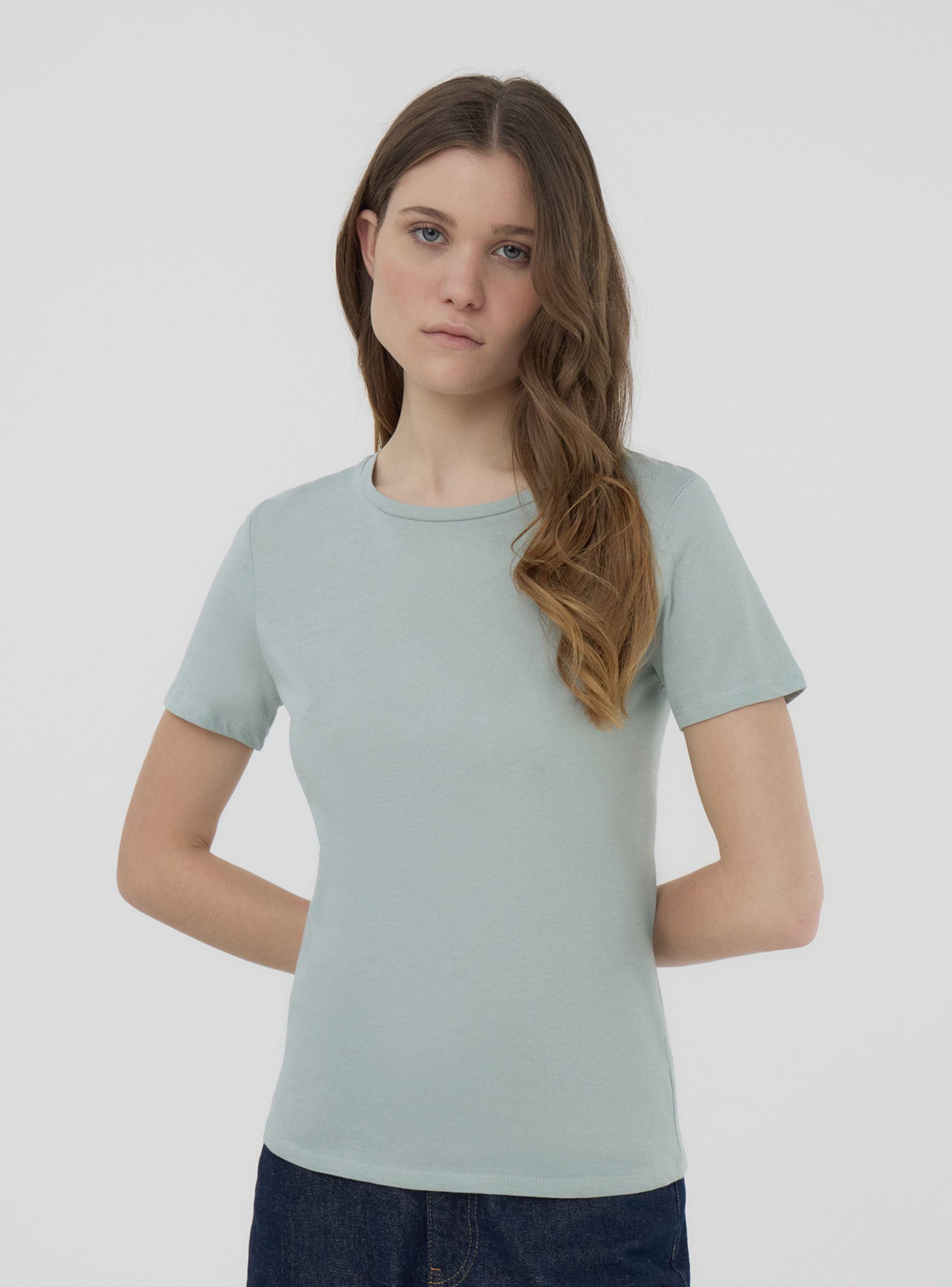 Maglietta da donna dal design essenziale. Presenta maniche corte e uno scollo rotondo, offrendo una vestibilità comoda e versatile. Il design è liscio, senza decorazioni, rendendola perfetta per essere abbinata a vari look, sia casual che sportivi. La parte posteriore segue lo stesso stile semplice e pulito, mantenendo un aspetto minimalista.Dettagli
