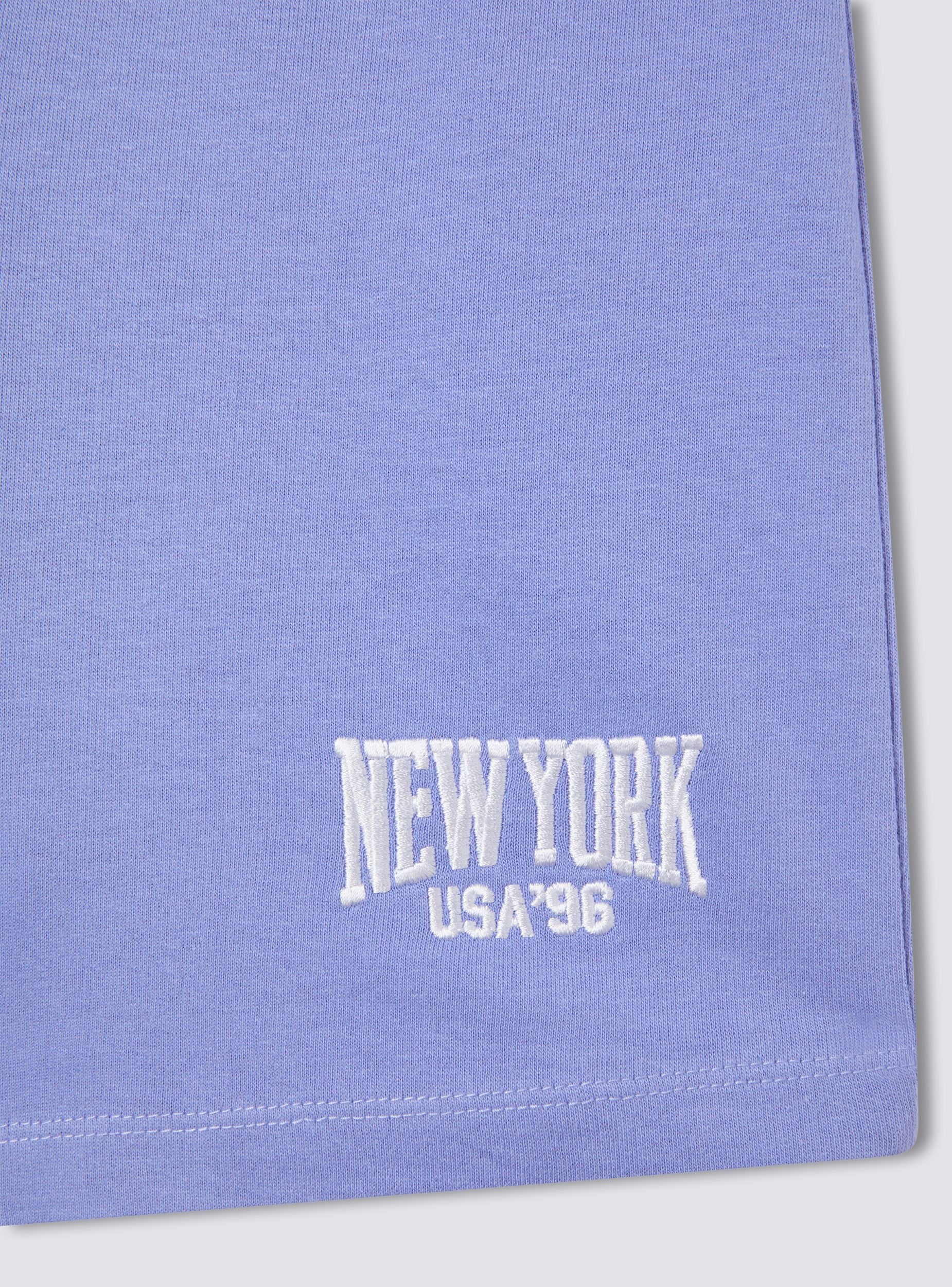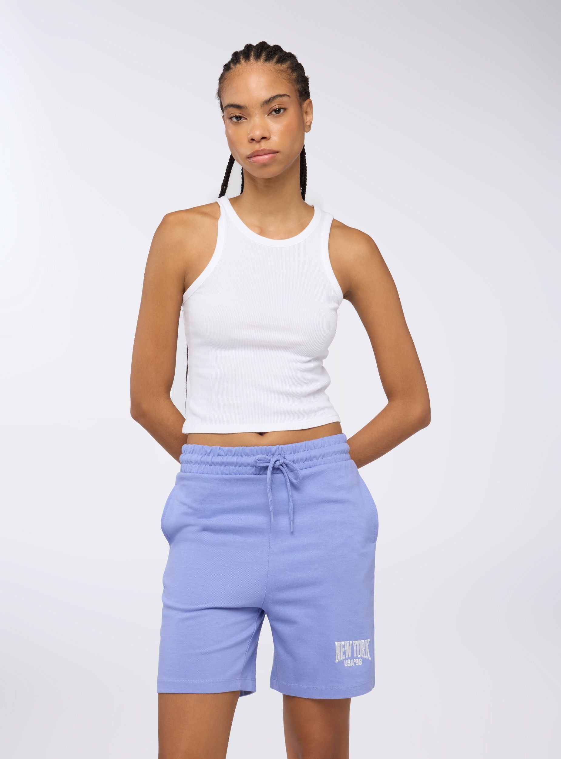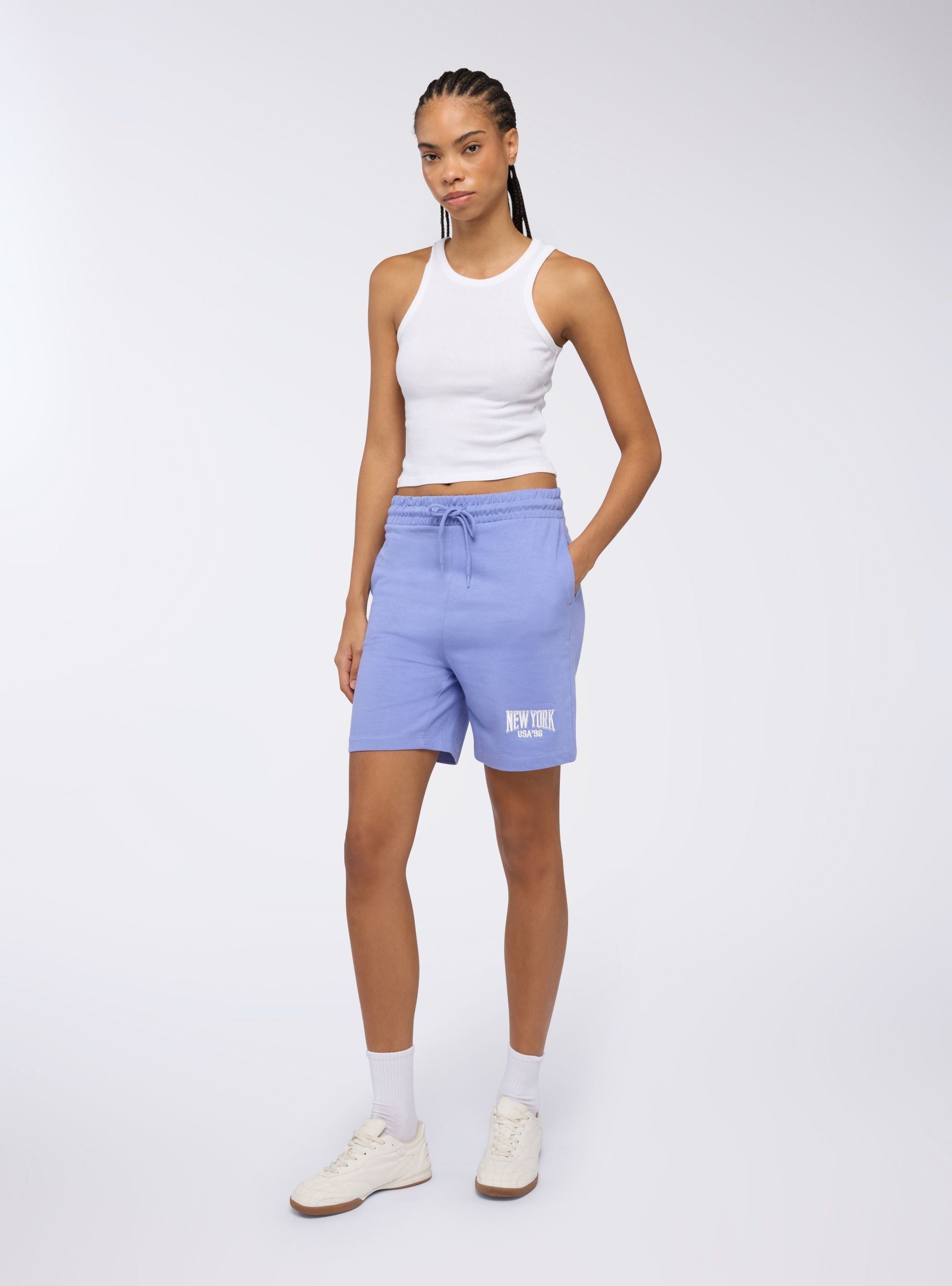 Pantaloncini da donna, modello bermuda, ideali per un look casual e rilassato. Perfetti per il tempo libero, si abbinano facilmente a t-shirt e sneakers per un outfit comodo e alla moda. Il design include una scritta ricamata in stile college americano che aggiungono un tocco di stile unico, rendendoli adatti per passeggiate in città o momenti di relax.Dettagli
