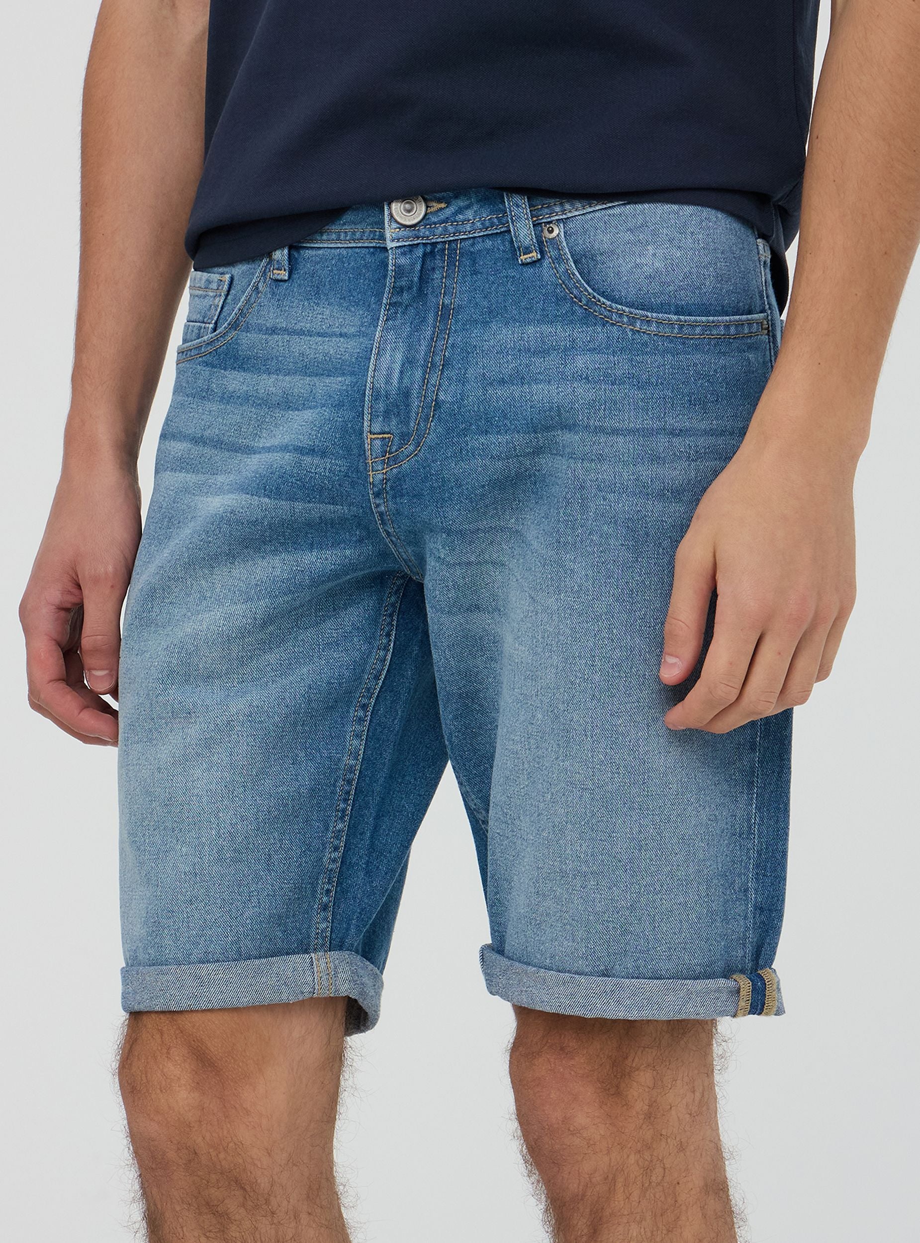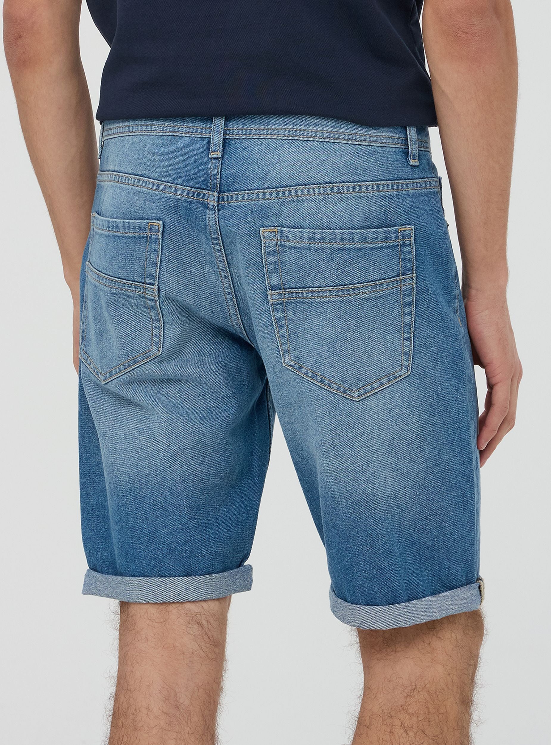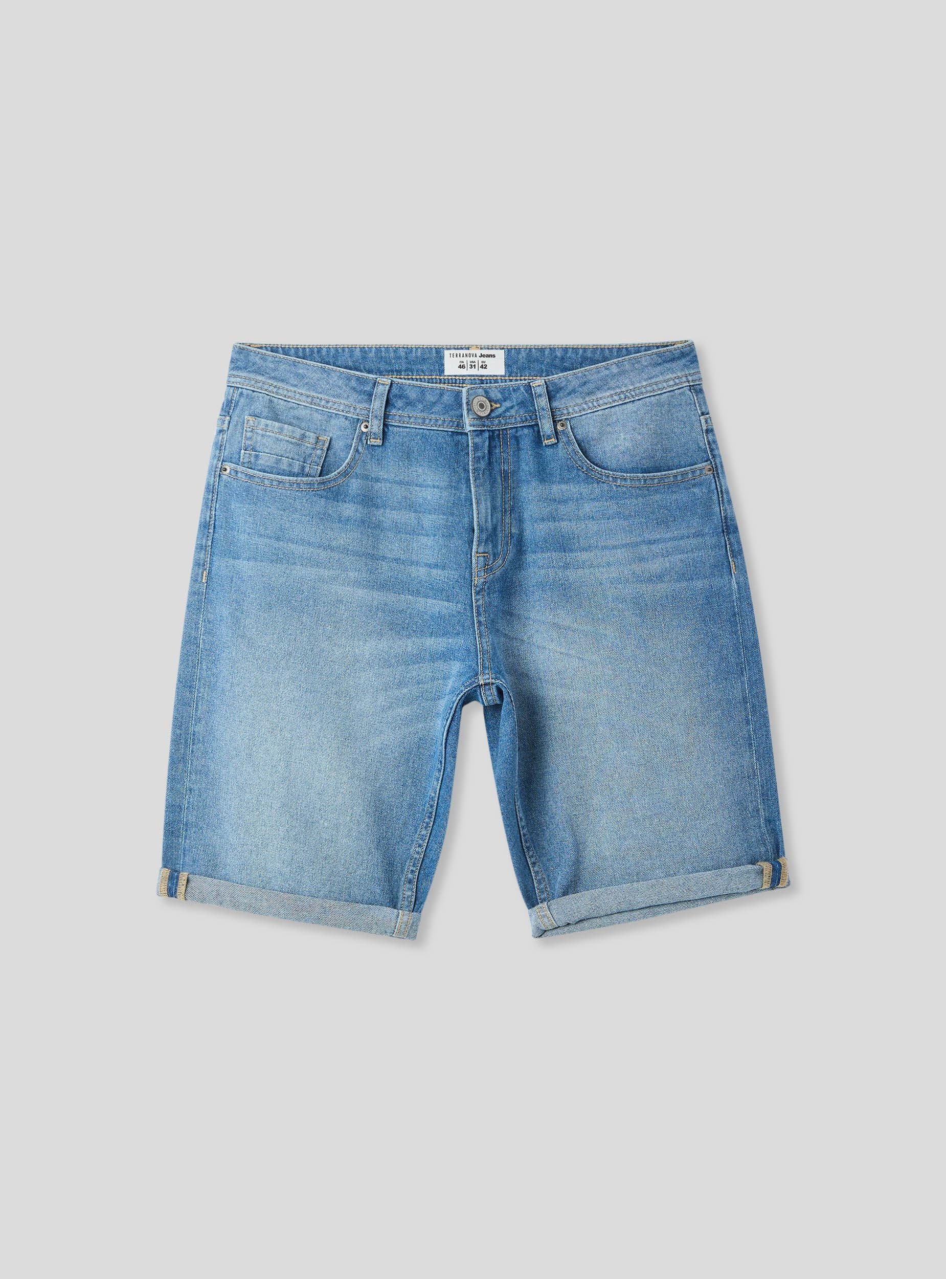 Pantaloncini di jeans da uomo in stile bermuda, perfetti per un look estivo casual e versatile. Caratterizzati da un design a cinque tasche e un lavaggio medio, sono dotati di chiusura con bottone e zip e passanti in vita per l’uso con cinture. Ideali da abbinare a t-shirt o camicie leggere, per outfit adatti al tempo libero o a passeggiate estive.
