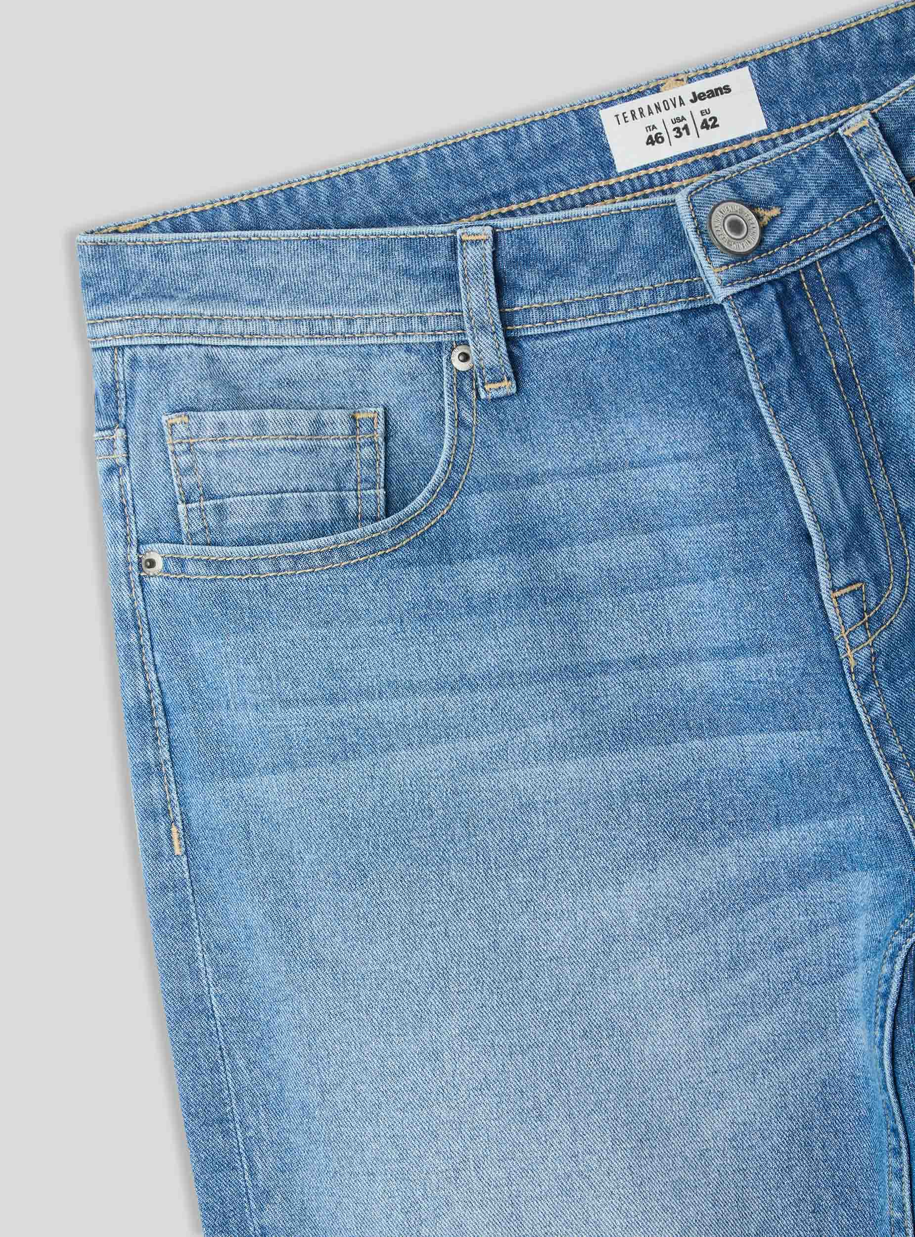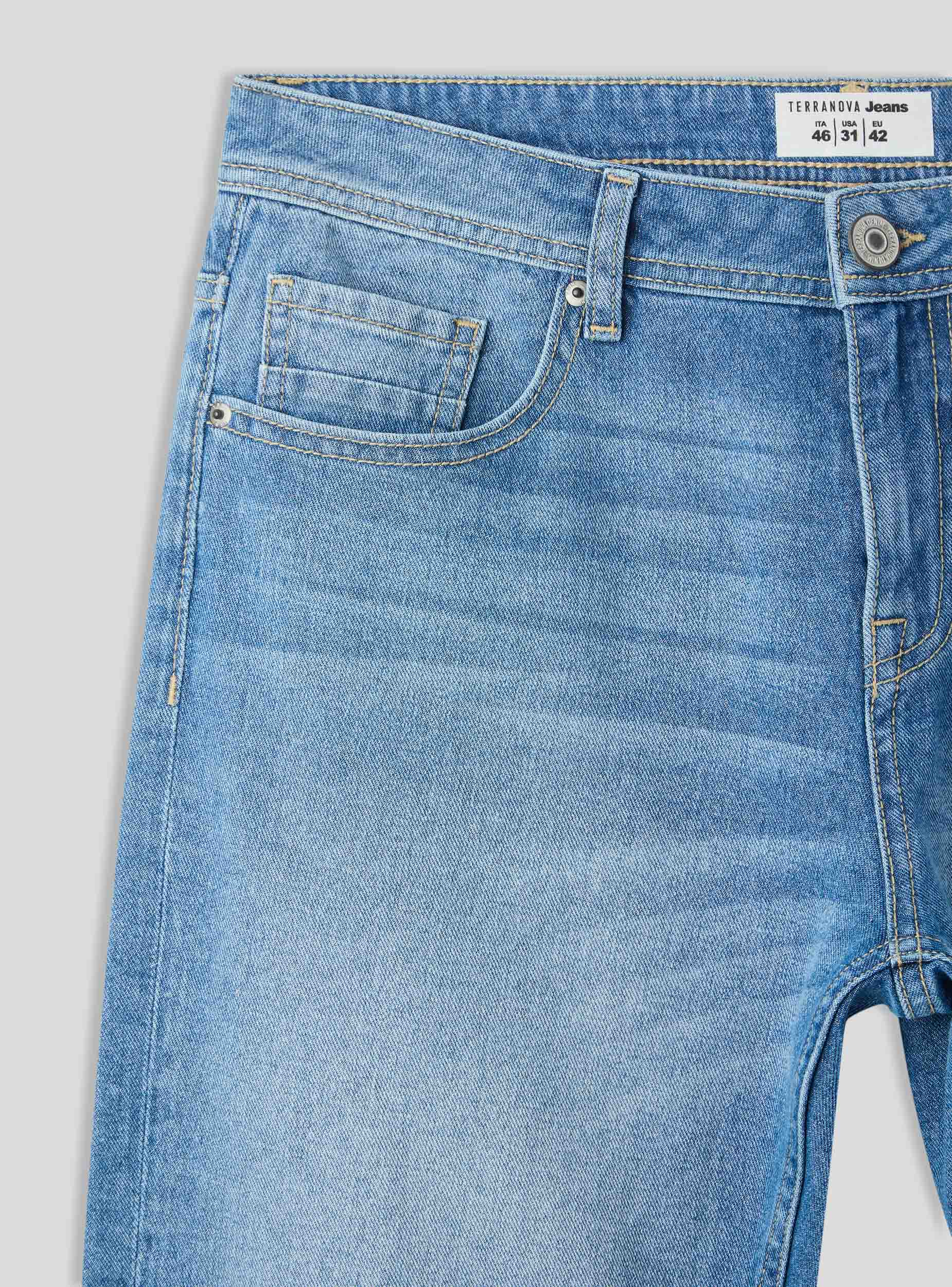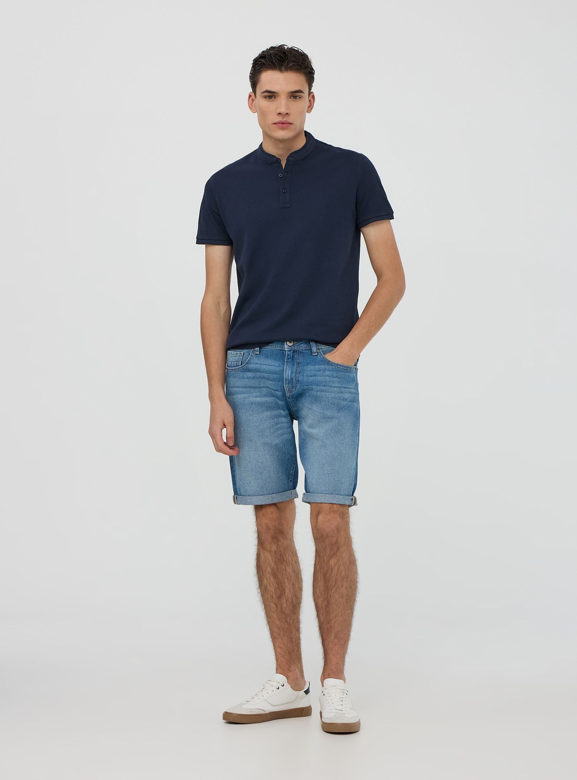Pantaloncini di jeans da uomo in stile bermuda, perfetti per un look estivo casual e versatile. Caratterizzati da un design a cinque tasche e un lavaggio medio, sono dotati di chiusura con bottone e zip e passanti in vita per l’uso con cinture. Ideali da abbinare a t-shirt o camicie leggere, per outfit adatti al tempo libero o a passeggiate estive.