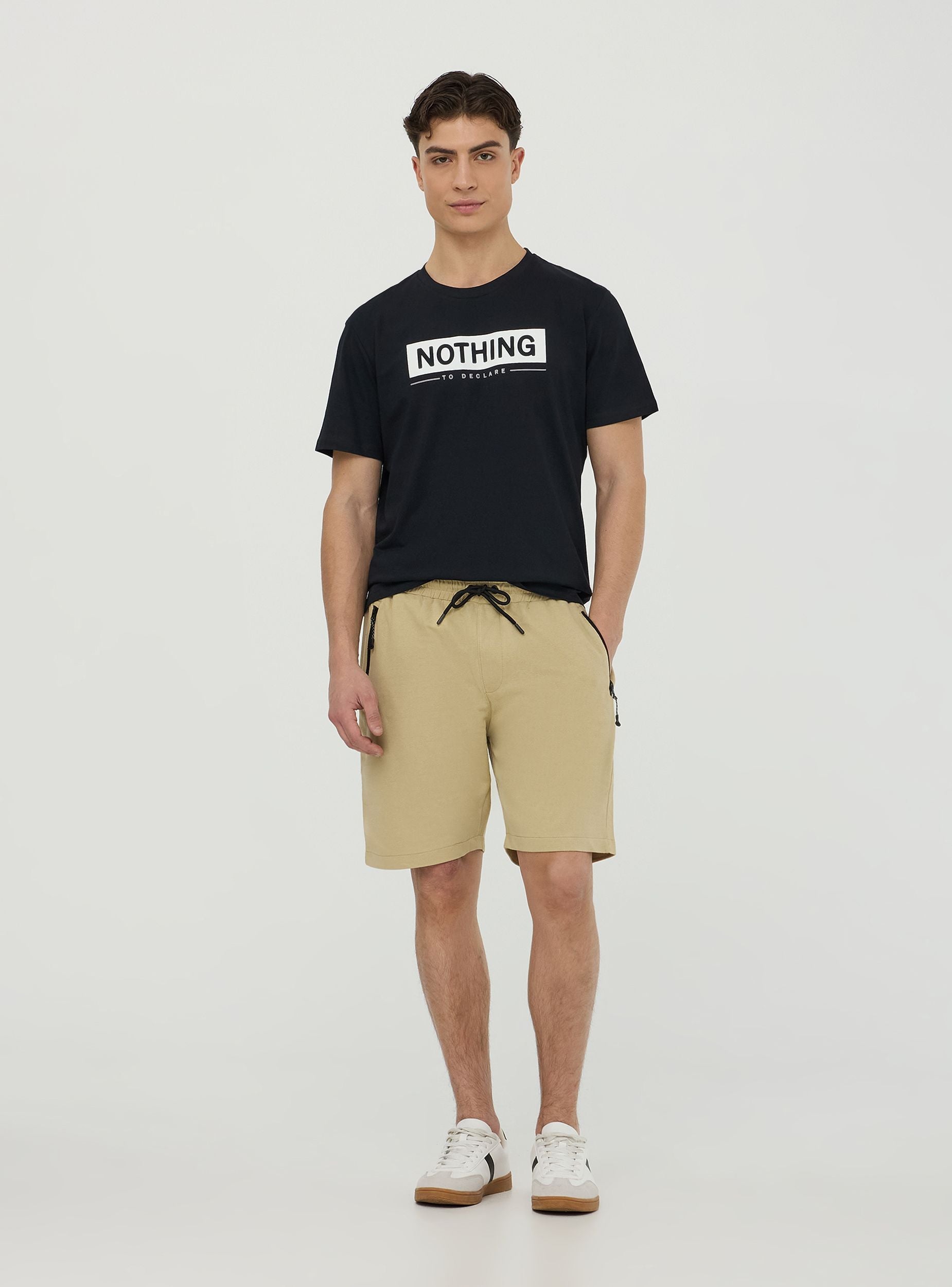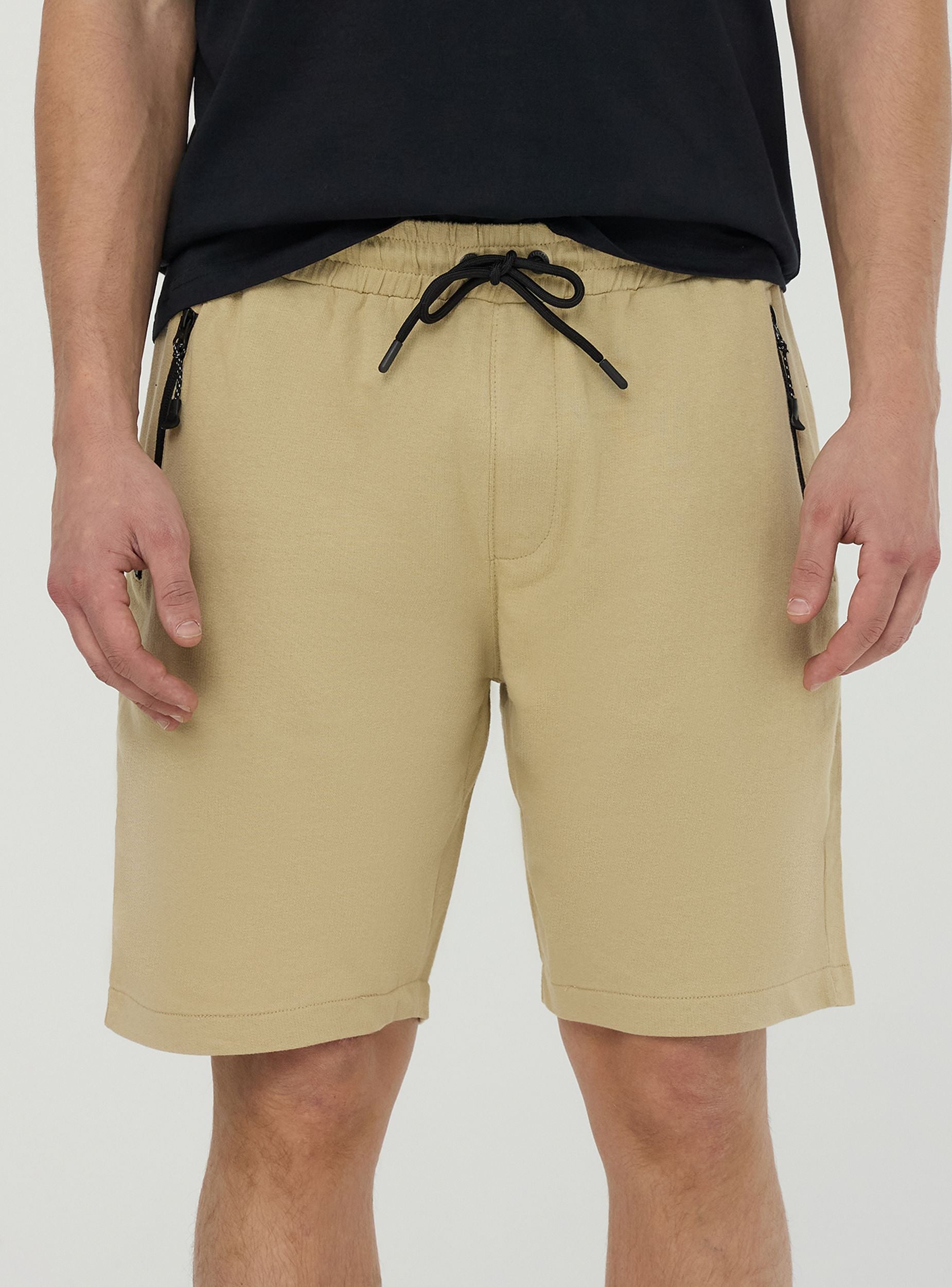 Pantaloncini della tuta in tessuto leggero da uomo. Questi bermuda da uomo sono perfetti per il tempo libero, realizzati in tessuto tecnico ideale per garantire comfort e praticità. Dotati di una comoda coulisse e di elastico in vita per una vestibilità regolabile. Le tasche con zip aggiungono funzionalità e stile, rendendoli adatti per attività outdoor o per momenti di relax durante la stagione estiva.