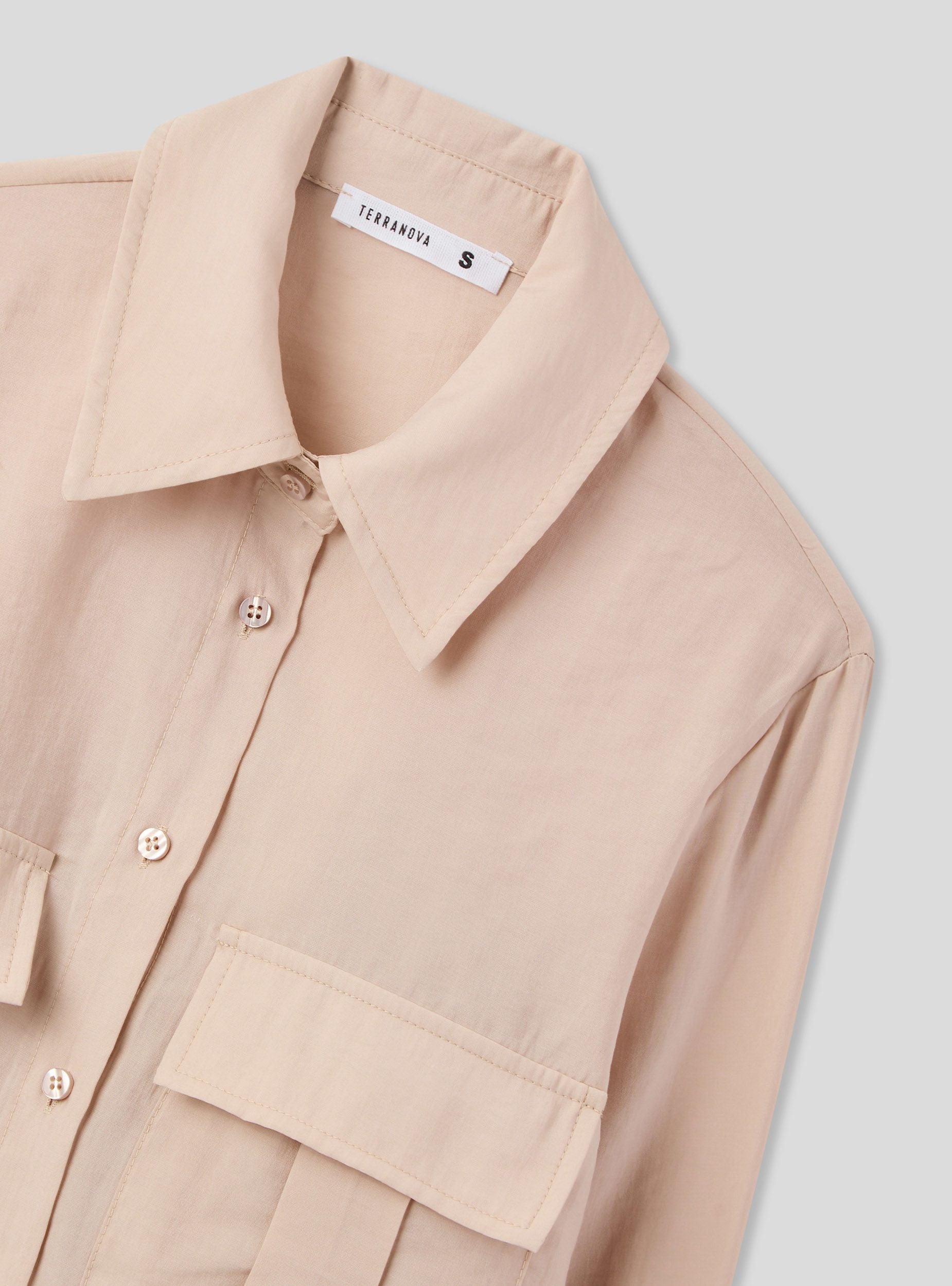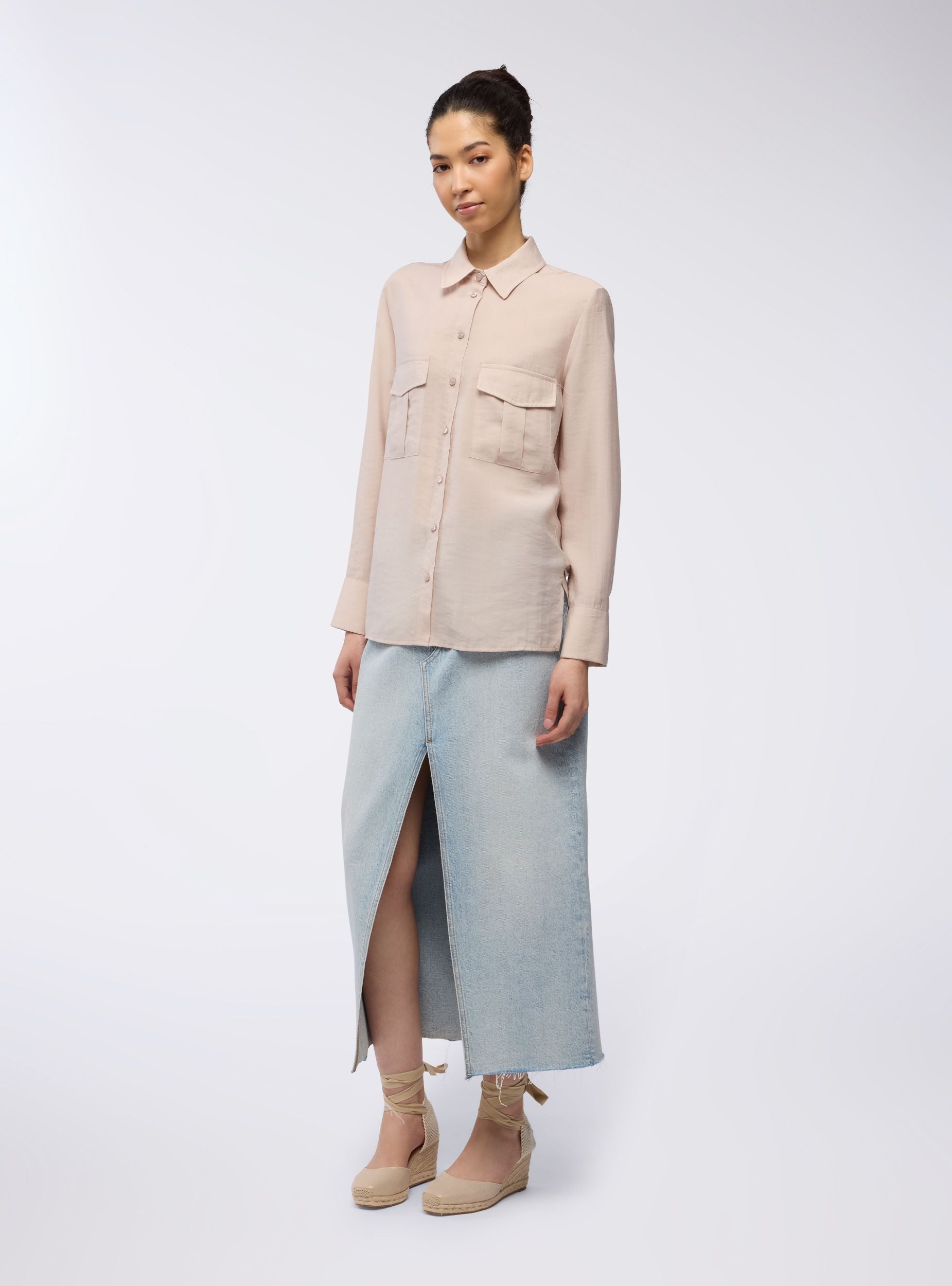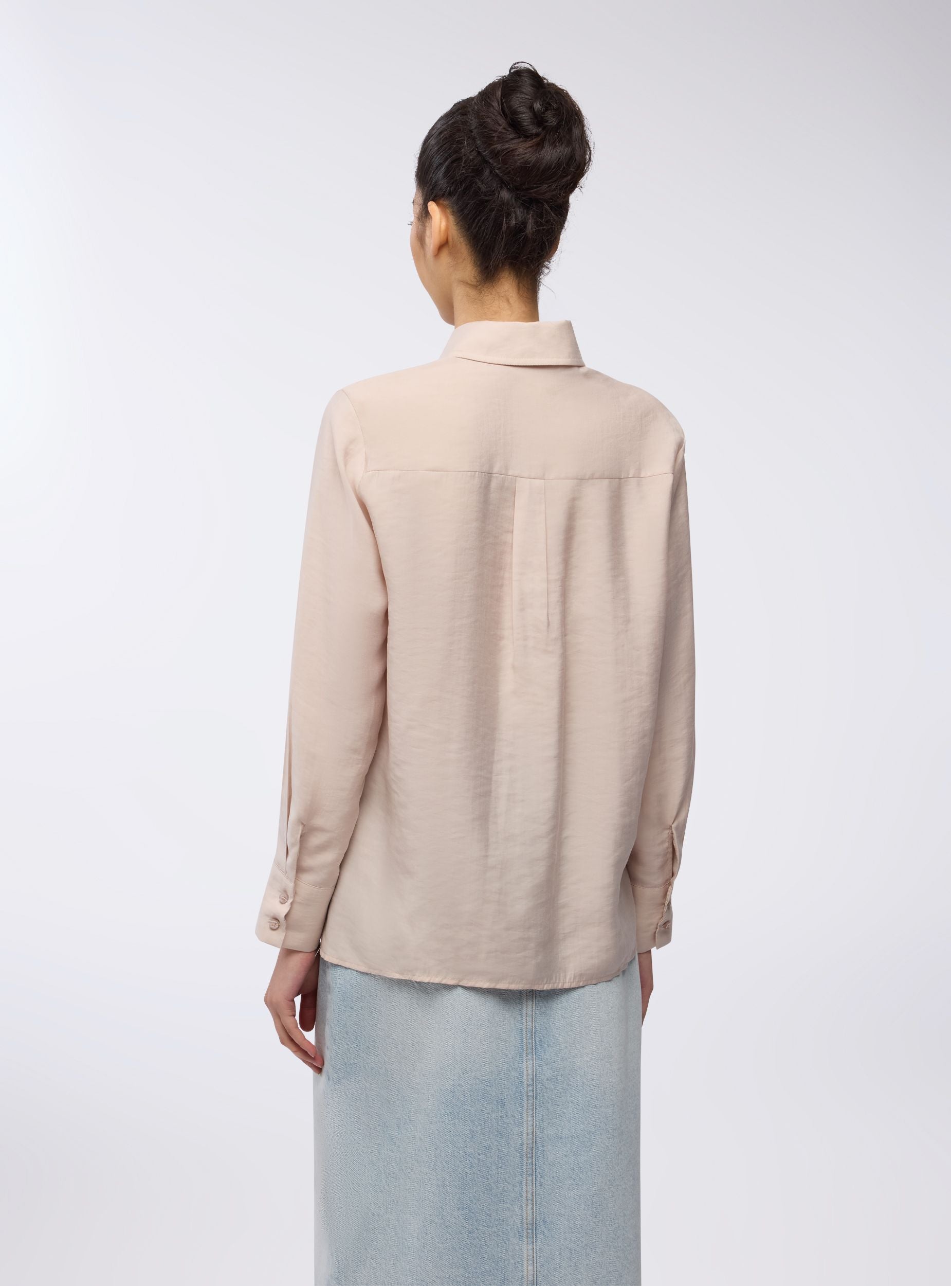 Camicia da donna ideale per un look da ufficio o un outfit casual. Caratterizzata da una vestibilità ampia , presenta maniche lunghe, colletto classico e tasche applicate sul davanti. Un capo versatile e raffinato, grazie al tessuto a tinta unita è facile da abbinare.