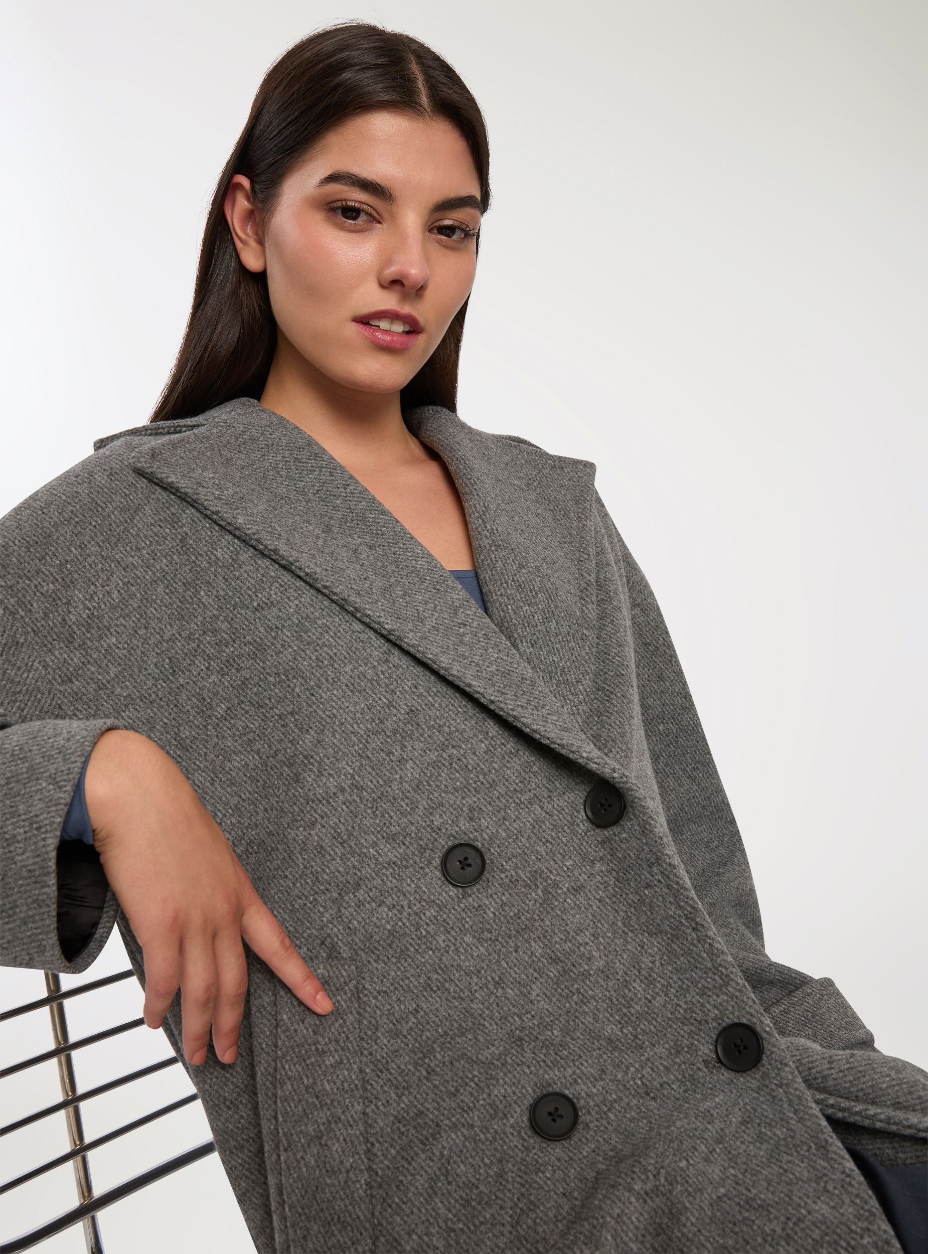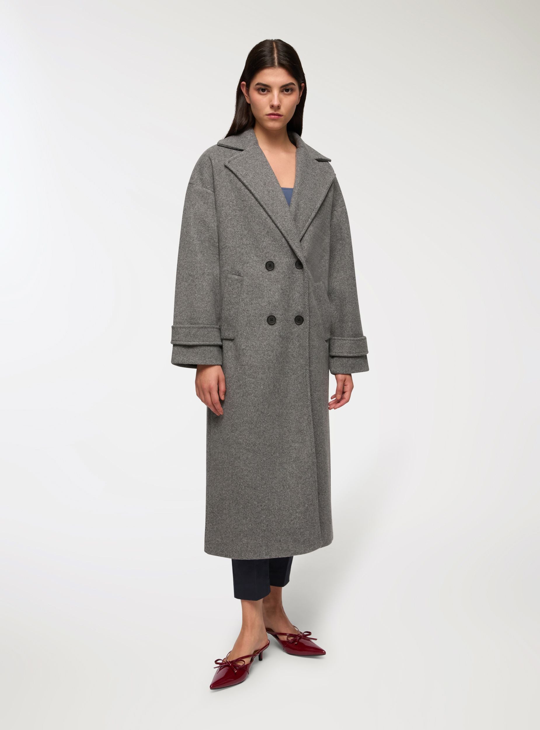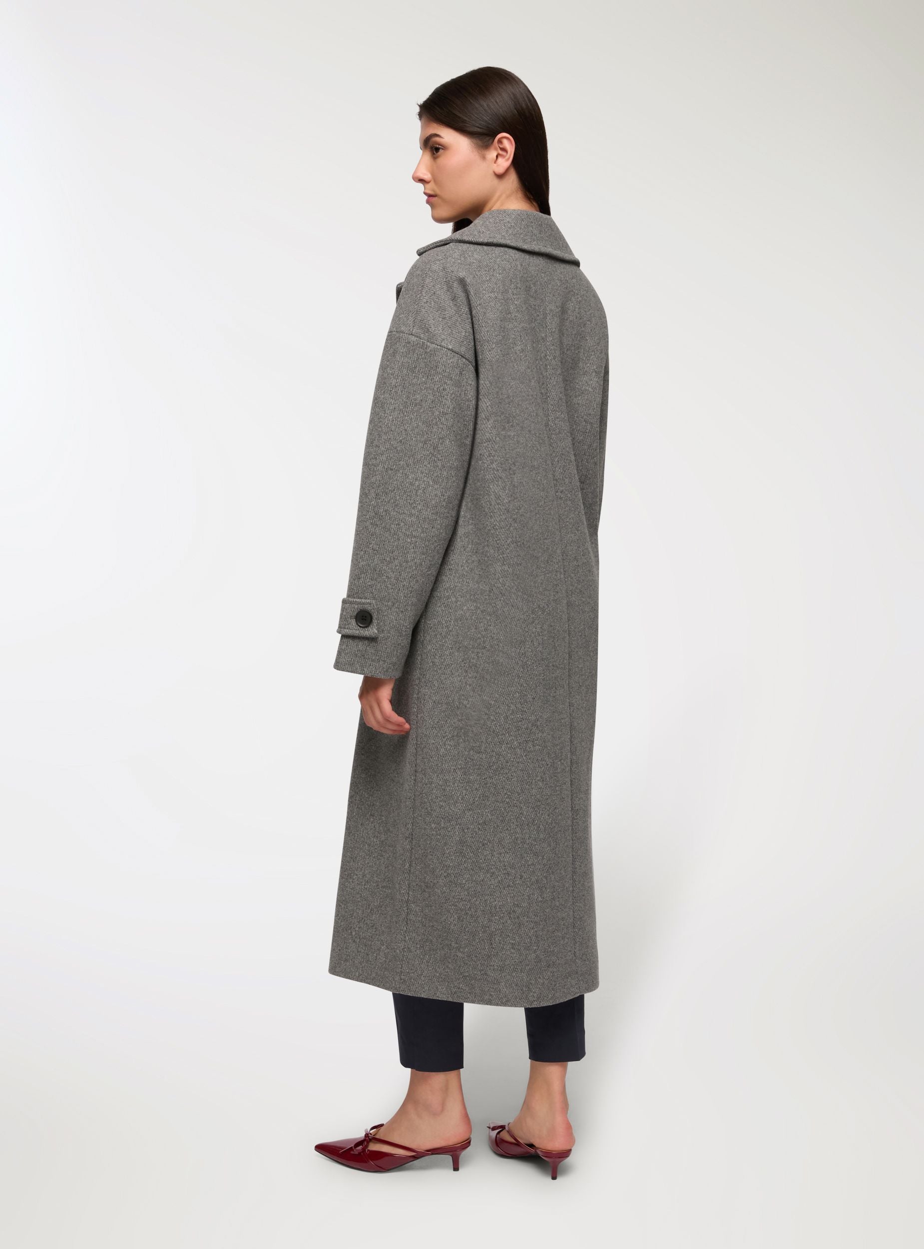 Cappotto lungo doppiopetto over spinato