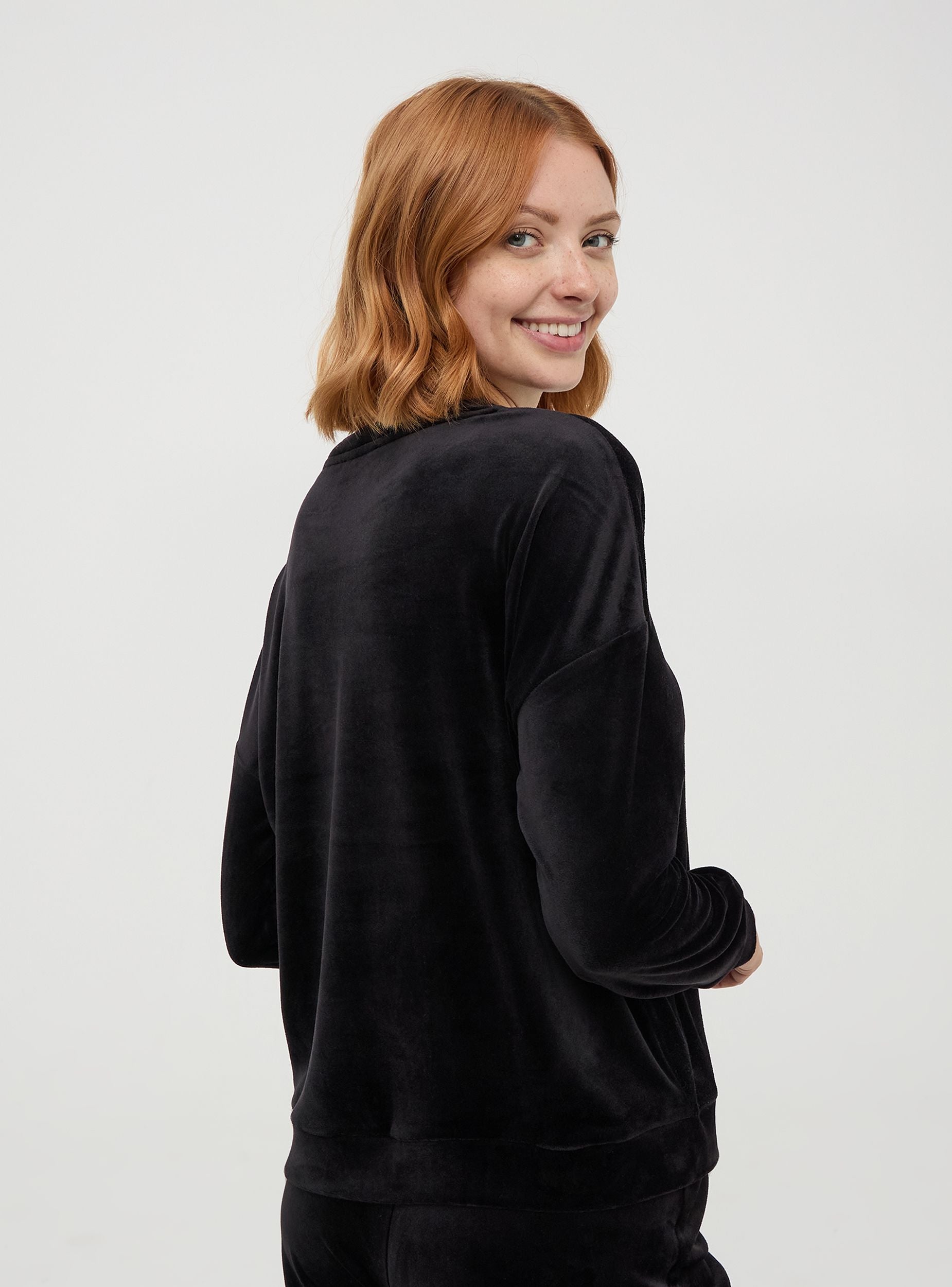 Felpa da donna in morbida ciniglia a tinta unita, modello senza cappuccio. Perfetta per le giornate più fresche e per un look casual chic, questa felpa ti farà sentire comoda e alla moda in ogni occasione. Vestibilità regular.