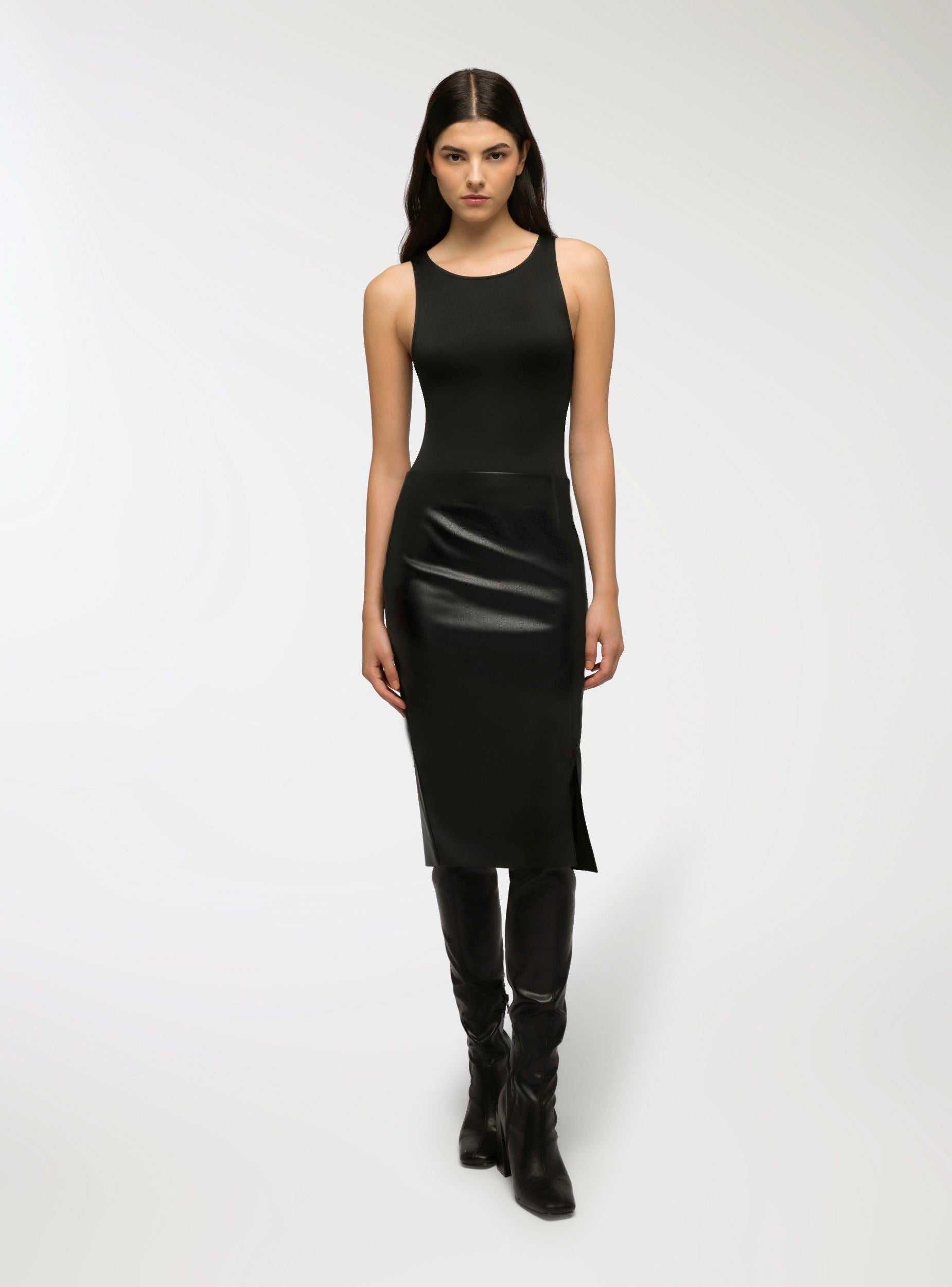 Gonna midi similpelle con spacco