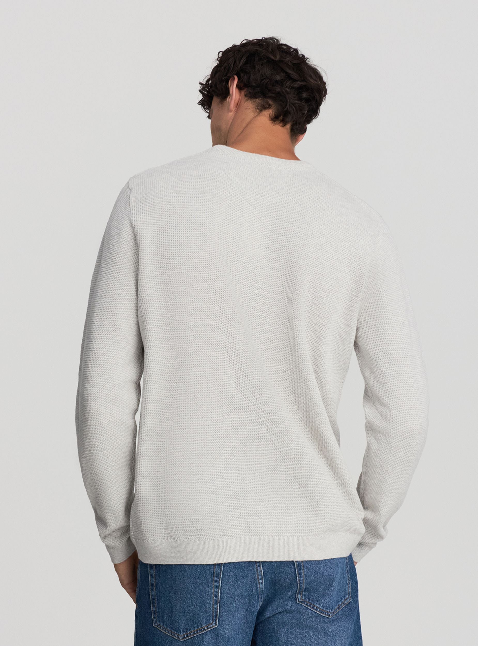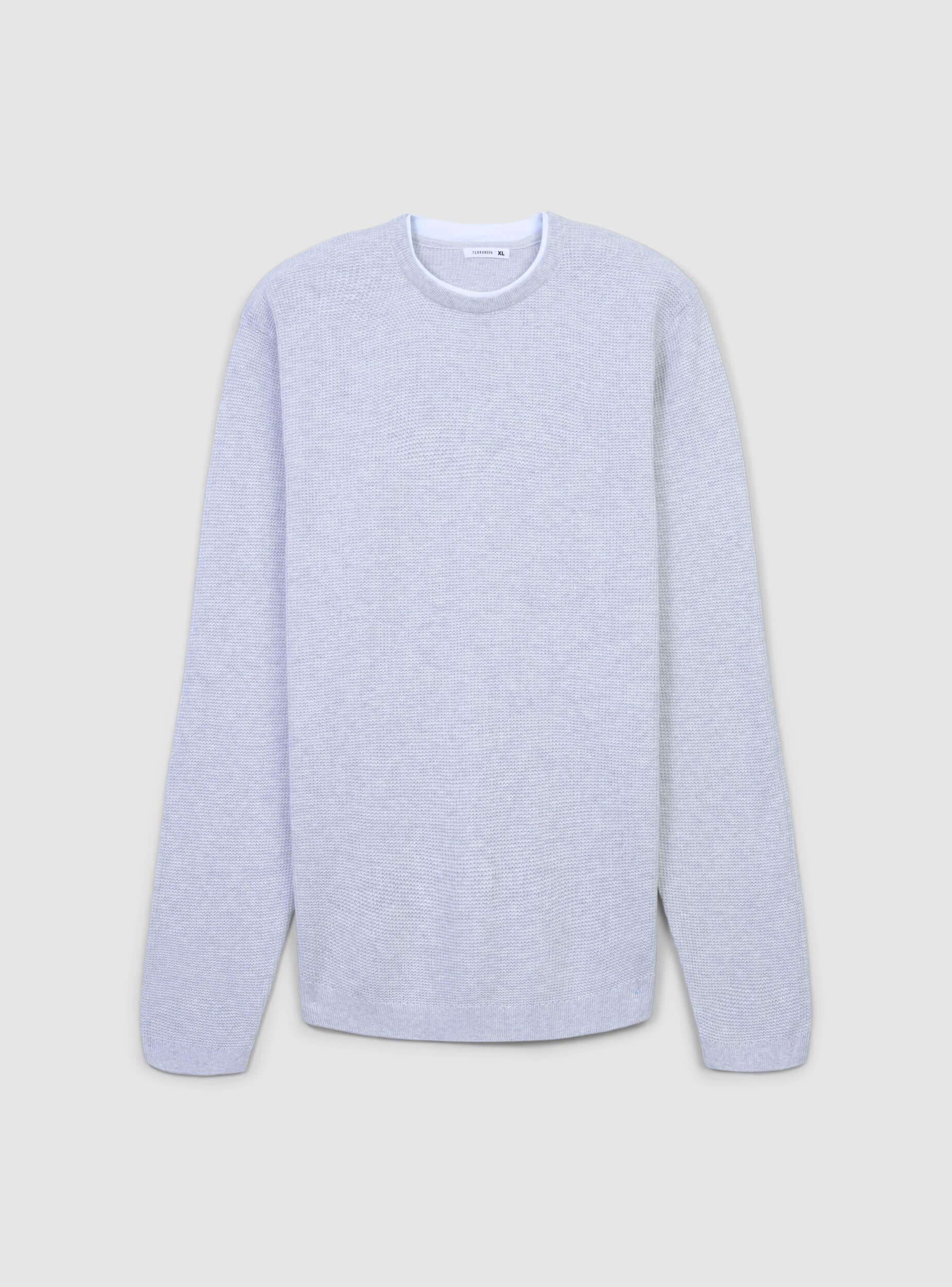 Maglia da uomo ideale per un look casual e versatile, perfetta per essere indossata sia in ufficio che nel tempo libero. Il design a tinta unita e la lavorazione punto mosso donano un tocco moderno, mentre il girocollo e le maniche lunghe assicurano comfort e praticità. Il girocollo a contrasto dona un effetto doppiato che aggiunge stile al look. Facile da abbinare a jeans o pantaloni chino, si adatta a diverse occasioni e stagioni.