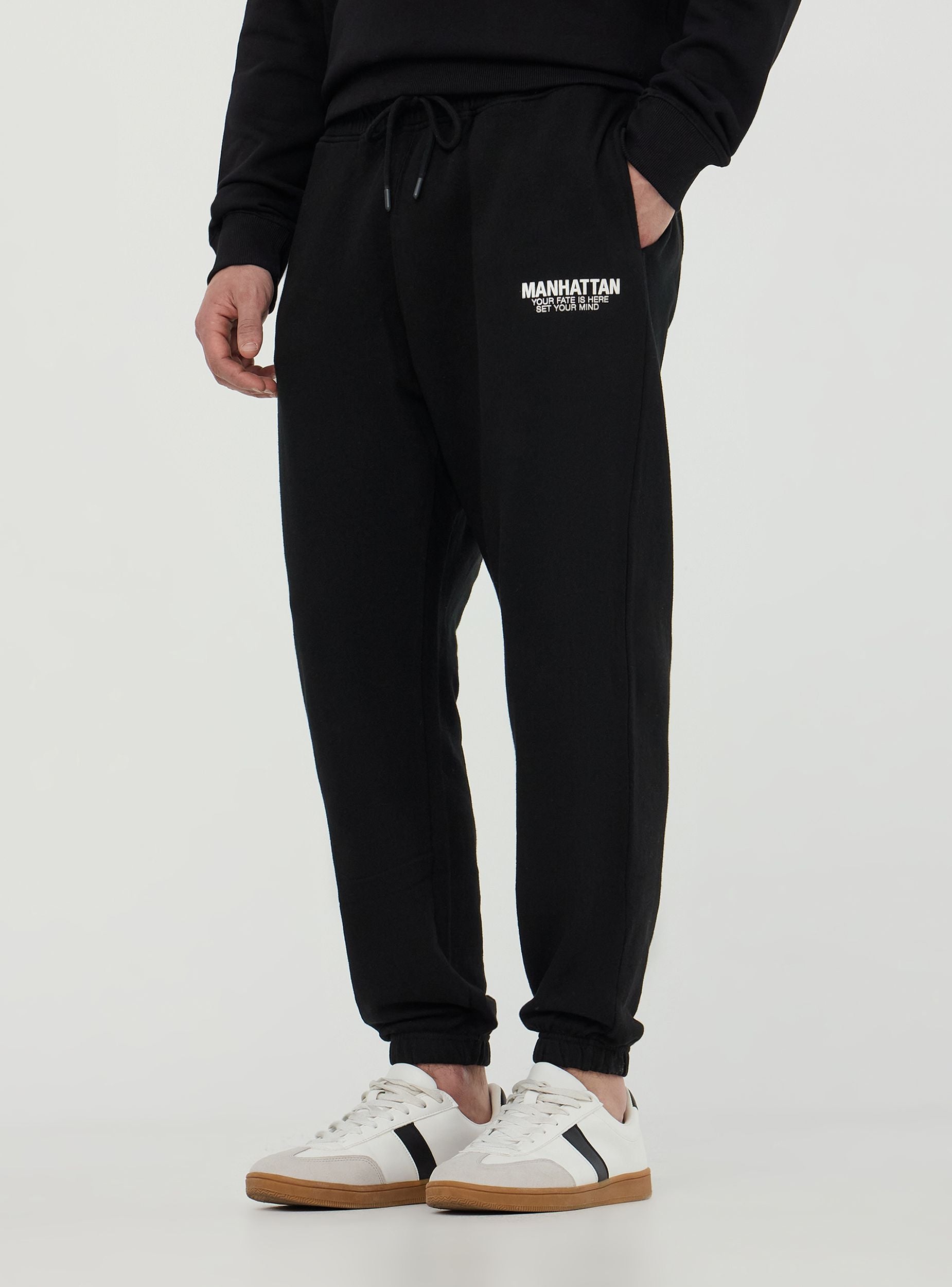 Pantaloni leggeri da uomo a tinta unita con scritta sul lato, perfetti per un look casual e dinamico. Dotati di elastico in vita con coulisse regolabile, tasca posteriore e polsini elasticizzati, garantiscono comfort e praticità. Ideali per il tempo libero, abbinati a t-shirt e sneakers, o per attività sportive grazie alla loro vestibilità jogger.Dettagli