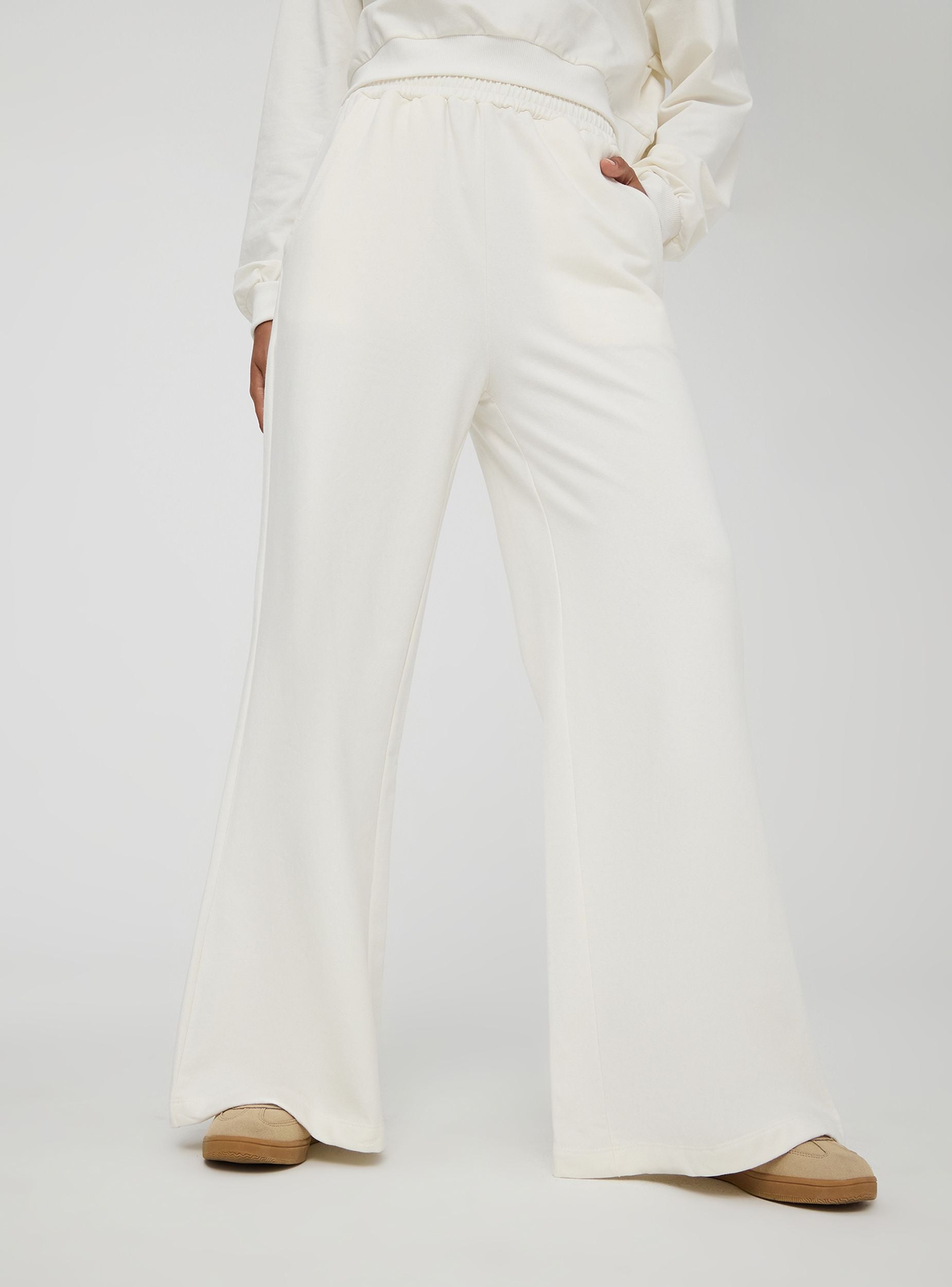 Pantaloni da donna, modello super wide leg. Perfetti per completare outfit casual con stile in totale comodità. Dotati di tasche laterali ed elastico in vita.Dettagli