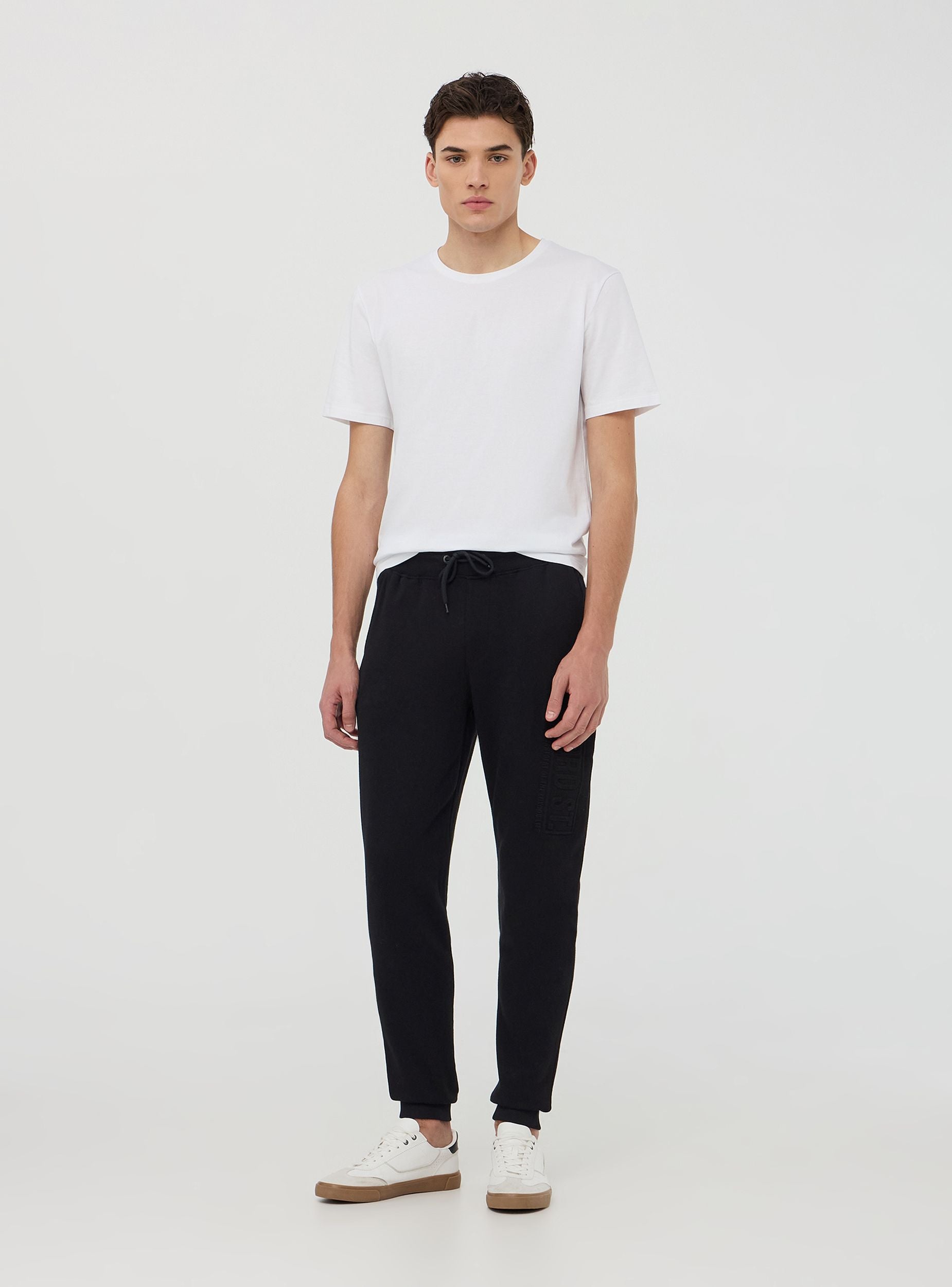 Pantaloni leggeri della tuta da uomo ideali per un look sportivo e casual. Il design lungo con polsini alla caviglia assicura una vestibilità comoda, mentre la coulisse in vita permette una regolazione personalizzata. Le tasche pratiche aggiungono funzionalità, perfette per portare con sé piccoli oggetti. La scritta 3D sul lato dona un tocco distintivo. La tinta unita rende questi pantaloni versatili e adatti sia per il relax che per il tempo libero. Abbinali a una felpa o a una t-shirt per un outfit dinamico e confortevole.