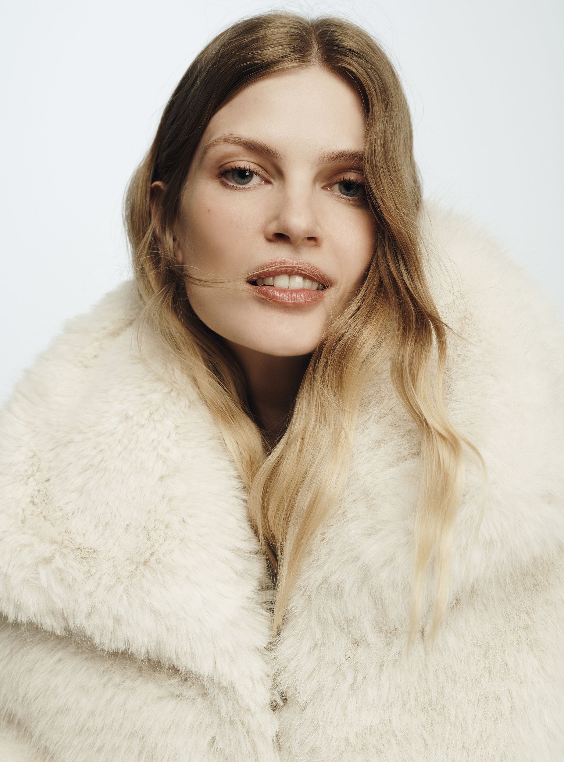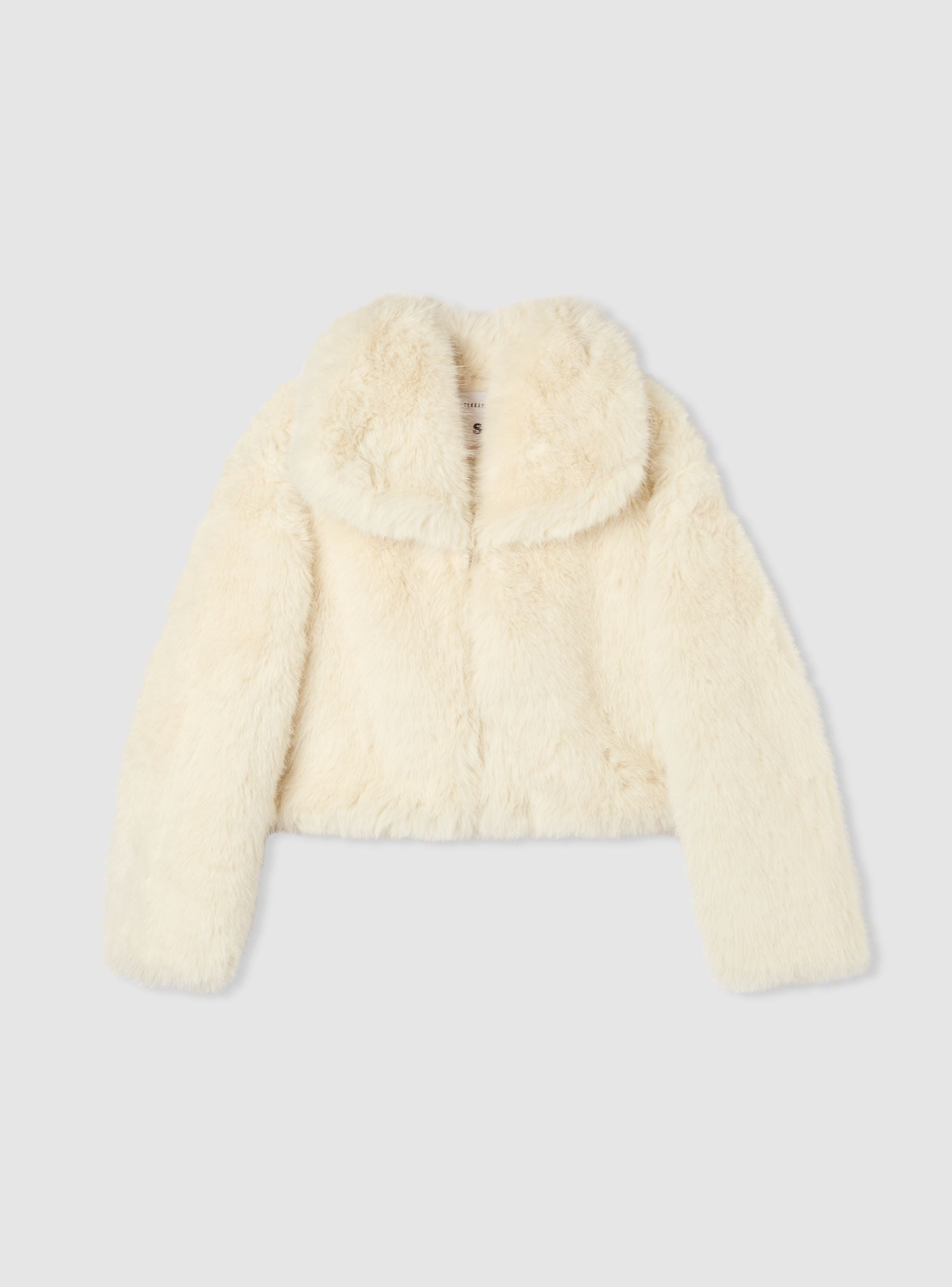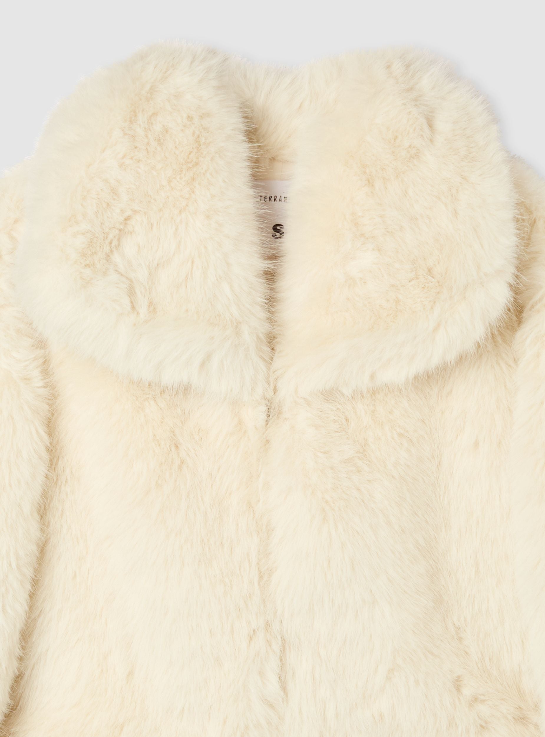 Giacca da donna in similpelliccia con collo ampio e maniche lunghe, ideale per aggiungere un tocco sofisticato a un outfit casual o per occasioni speciali. La giacca presenta una vestibilità regolare e un design elegante, con chiusura frontale per praticità. Caratterizzata da una vestibilità regolare e una chiusura frontale pratica, si distingue per la sua texture soffice e avvolgente che dona comfort e stile. Perfetto per abbinamenti con pantaloni o gonne.