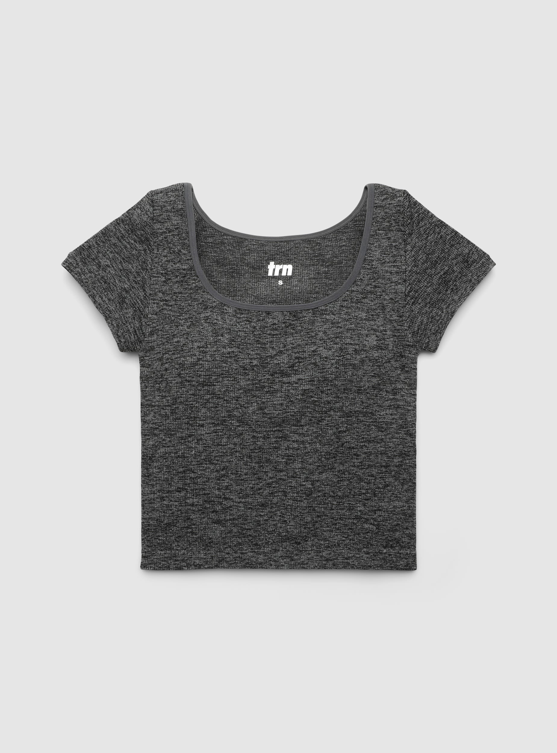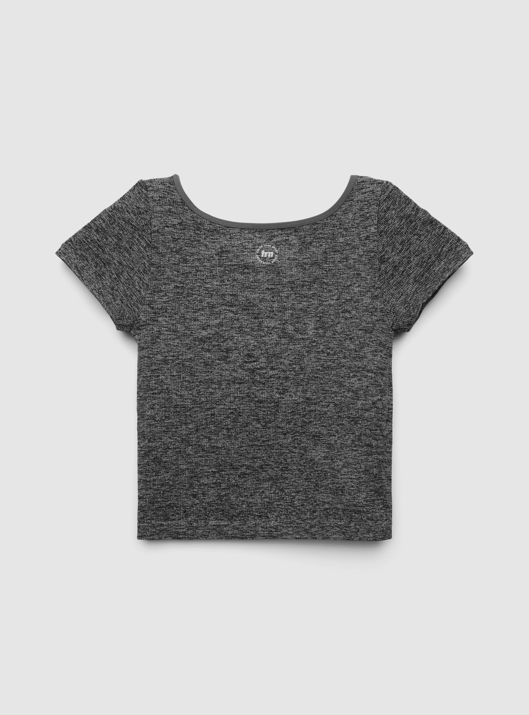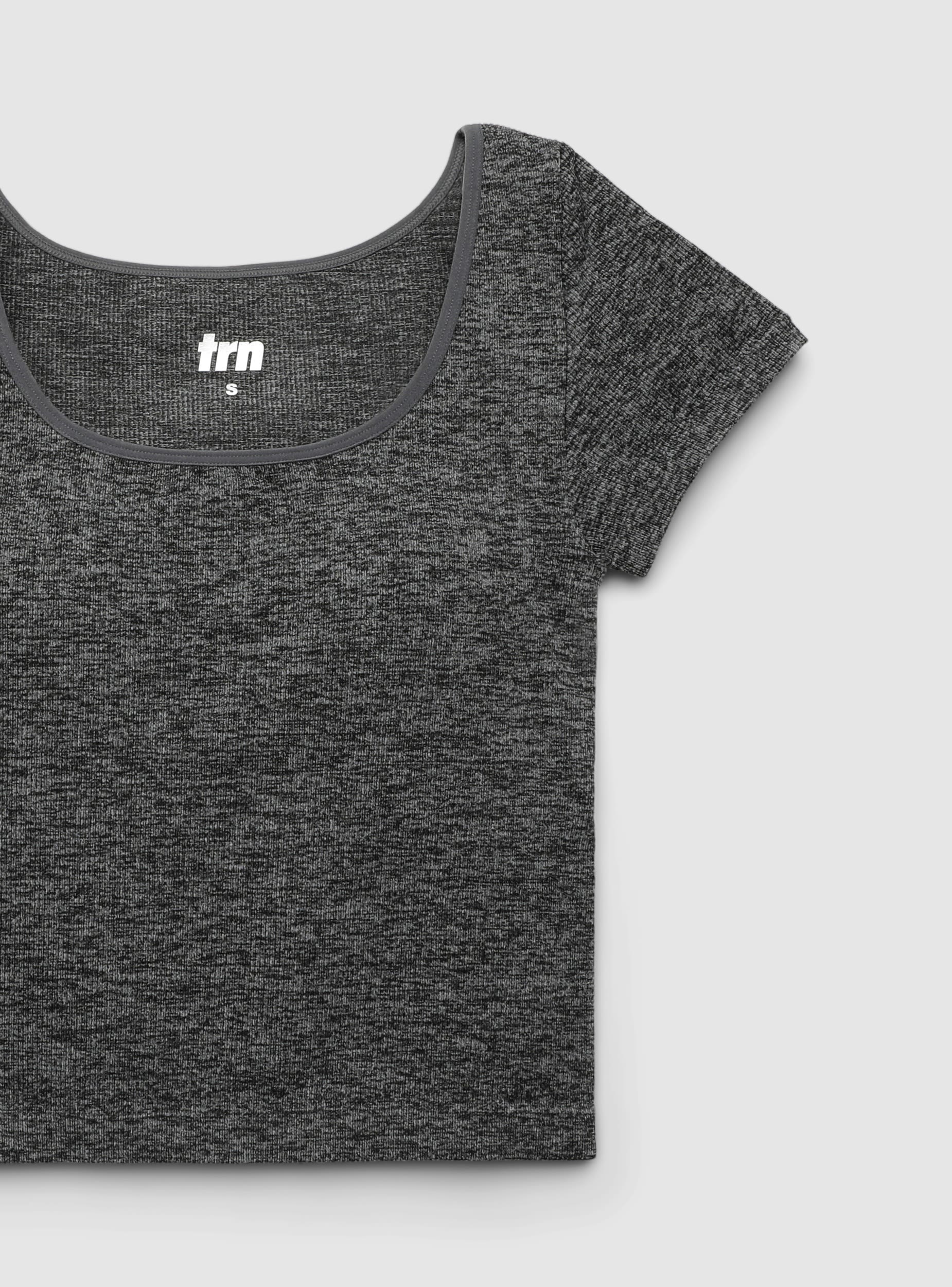 Maglietta sportiva da donna crop a tinta unita. Presenta scollo ampio arrotondato e maniche corte, perfetta da abbinare a leggings a vita alta o pantaloncini sportivi. Vestibilità aderente che valorizza la silhouette. Dettaglio piccolo logo sul retro. Linea Active.Dettagli