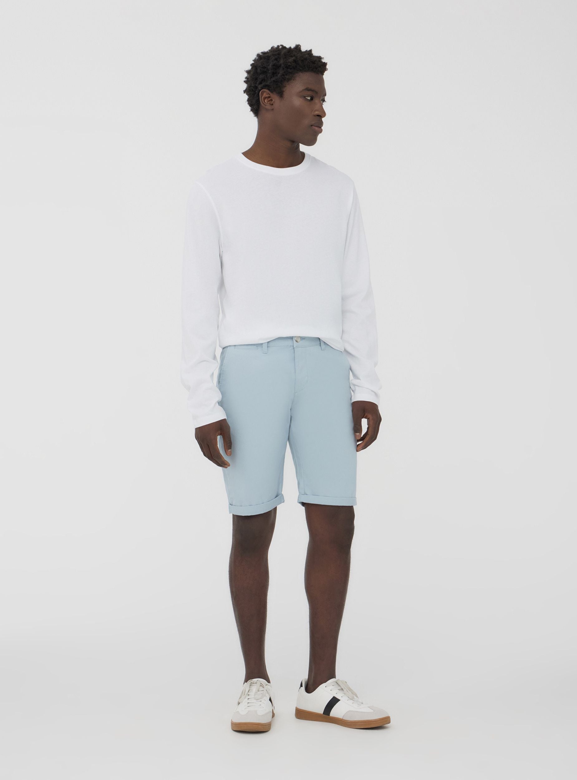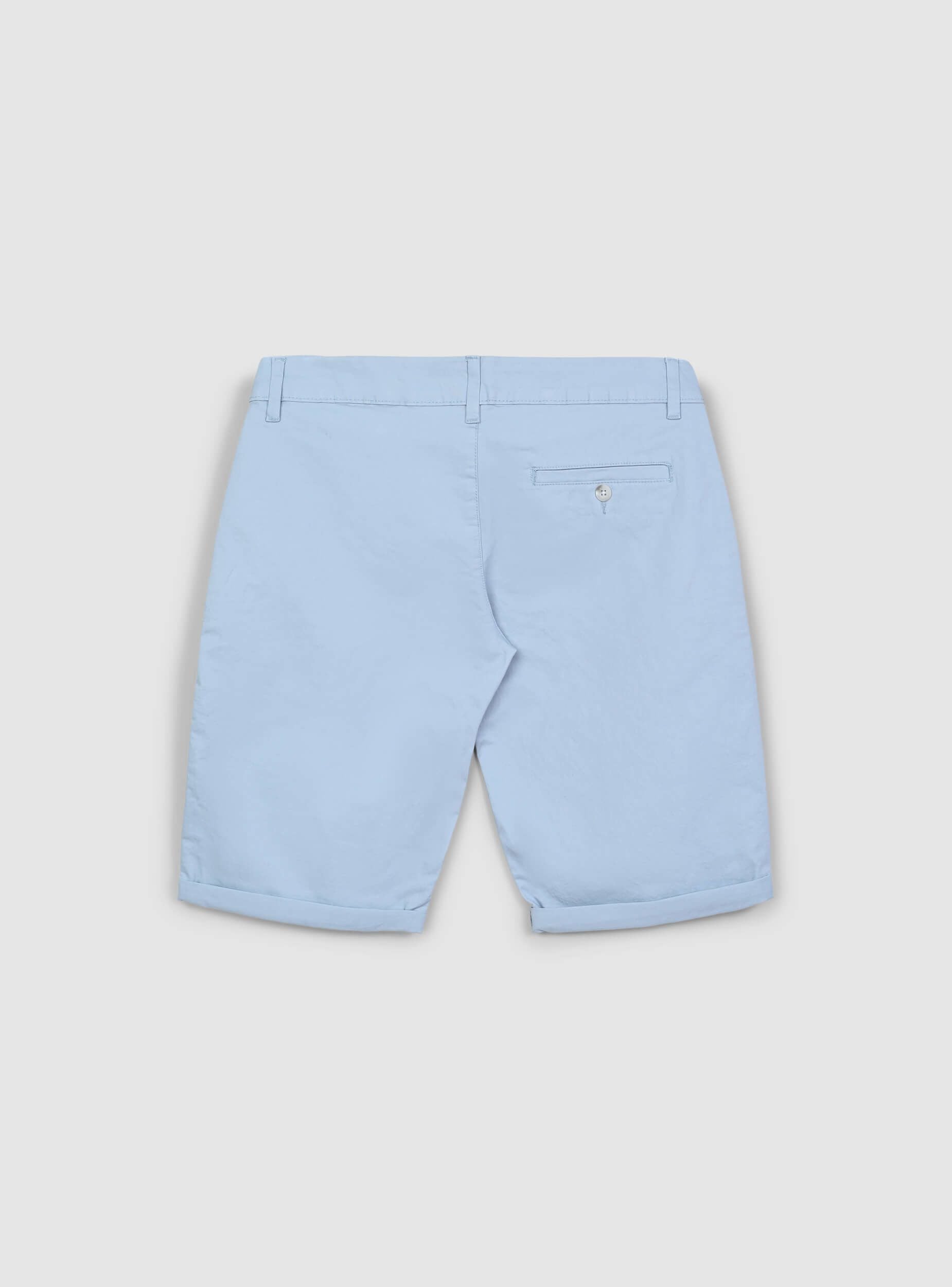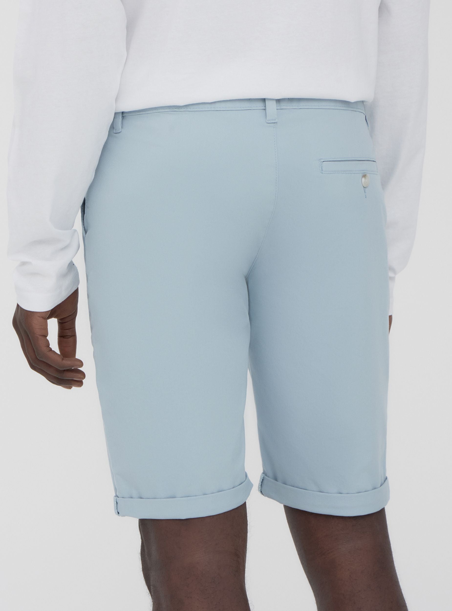 Pantaloncini da uomo a tinta unita, dal design chino, perfetti per un look casual ma curato. Dotati di pratiche tasche laterali, offrono spazio sufficiente per riporre piccoli oggetti. La chiusura frontale è con bottone e zip. Ideali per essere indossati durante le giornate calde, questi pantaloncini uniscono praticità e stile, adattandosi a diverse occasioni informali. Il design minimalista li rende versatili per diversi abbinamenti.