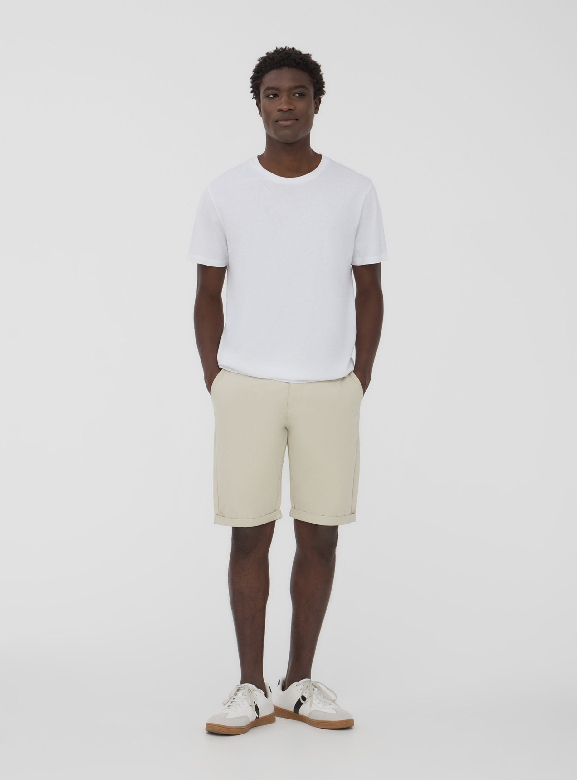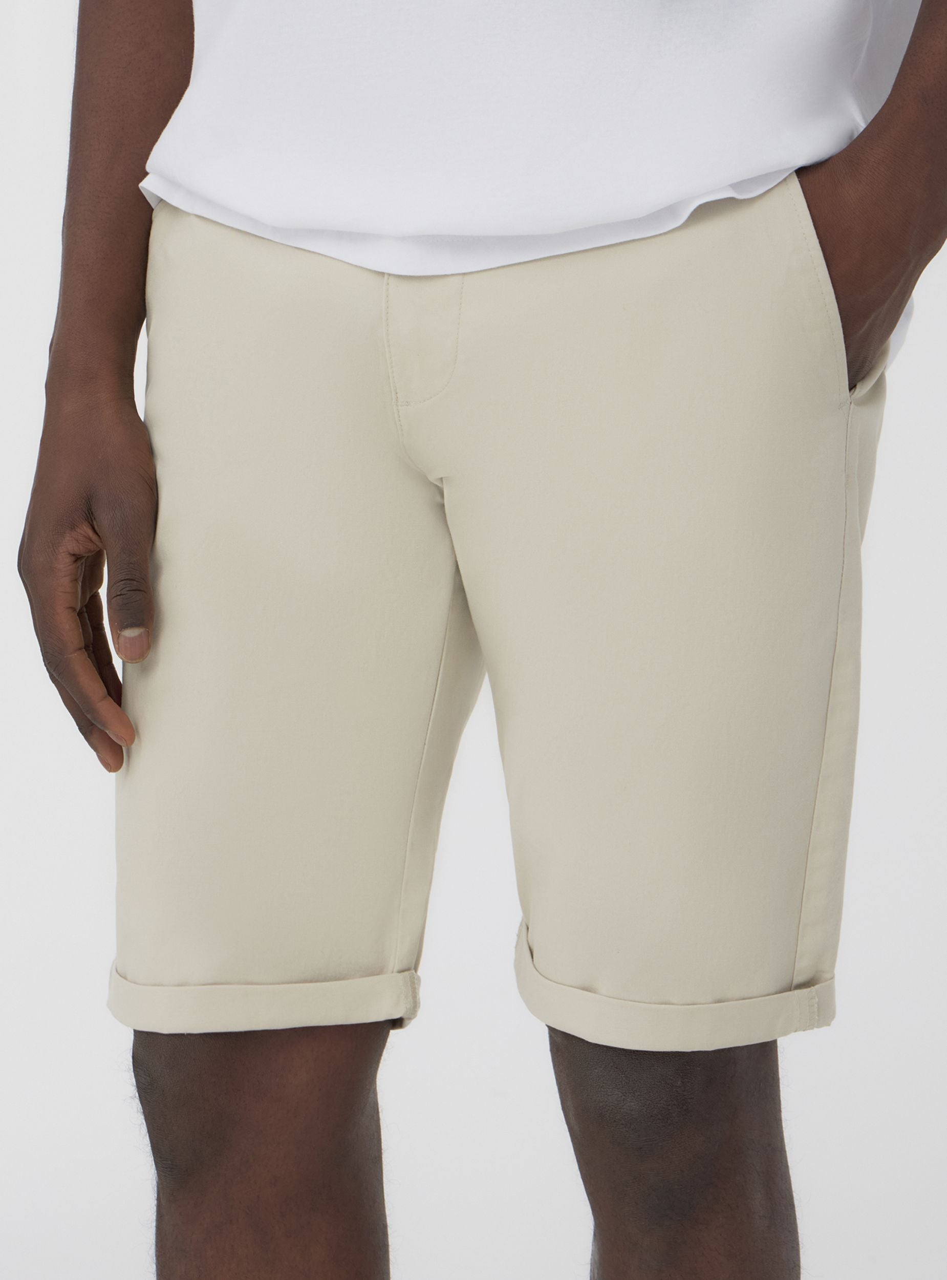Pantaloncini da uomo a tinta unita, dal design chino, perfetti per un look casual ma curato. Dotati di pratiche tasche laterali, offrono spazio sufficiente per riporre piccoli oggetti. La chiusura frontale è con bottone e zip. Ideali per essere indossati durante le giornate calde, questi pantaloncini uniscono praticità e stile, adattandosi a diverse occasioni informali. Il design minimalista li rende versatili per diversi abbinamenti.