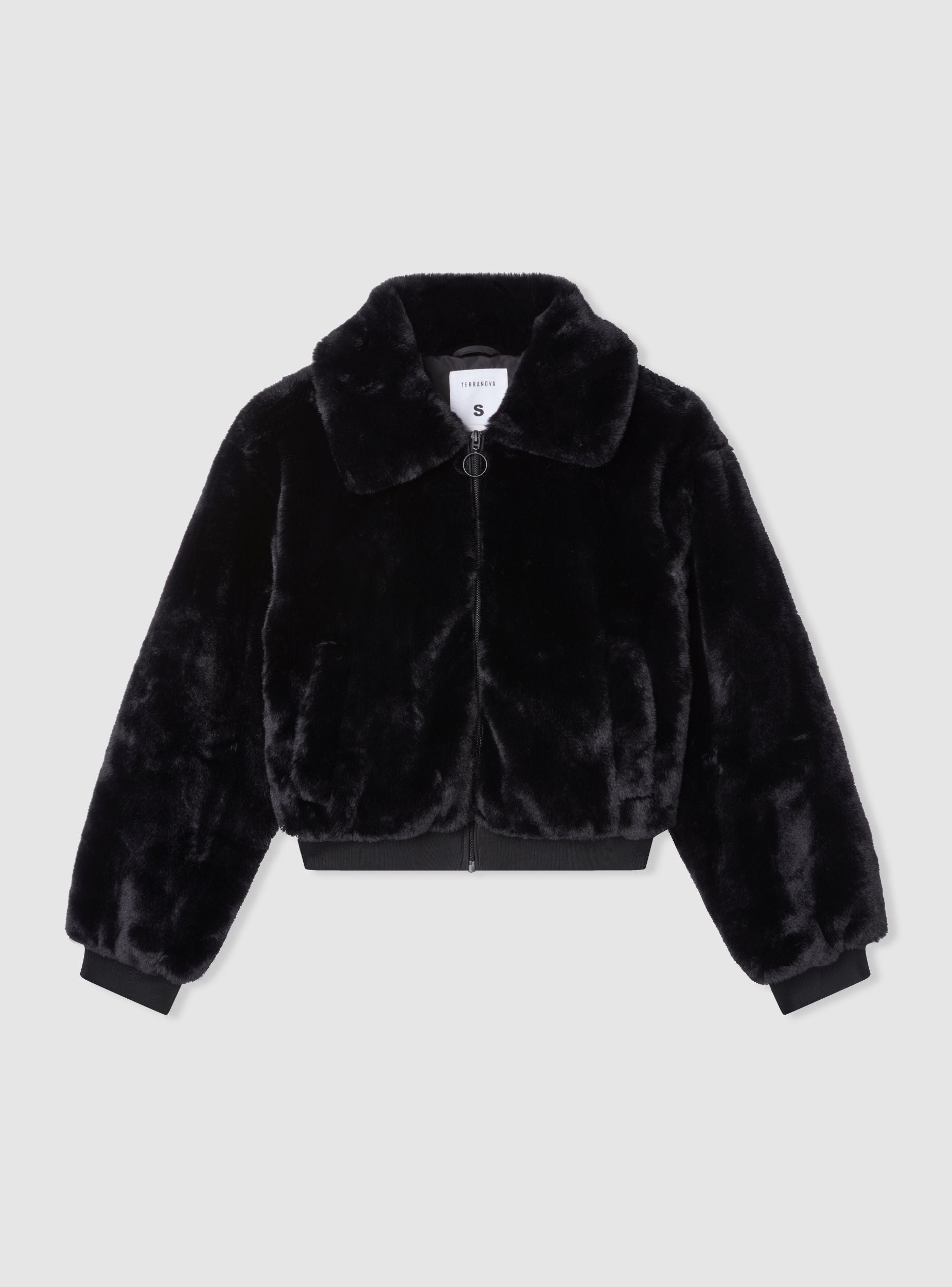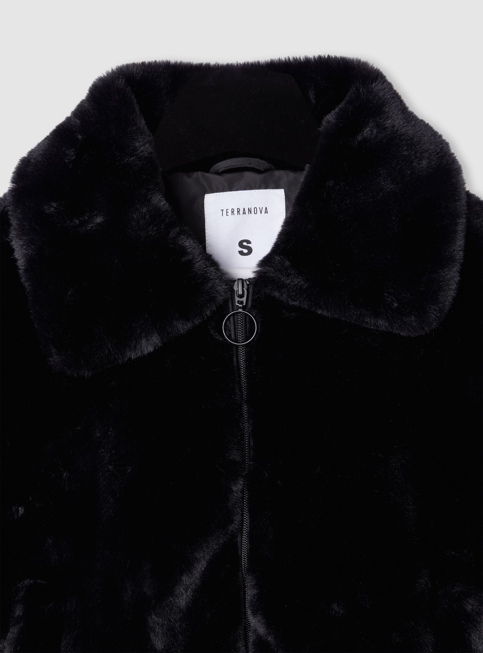 Giacca da donna, modello bomber in pelliccia sintetica, ideale per un look casual e moderno. Perfetto per le giornate fresche, si abbina facilmente a jeans o pantaloni sportivi per un outfit comodo e alla moda. La chiusura con zip e il colletto aggiungono praticità e stile. Un capo versatile per completare il tuo guardaroba con un tocco di eleganza.