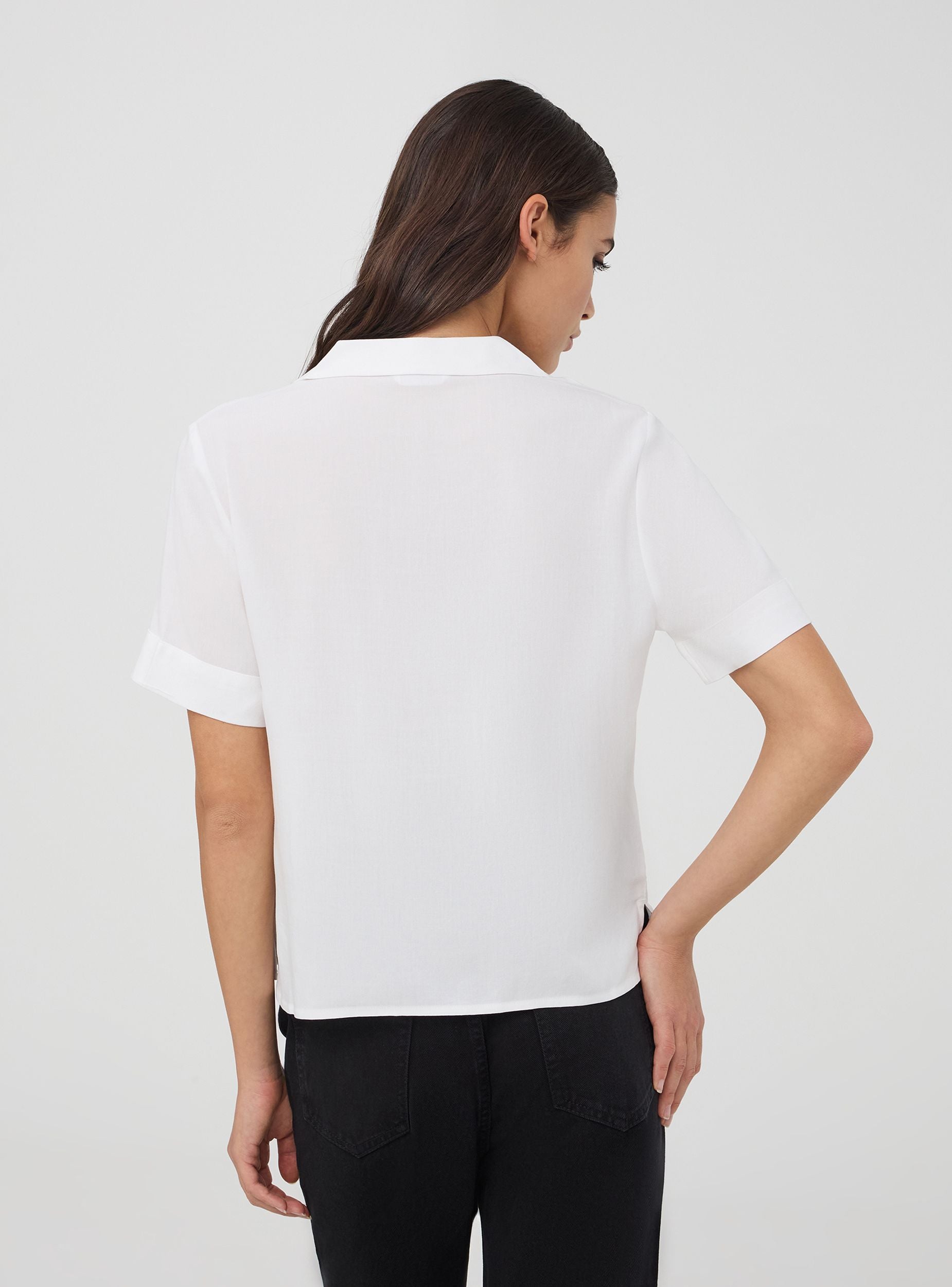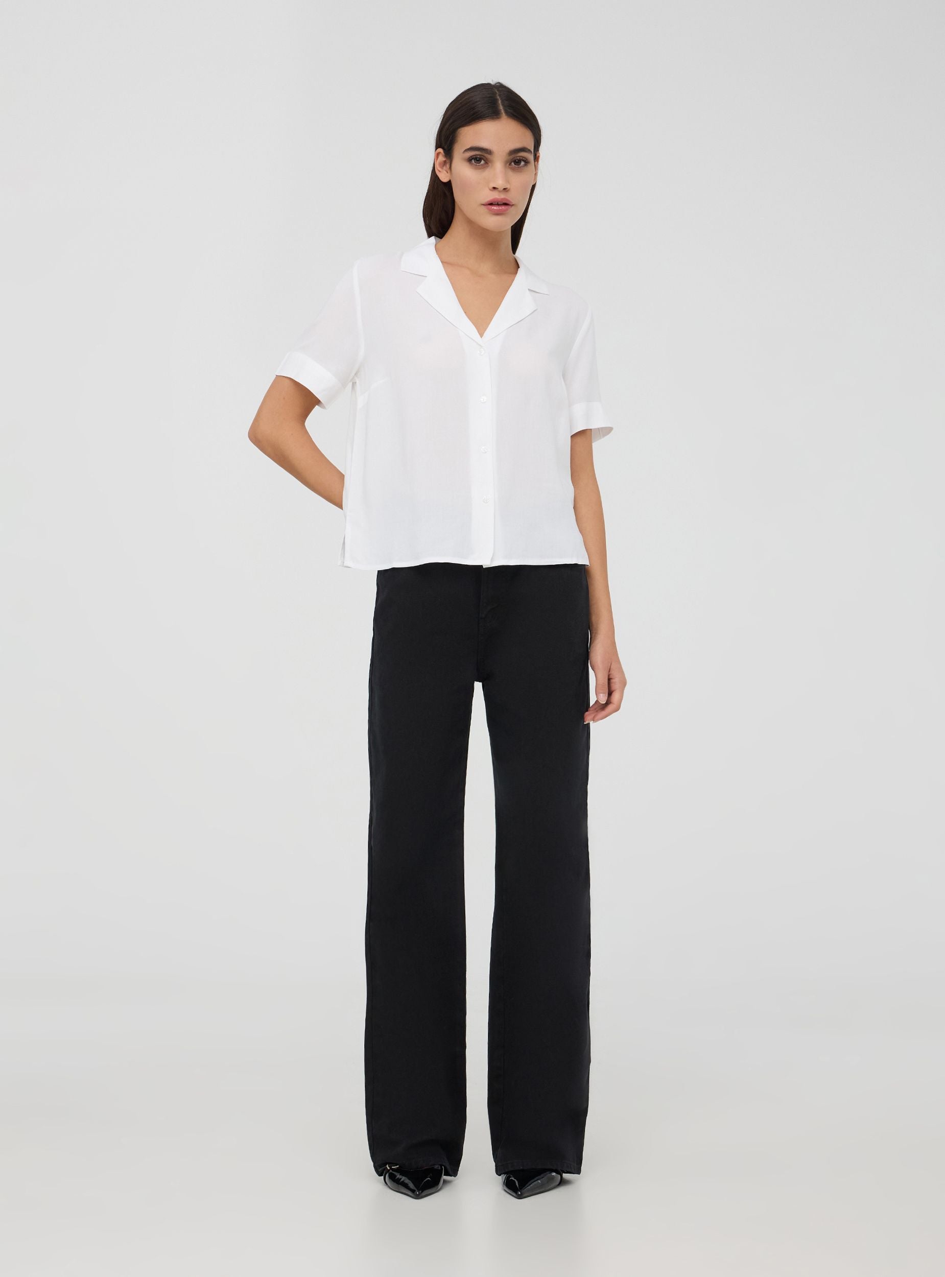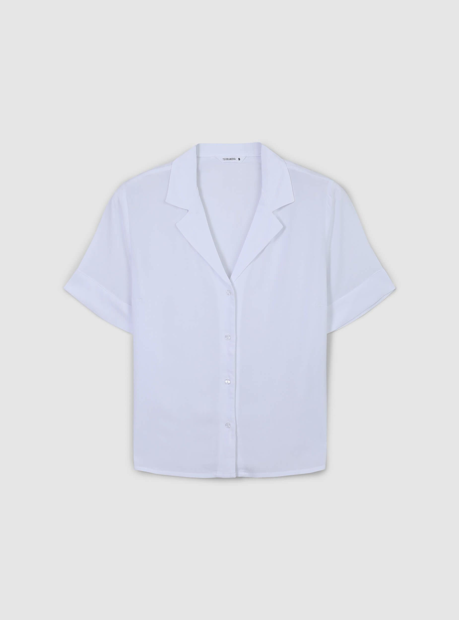 Camicia da donna dal taglio ampio e comodo, perfetta per un look casual e rilassato. Il design a tinta unita ne esalta la semplicità e la versatilità, mentre la chiusura con bottoni sul davanti aggiunge un tocco raffinato. Le maniche corte la rendono ideale per le giornate più calde, mantenendo un'ottima traspirabilità grazie al tessuto in viscosa, che garantisce leggerezza e comfort. Un capo perfetto da abbinare sia a pantaloni che a gonne, per creare outfit freschi e moderni, senza rinunciare alla praticità.