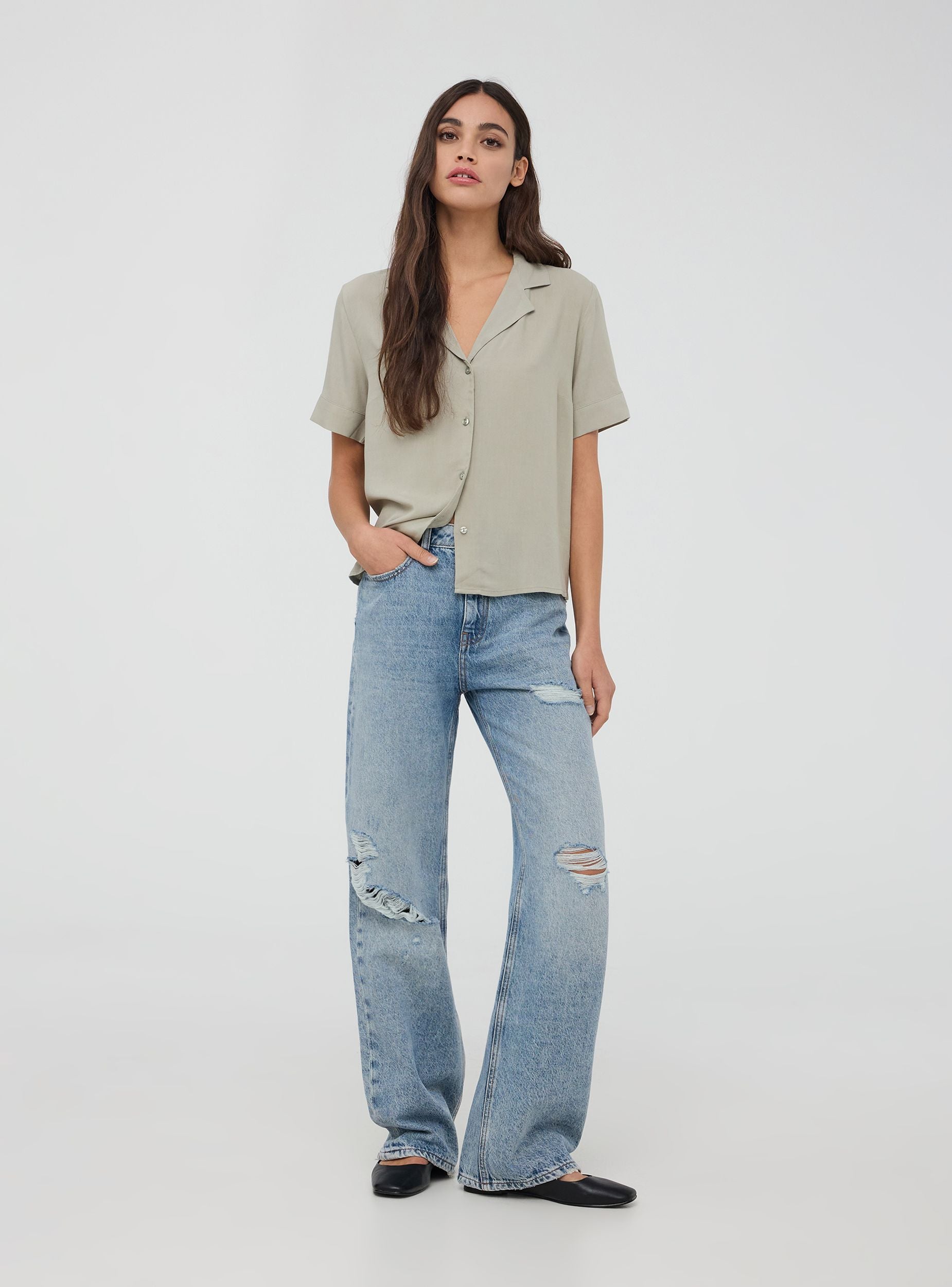 Camicia da donna dal taglio ampio e comodo, perfetta per un look casual e rilassato. Il design a tinta unita ne esalta la semplicità e la versatilità, mentre la chiusura con bottoni sul davanti aggiunge un tocco raffinato. Le maniche corte la rendono ideale per le giornate più calde, mantenendo un'ottima traspirabilità grazie al tessuto in viscosa, che garantisce leggerezza e comfort. Un capo perfetto da abbinare sia a pantaloni che a gonne, per creare outfit freschi e moderni, senza rinunciare alla praticità.