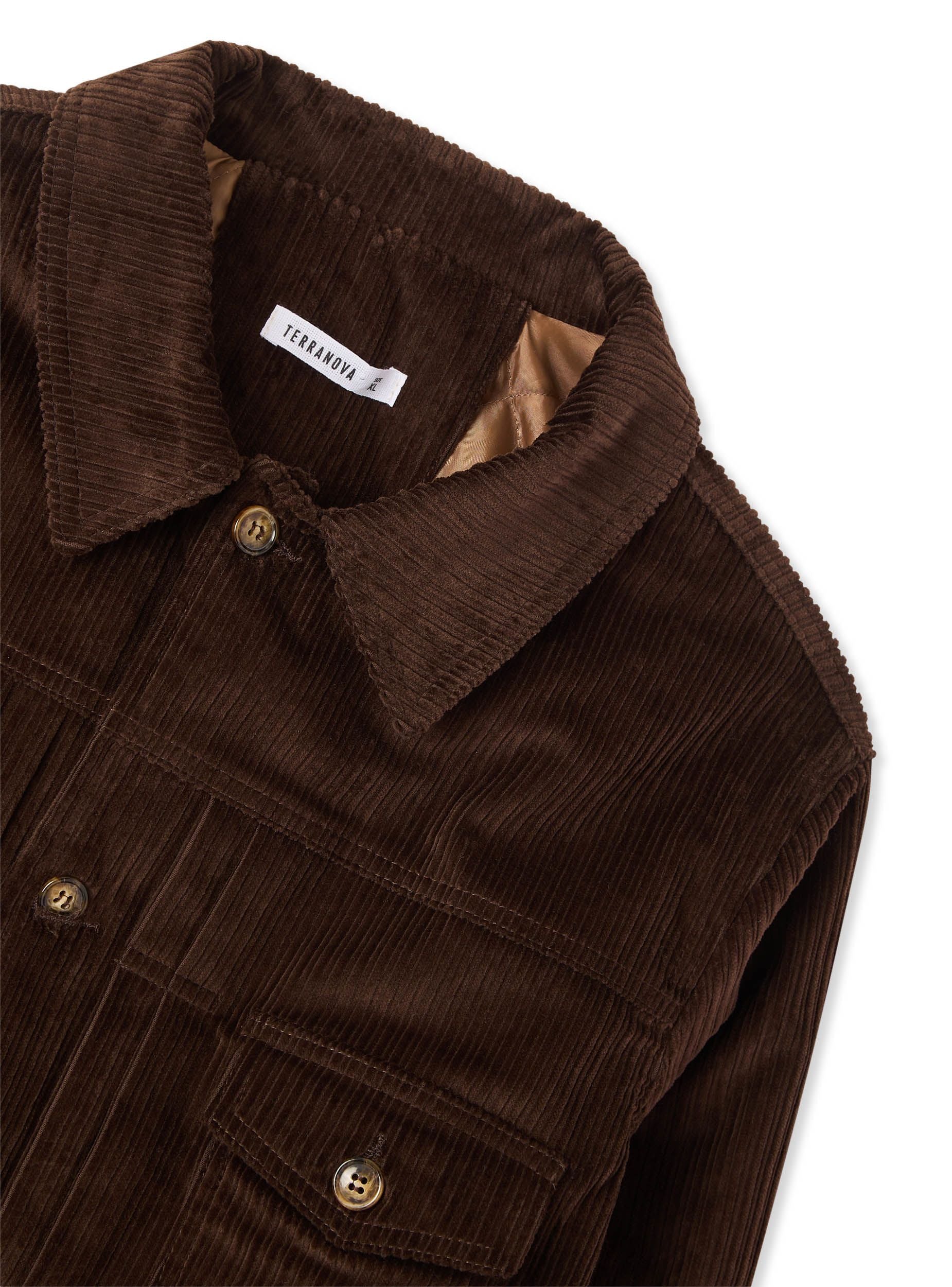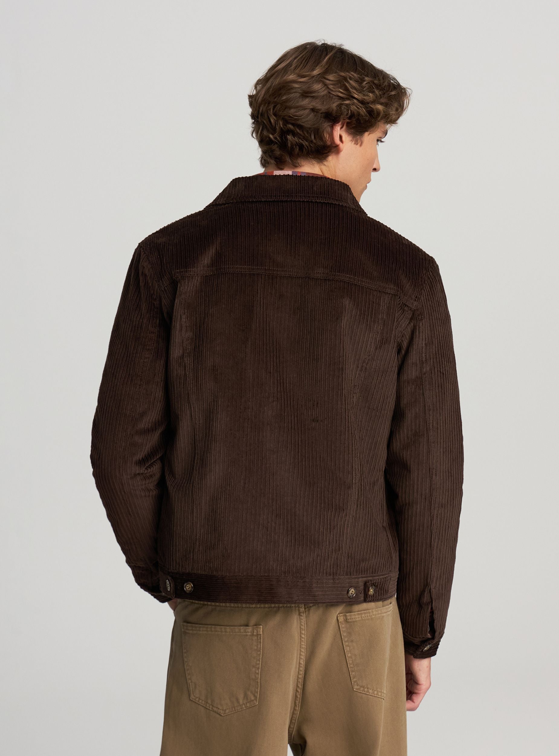 Shacket da uomo, ideale per look casual e urban. Realizzato a tinta unita con motivo a coste, presenta colletto classico, maniche lunghe e chiusura frontale con bottoni. Taschino applicato sul petto con patta e bottone, tasche laterali a filetto offrono praticità. Vestibilità regular e lunghezza normale, perfetta su jeans o chino per l’ufficio informale e il tempo libero.