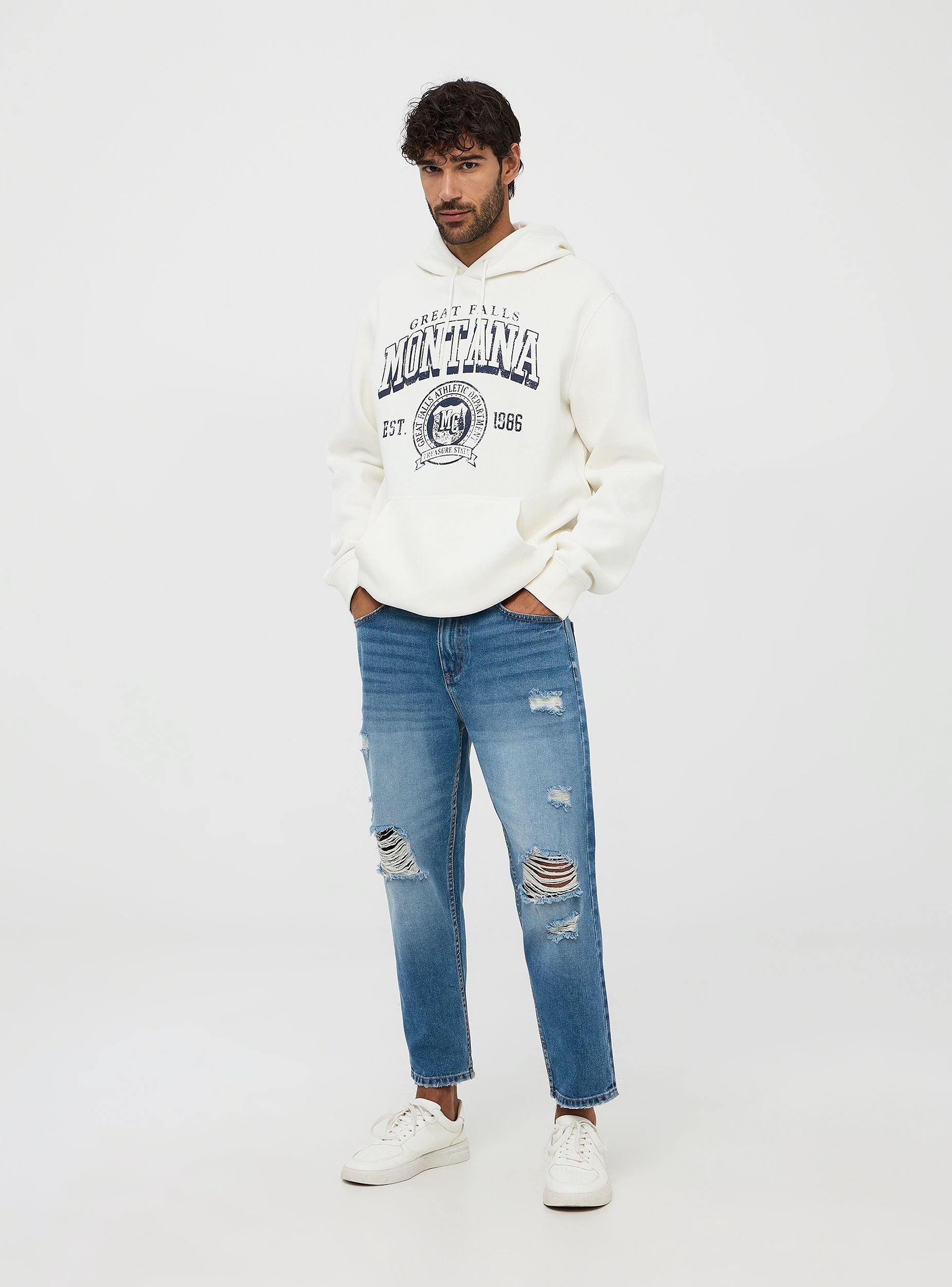 Felpa da uomo, modello chiuso, con cappuccio con coulisse regolabile e stampa frontale in stile sport. Realizzata in tessuto pesante morbido e caldo, la felpa presenta polsini e orlo a costine per una vestibilità confortevole, oltre a una tasca a marsupio per maggiore praticità. Questa felpa è ideale per le giornate casual, le attività all'aperto o per rilassarsi a casa. Perfetta per un look sportivo e informale, si abbina facilmente a jeans o pantaloni sportivi, garantendo comfort e stile. Vestibilità regular.