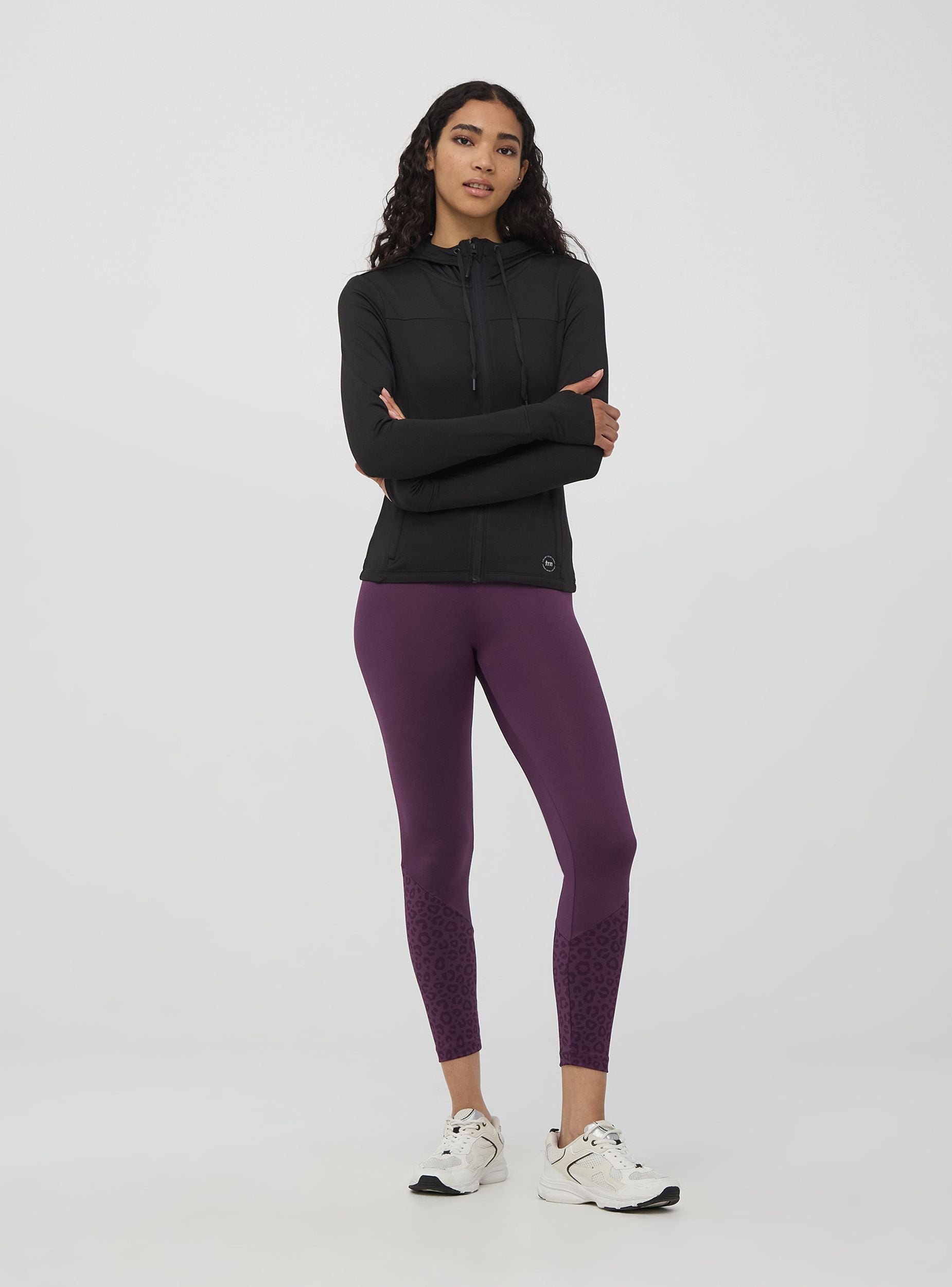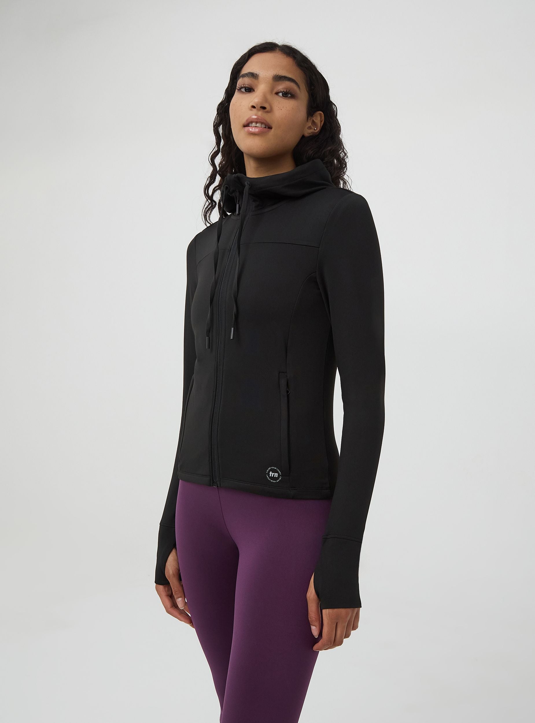 Felpa da donna con collo alto e cappuccio con coulisse. Modello con chiusura a zip, tasche laterali con zip, maniche lunghe con buco per il pollice che rendono il capo pratico e funzionale. Realizzata in tessuto tecnico traspirante, elastico e resistente, ideale per non rinunciare allo stile neanche durante l'attività fisica. Linea active. Vestibilità regular.
