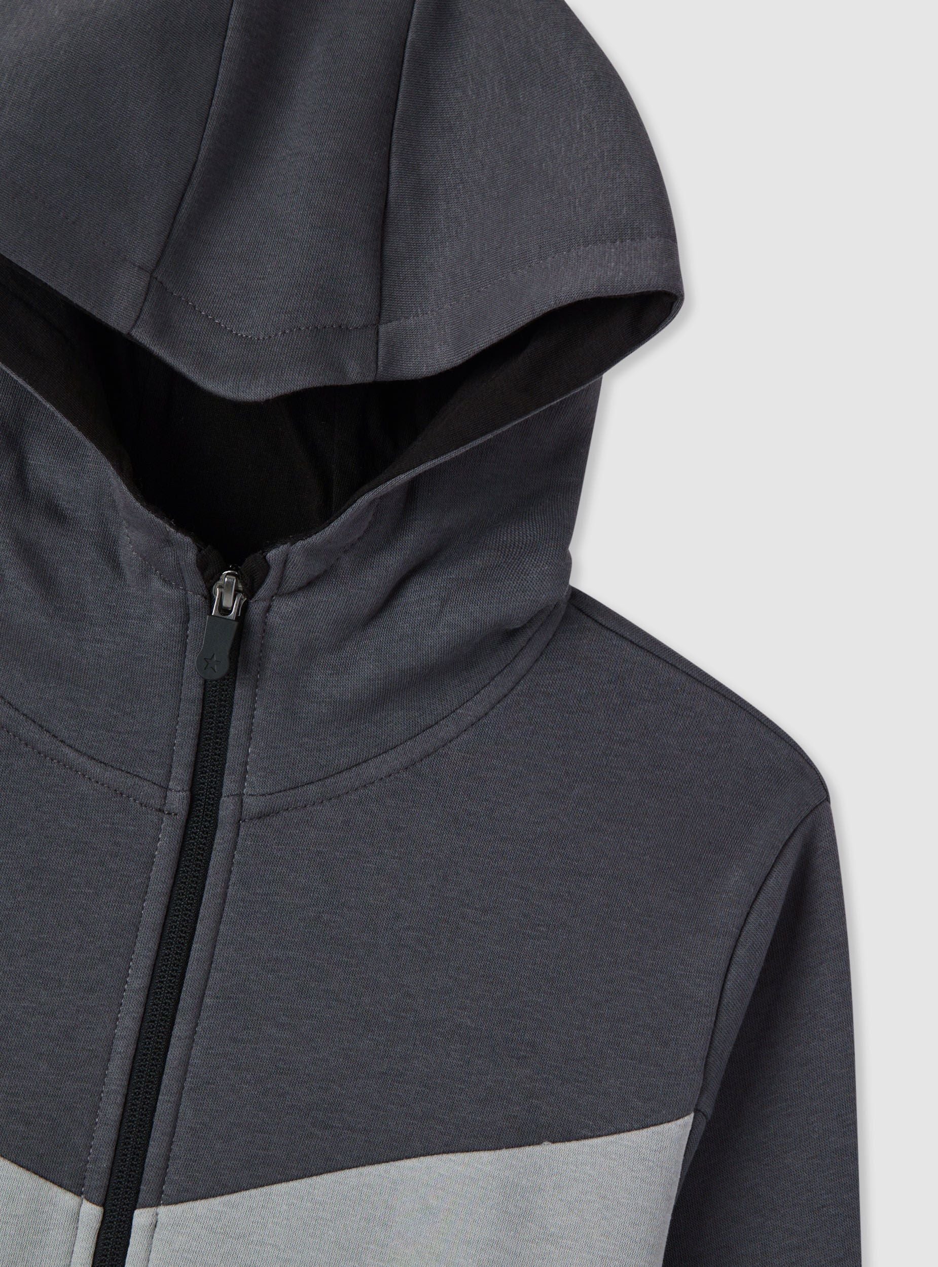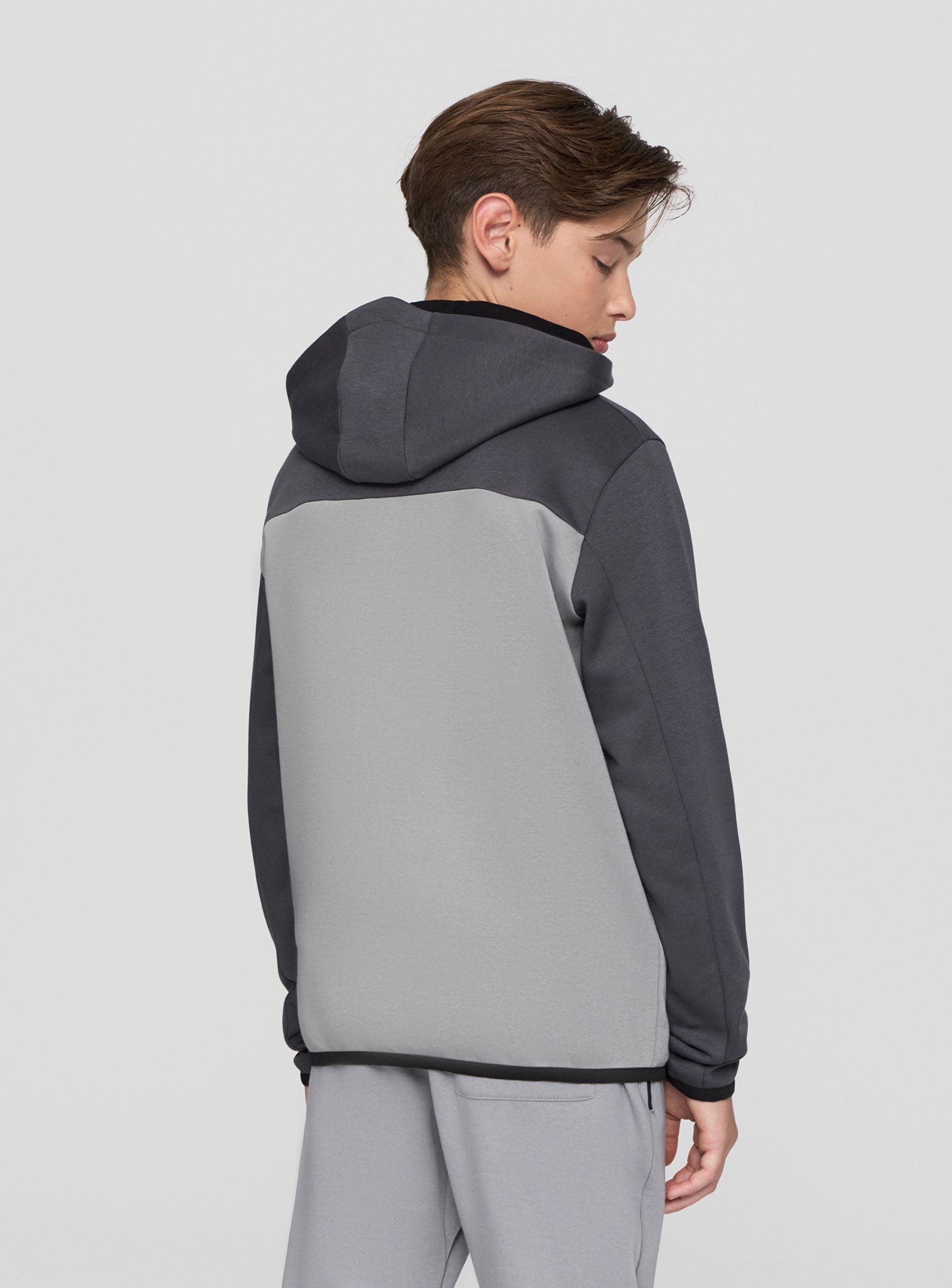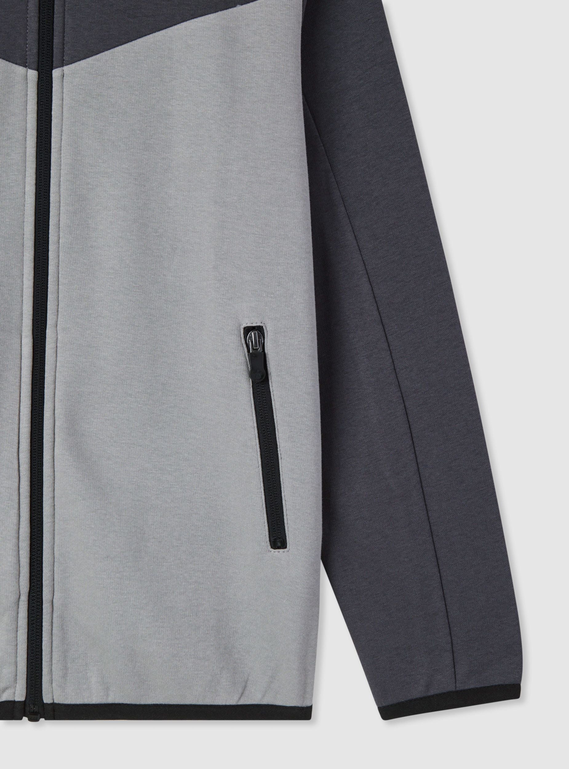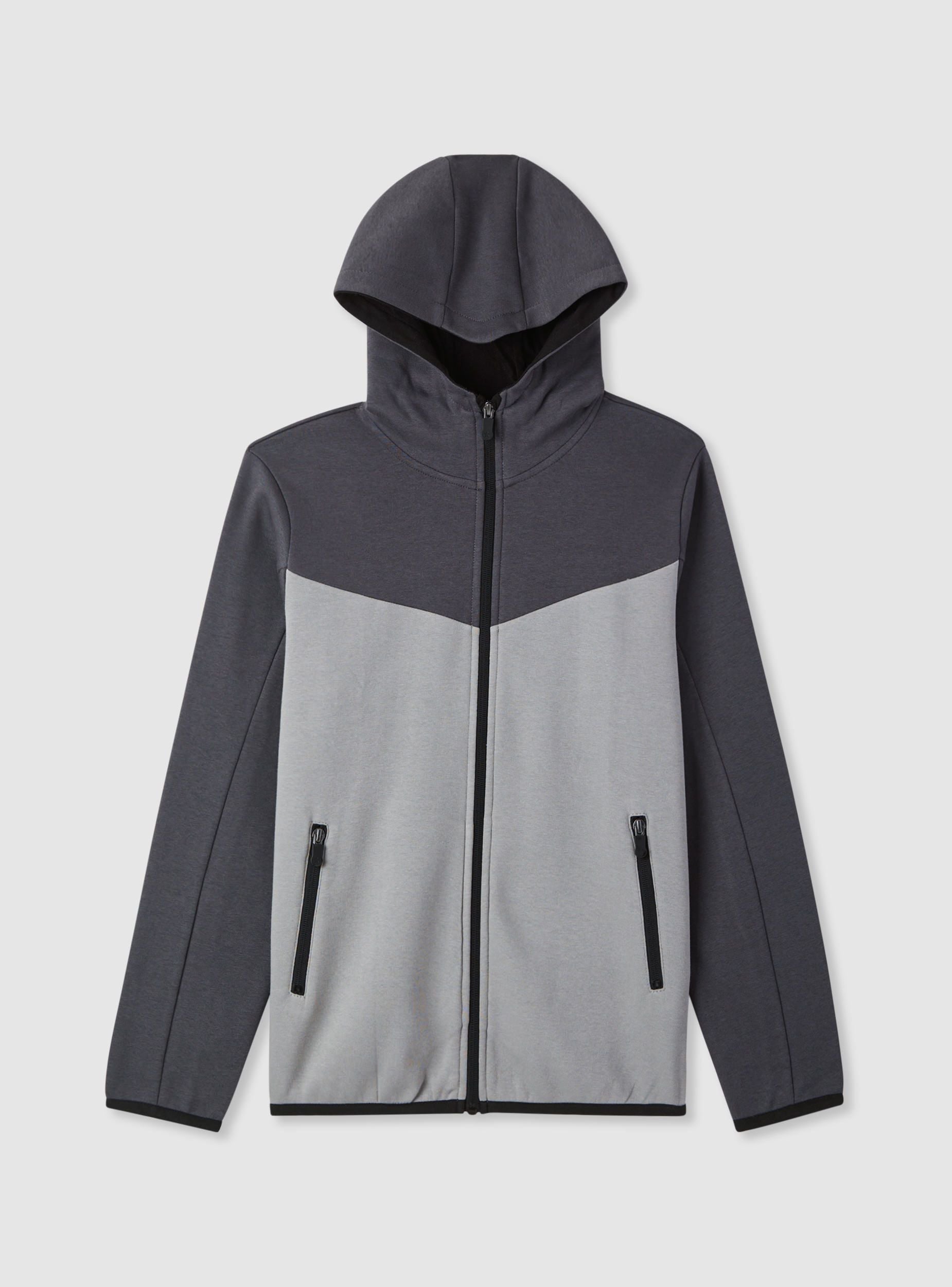 Felpa tecnica da bambino con cappuccio e zip, ideale per un look sportivo e casual. Dotata di tasche con chiusura a zip, offre praticità e sicurezza per riporre piccoli oggetti. Il design a blocchi di colore aggiunge un tocco moderno e dinamico. Perfetta per attività all'aperto o per il tempo libero, si abbina facilmente a pantaloni sportivi o jeans per un outfit comodo e versatile.