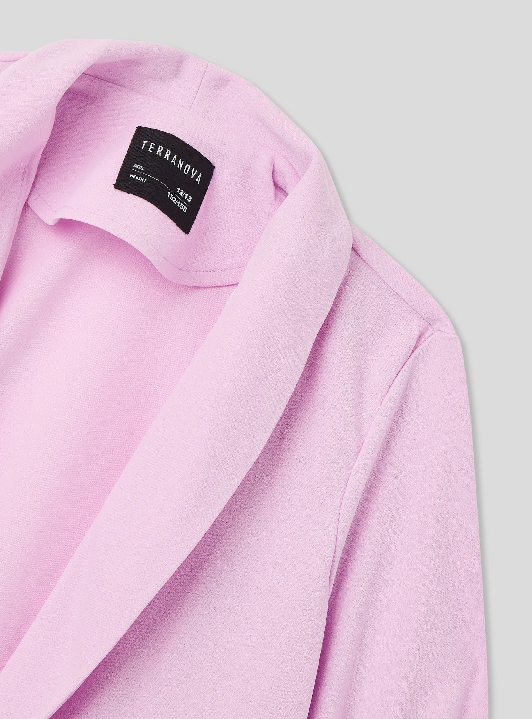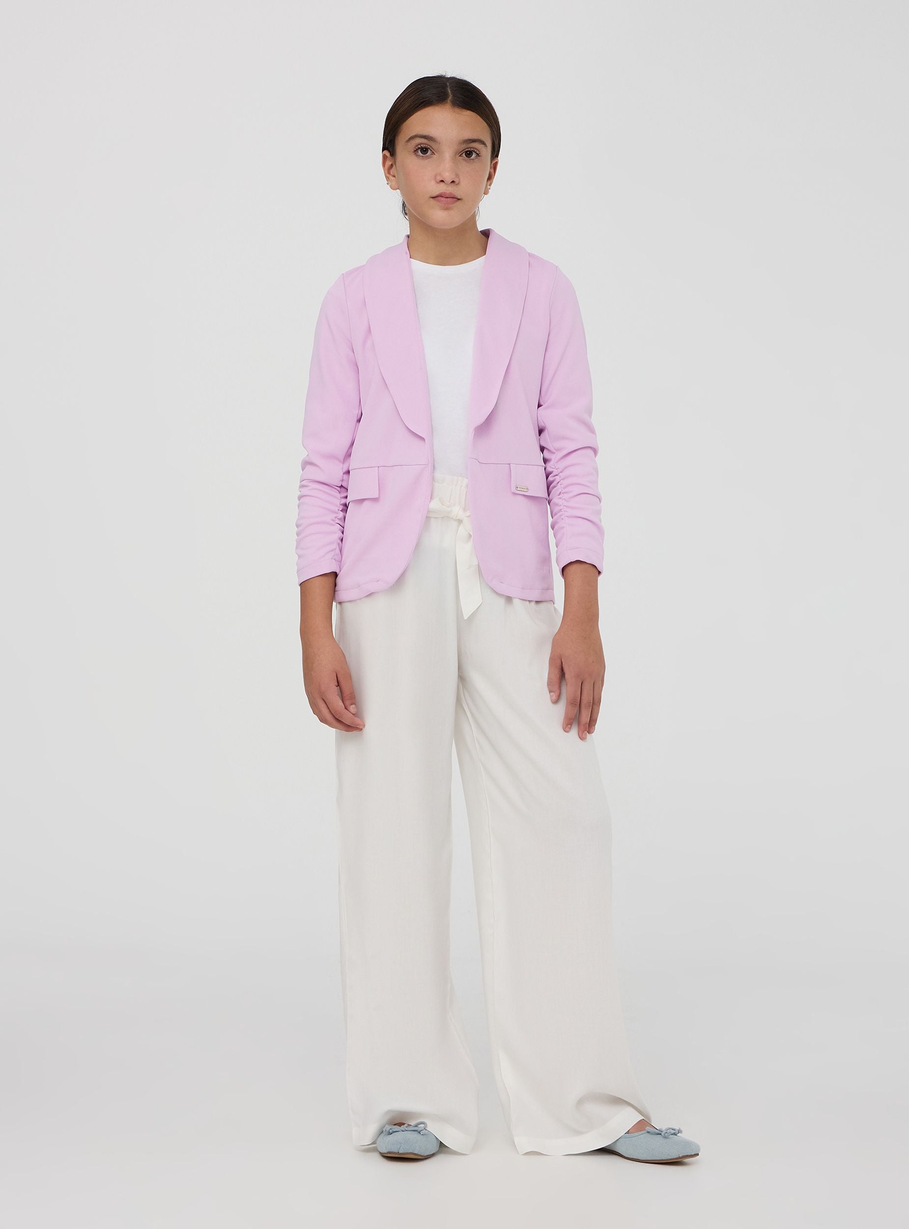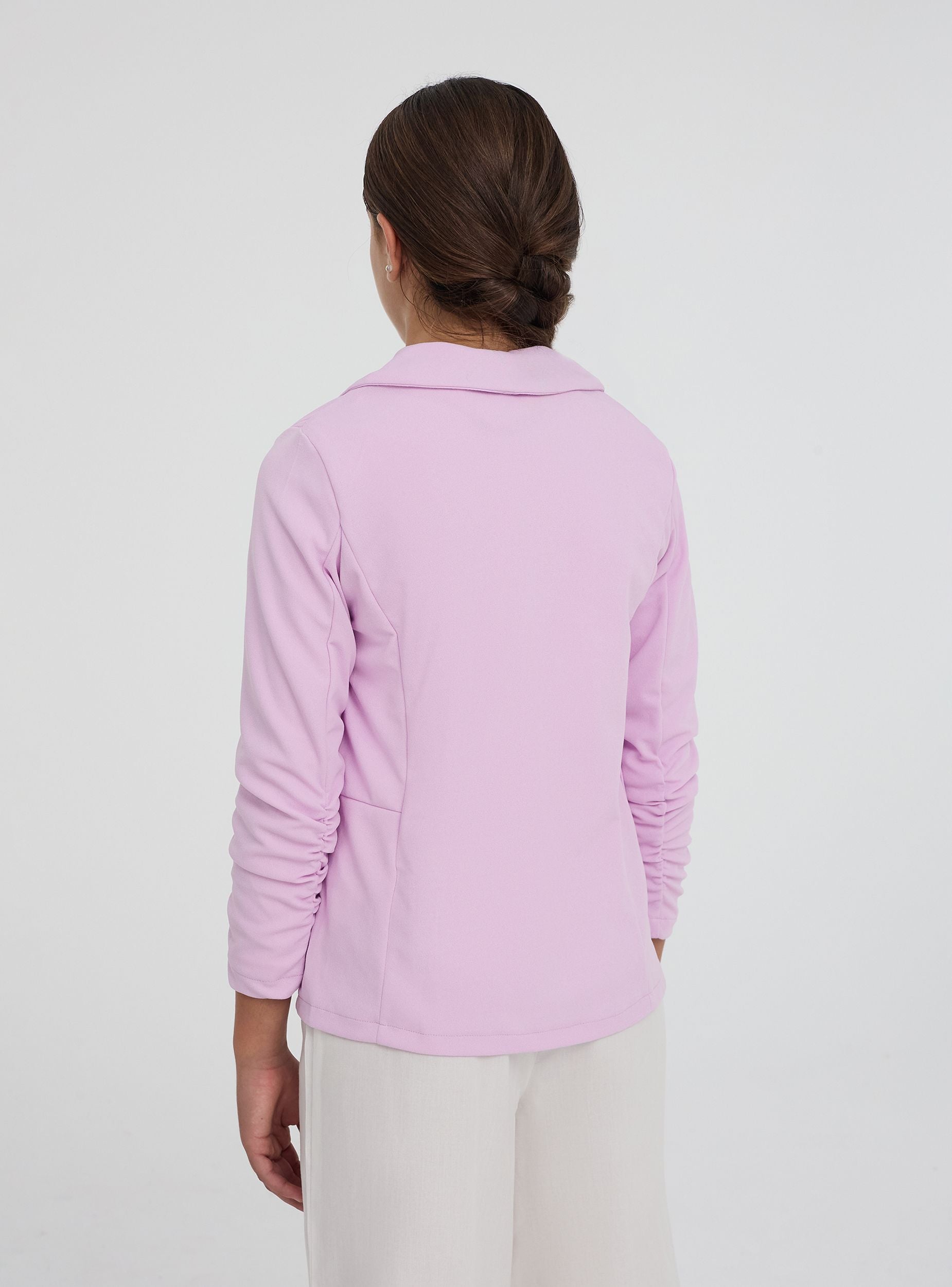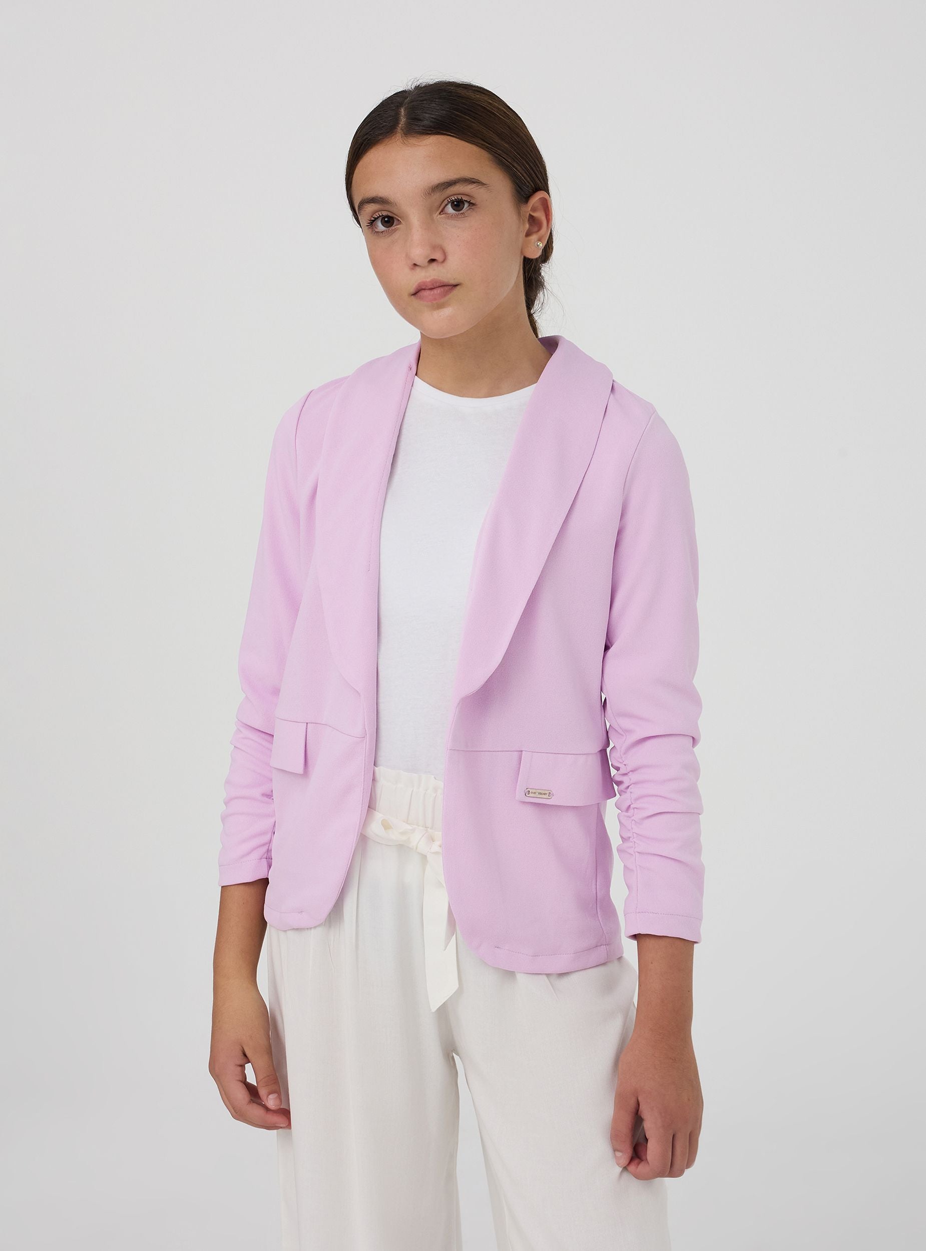 Giacca da bambina perfetta per aggiungere un tocco di eleganza ai look primaverili. Con la sua tinta unita e il design glamour, è pensata per le bambine che amano sentirsi raffinate. Le arricciature sulle maniche aggiungono un dettaglio romantico e moderno, mentre le tasche finte sul davanti completano lo stile chic. Un capo versatile, ideale per completare gli outfit delle occasioni speciali o per aggiungere un po' di classe a ogni giorno.