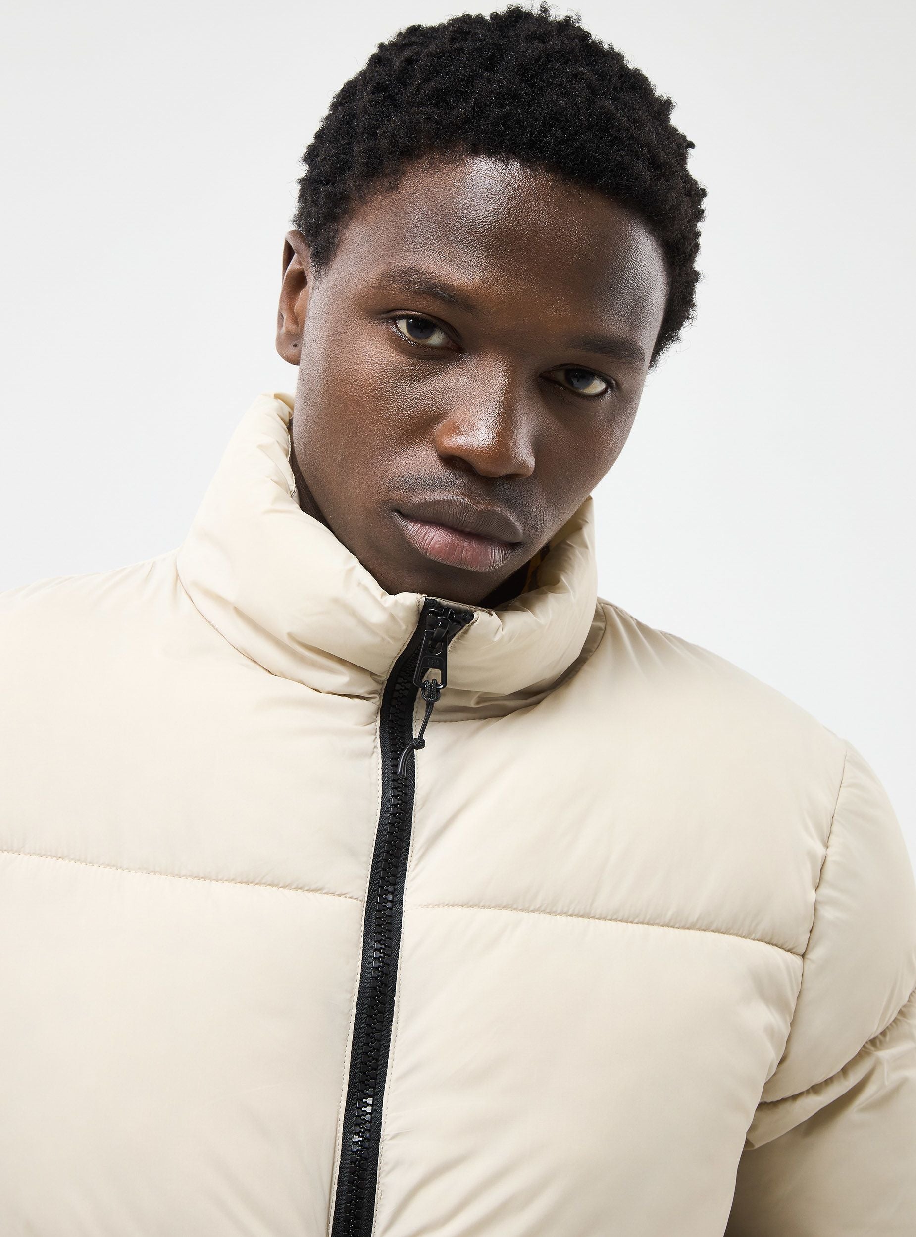 Giubbotto da uomo a collo alto senza cappuccio con chiusura a zip frontale e due tasche laterali con zip. Il design trapuntato offre un'ottima protezione dal freddo grazie all'imbottitura calda e confortevole. I polsini elastici assicurano una vestibilità aderente che blocca l'ingresso del vento. Il bordo inferiore con coulisse e stopper permettere di regolarne la vestibilità. Ideale per un look casual durante le giornate invernali, si abbina perfettamente a jeans o pantaloni sportivi. Perfetto per passeggiate in città, escursioni all'aperto o per il tempo libero, garantendo stile e comfort in ogni situazione.