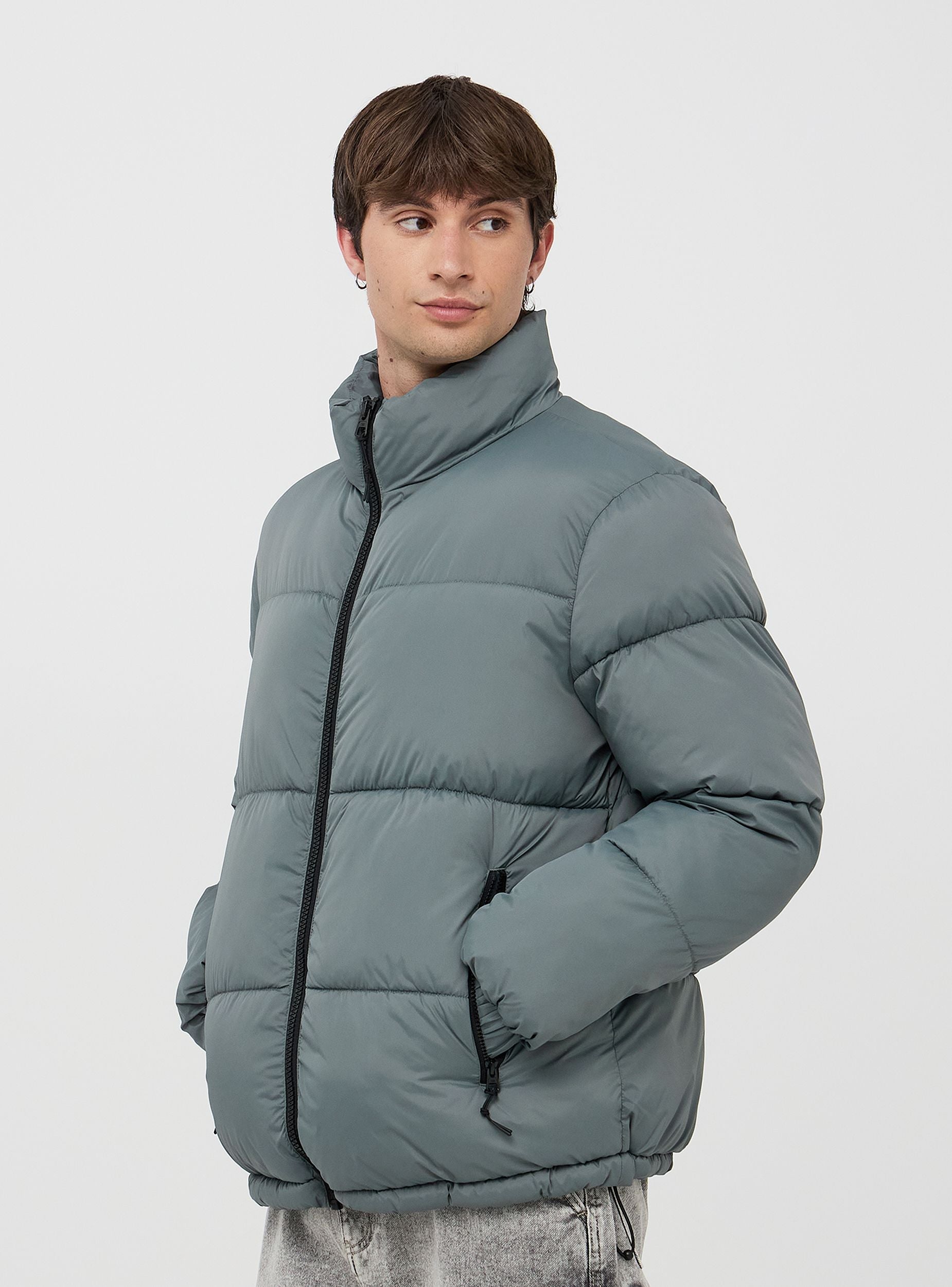 Giubbotto da uomo a collo alto senza cappuccio con chiusura a zip frontale e due tasche laterali con zip. Il design trapuntato offre un'ottima protezione dal freddo grazie all'imbottitura calda e confortevole. I polsini elastici assicurano una vestibilità aderente che blocca l'ingresso del vento. Il bordo inferiore con coulisse e stopper permettere di regolarne la vestibilità. Ideale per un look casual durante le giornate invernali, si abbina perfettamente a jeans o pantaloni sportivi. Perfetto per passeggiate in città, escursioni all'aperto o per il tempo libero, garantendo stile e comfort in ogni situazione.