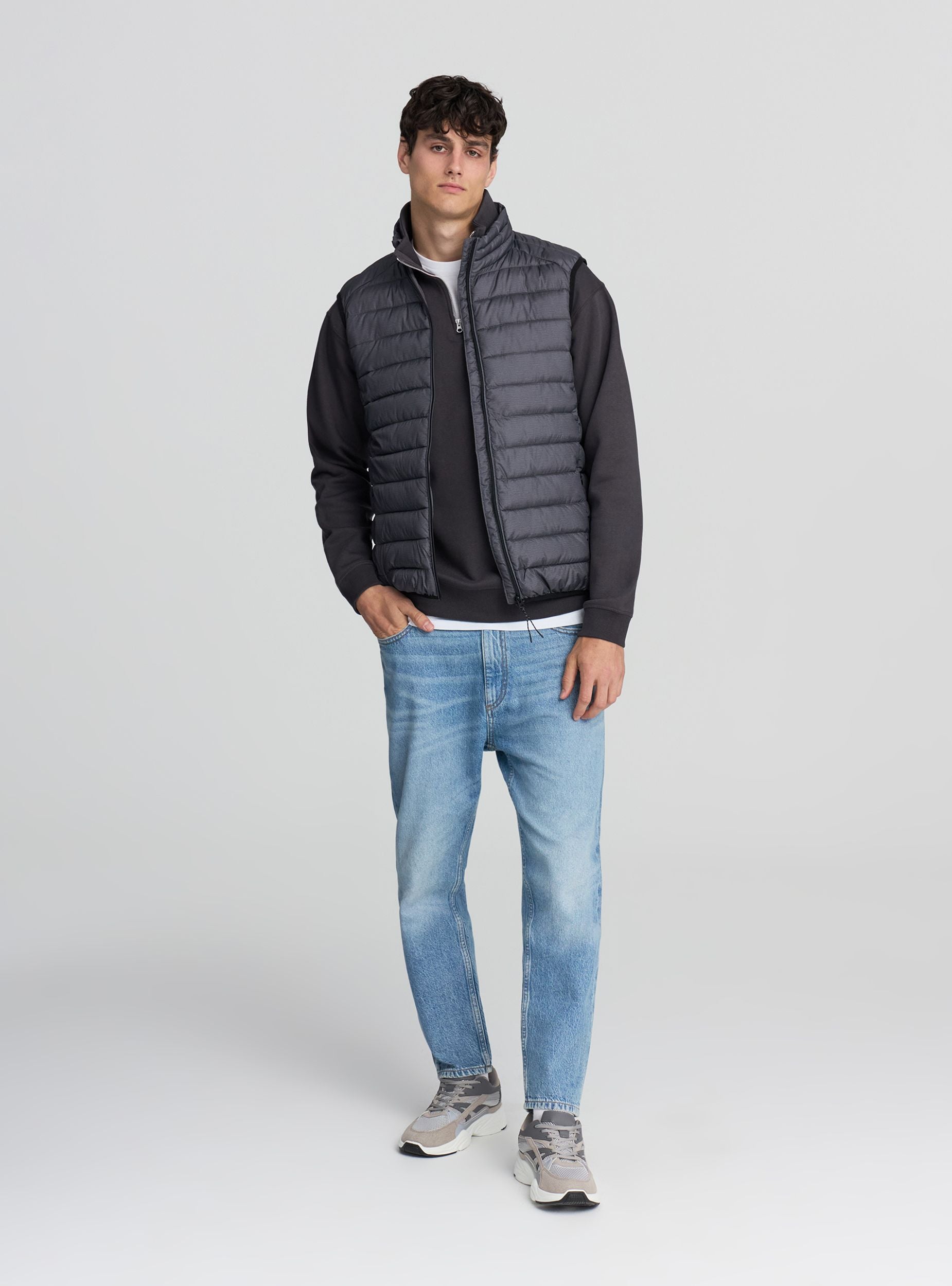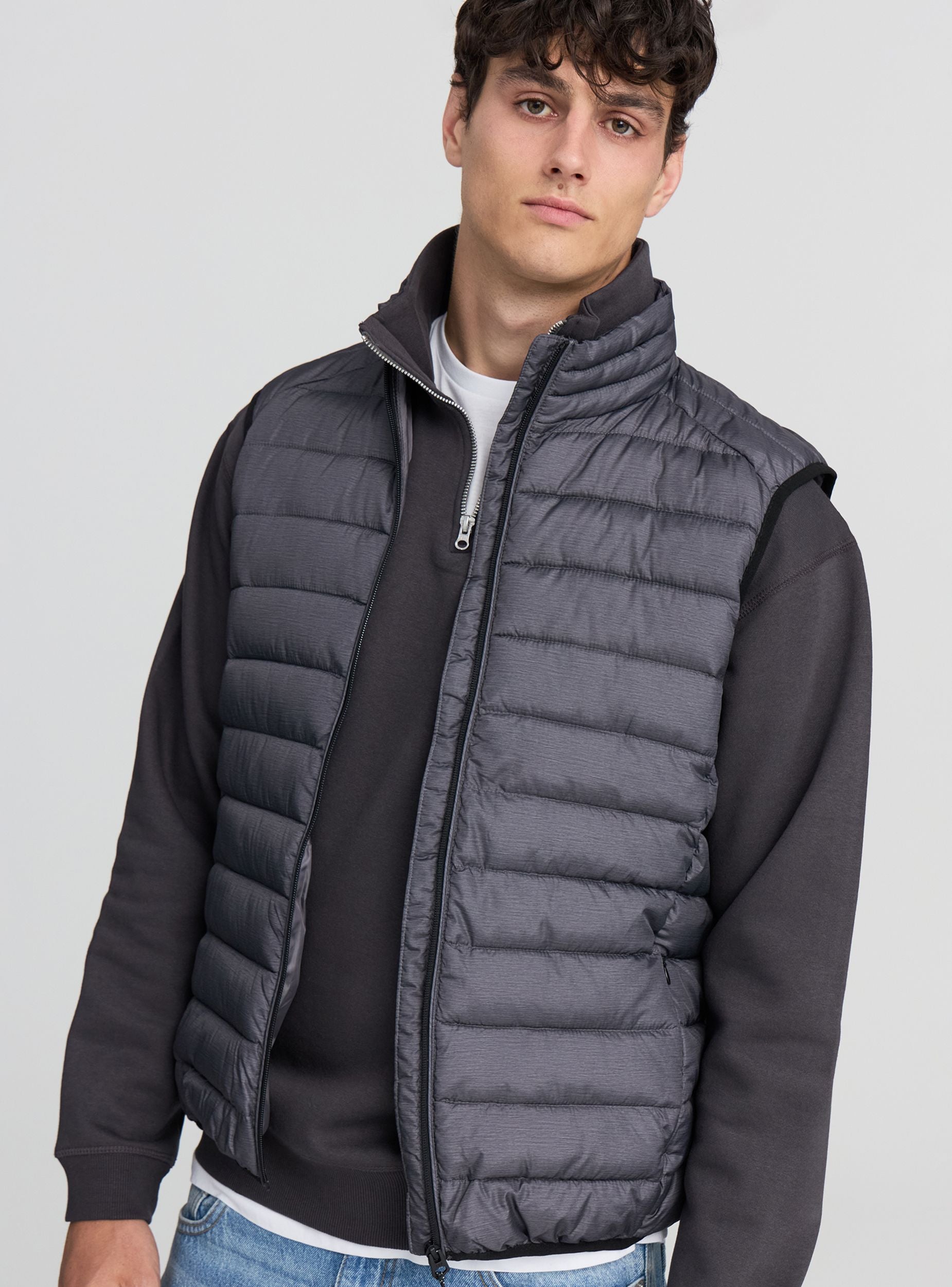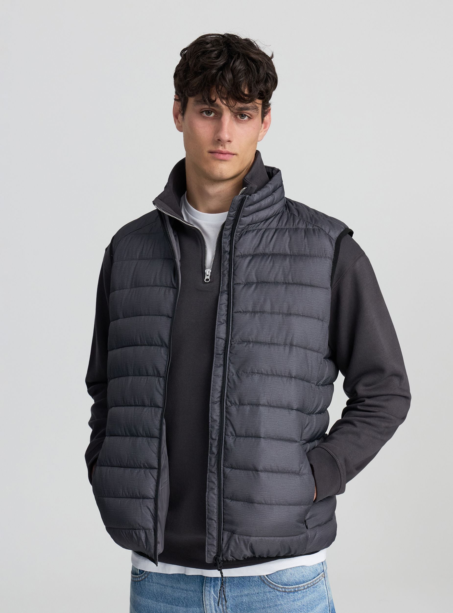 Giubbino 100 grammi smanicato da uomo ideale per la mezza stagione, perfetto per look casual e pratici. Il modello con imbottitura leggera offre comfort e libertà di movimento, mentre il collo alto protegge dal vento. Chiusura frontale con zip e tasche laterali con zip aggiungono funzionalità. Vestibilità regolare, facile da abbinare a felpe o maglie per uno stile versatile in città o nel tempo libero.
