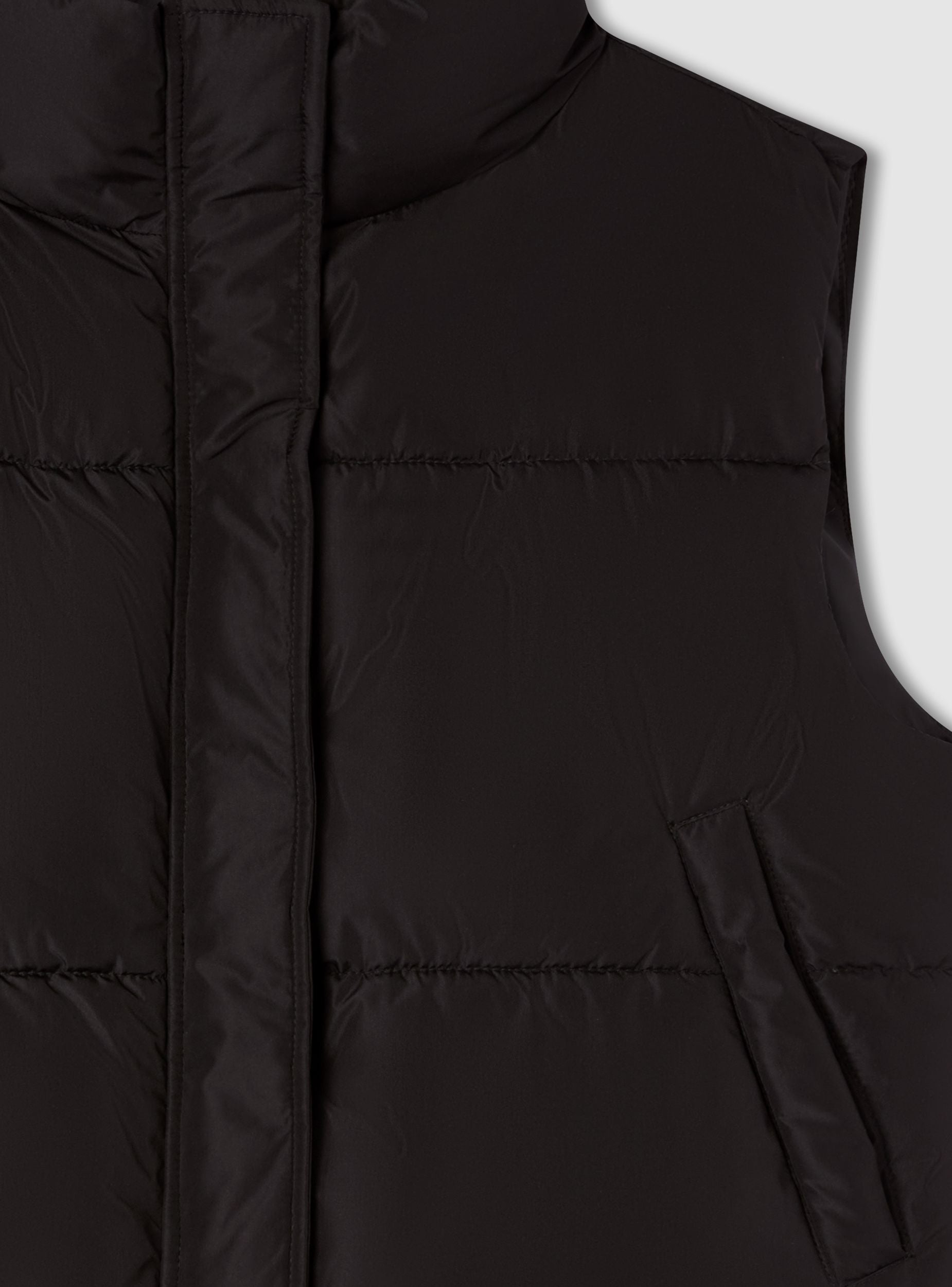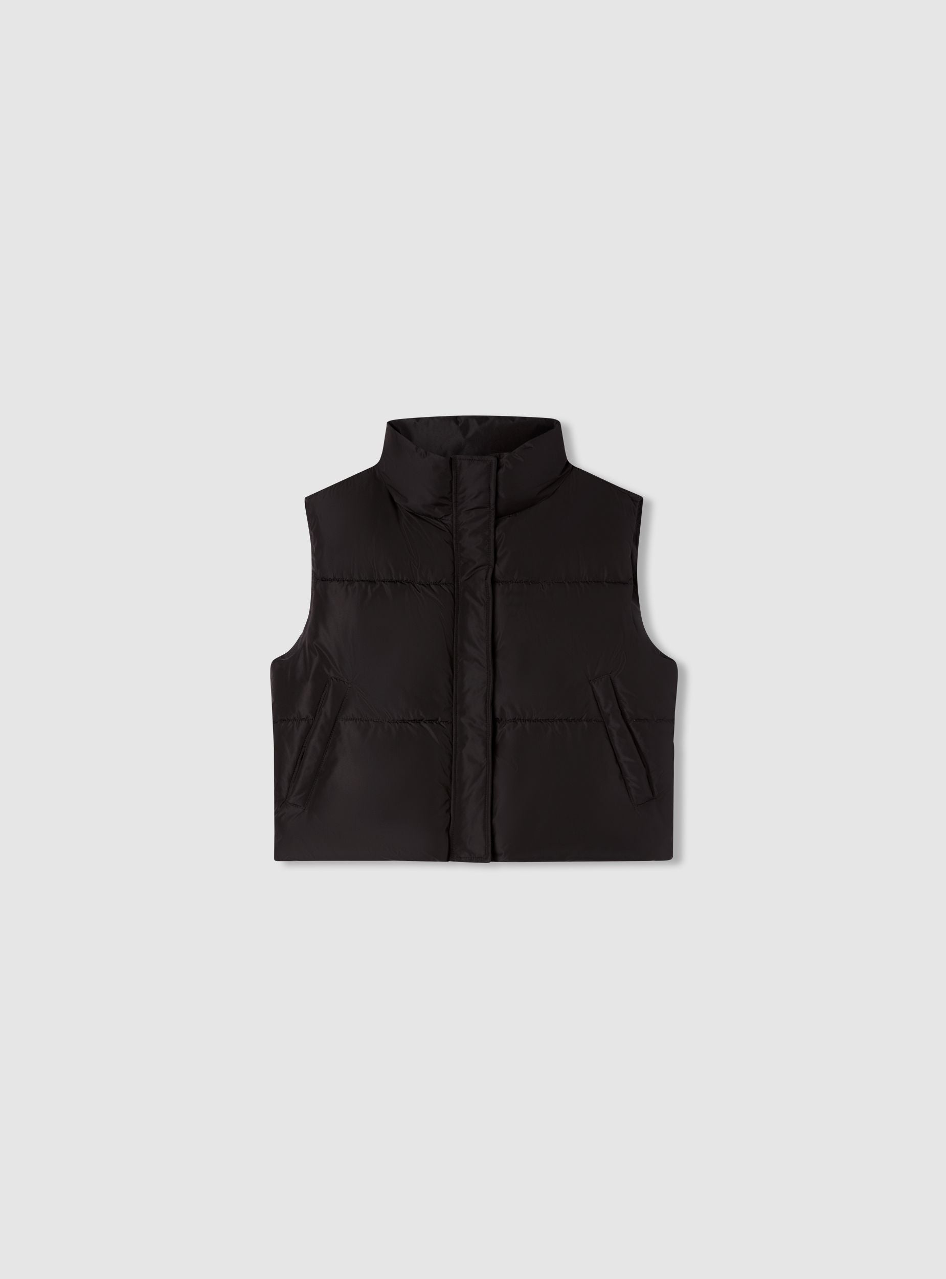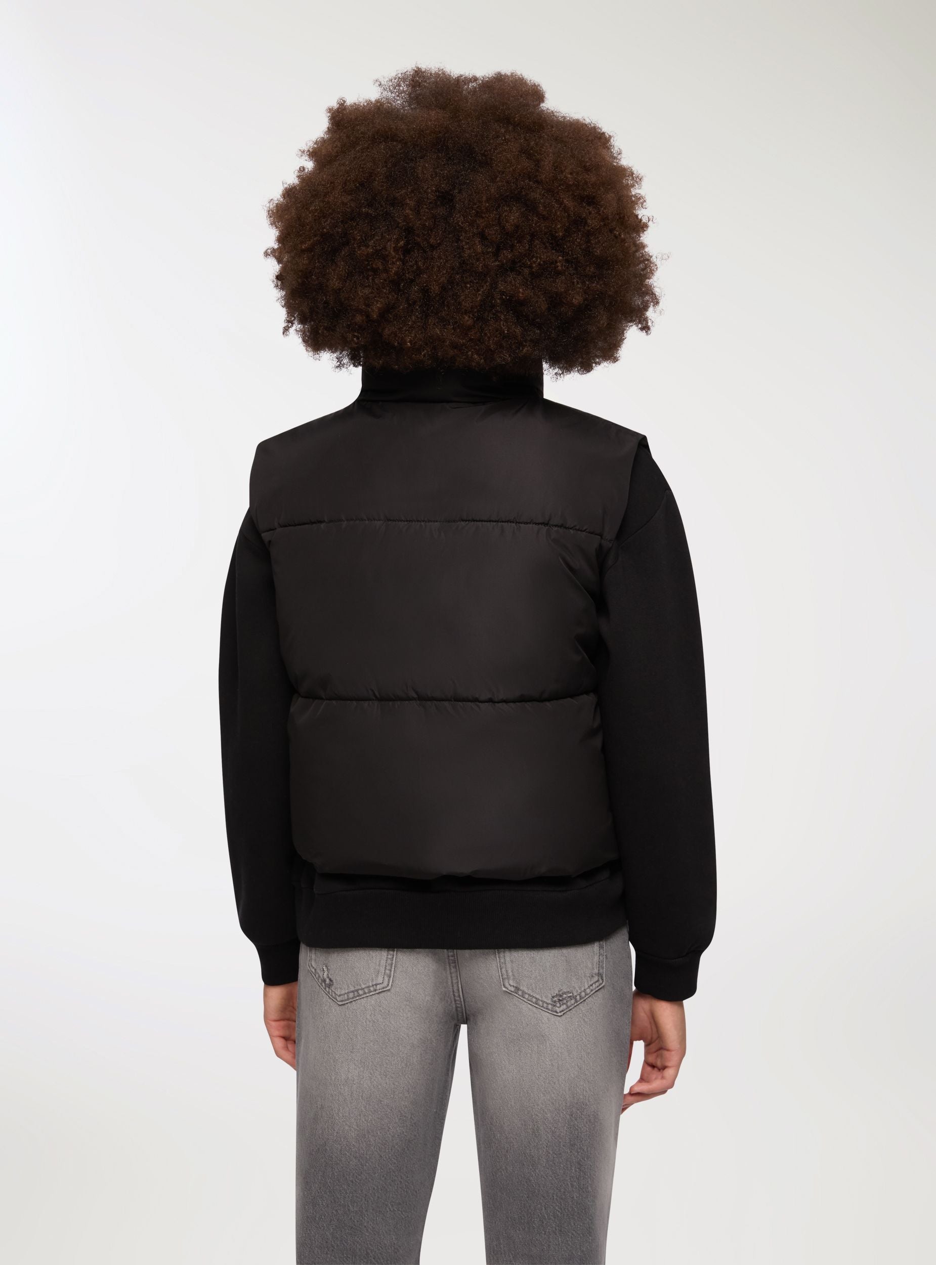 Gilet da donna con collo alto e chiusura frontale con zip nascosta e bottoni a pressione, ideale per completare outfit casual e sportivi. Dotato di tasche laterali pratiche con bottone a pressione, offre comfort e versatilità. Perfetto per essere indossato sopra maglie o felpe, garantisce una vestibilità regolare adatta a diverse occasioni, dal tempo libero alle passeggiate all'aperto.