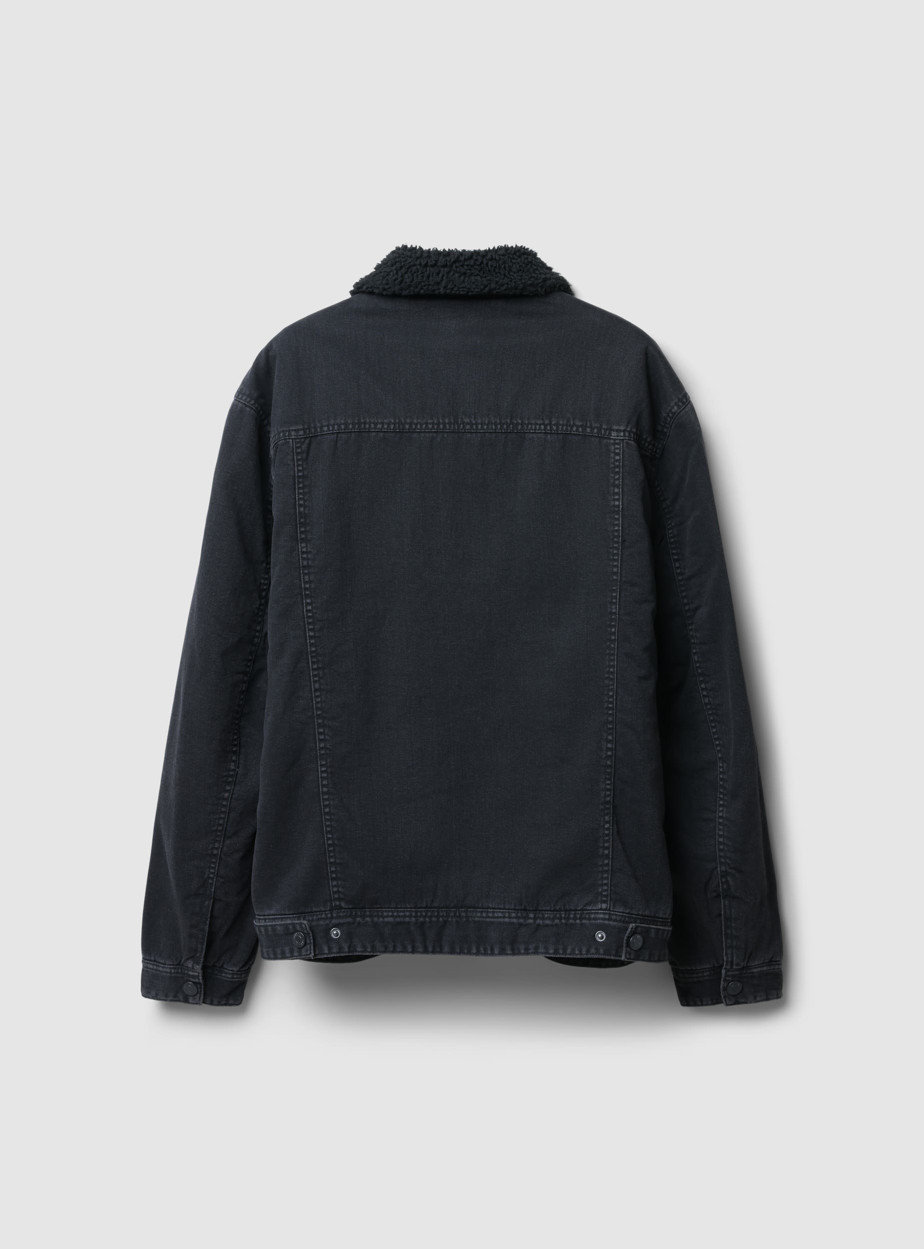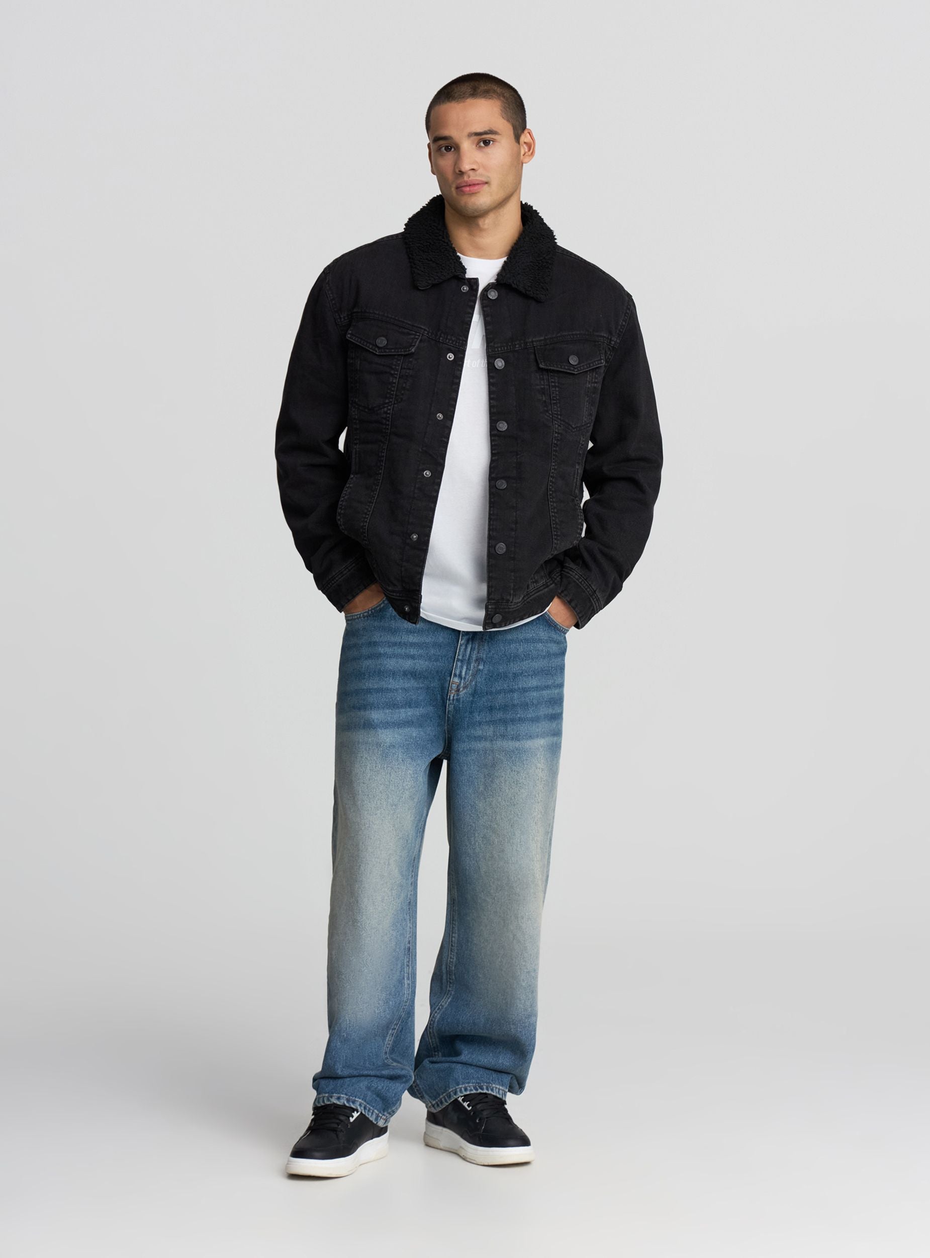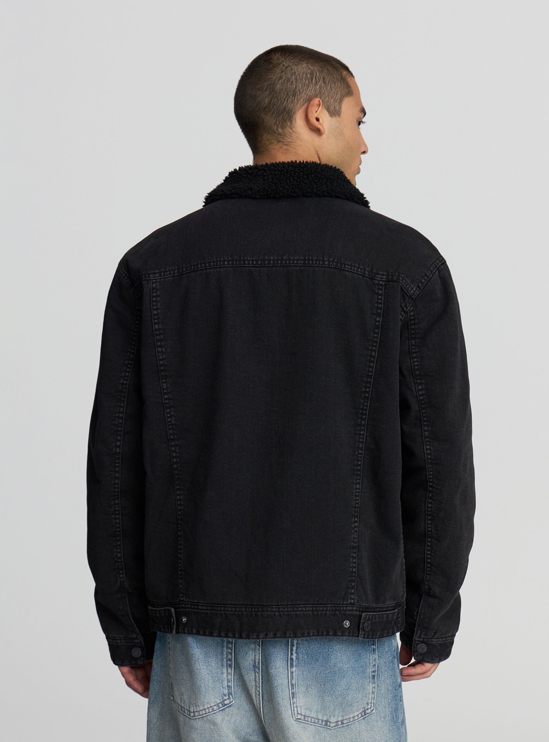 Giubbino da uomo con colletto classico e imbottitura interna calda effetto pelo. Ideale per un look casual, presenta una chiusura con bottoni e tasche frontali. Perfetto per abbinamenti con jeans e magliette, offre comfort e stile per la stagione fredda.