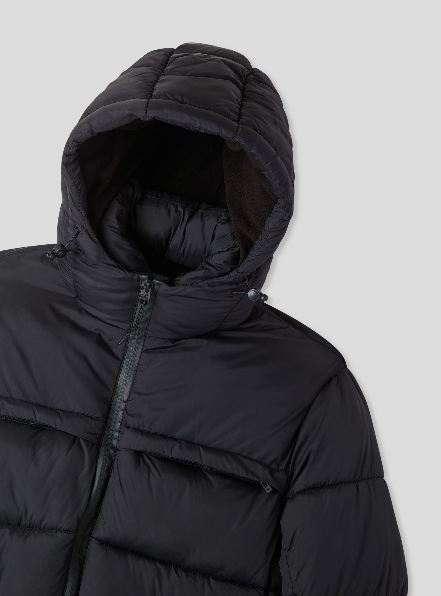 Giubbotto imbottito da uomo con cappuccio fisso, ideale per affrontare le giornate invernali in città o nel tempo libero. La chiusura frontale con zip waterproof, le tasche sul petto con cerniera e le tasche laterali con bottone a pressione offrono protezione e praticità. Presenta dettagli curati come polsini con velcro per regolarne la vestibilità e una comoda tasca con velcro all'interno. Il design trapuntato conferisce un tocco contemporaneo e dinamico.Dettagli