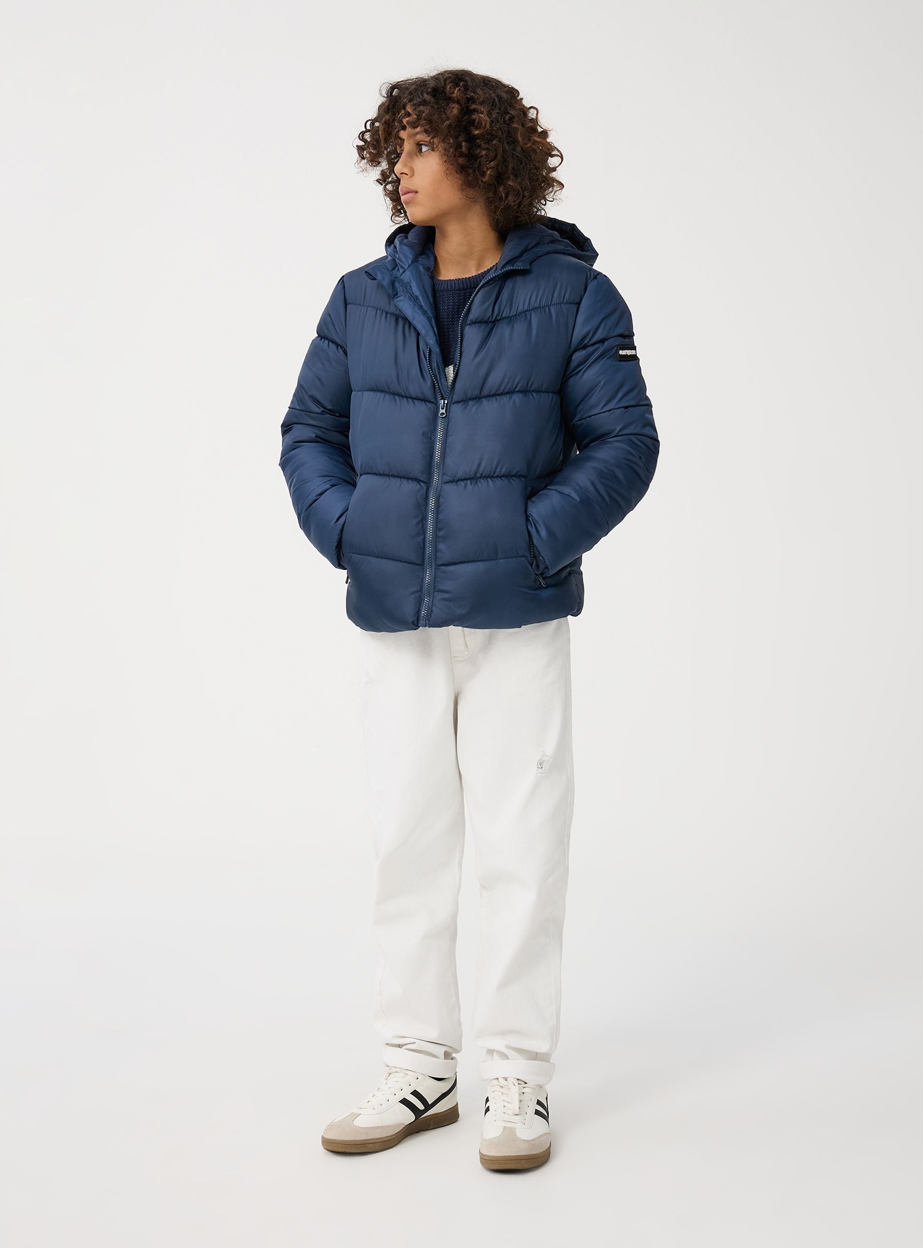 Giubbotto imbottito da bambino con design trapuntato. Il capo presenta una chiusura centrale con zip, cappuccio integrato e due tasche laterali con zip per una maggiore sicurezza. Vestibilità comoda e calda, ideale per un look casual. Perfetto per le giornate fredde, sia in città che per attività all'aperto. Un accessorio versatile e funzionale per il guardaroba invernale. Dotato di stopper in vita per regolarne la vestibilità.