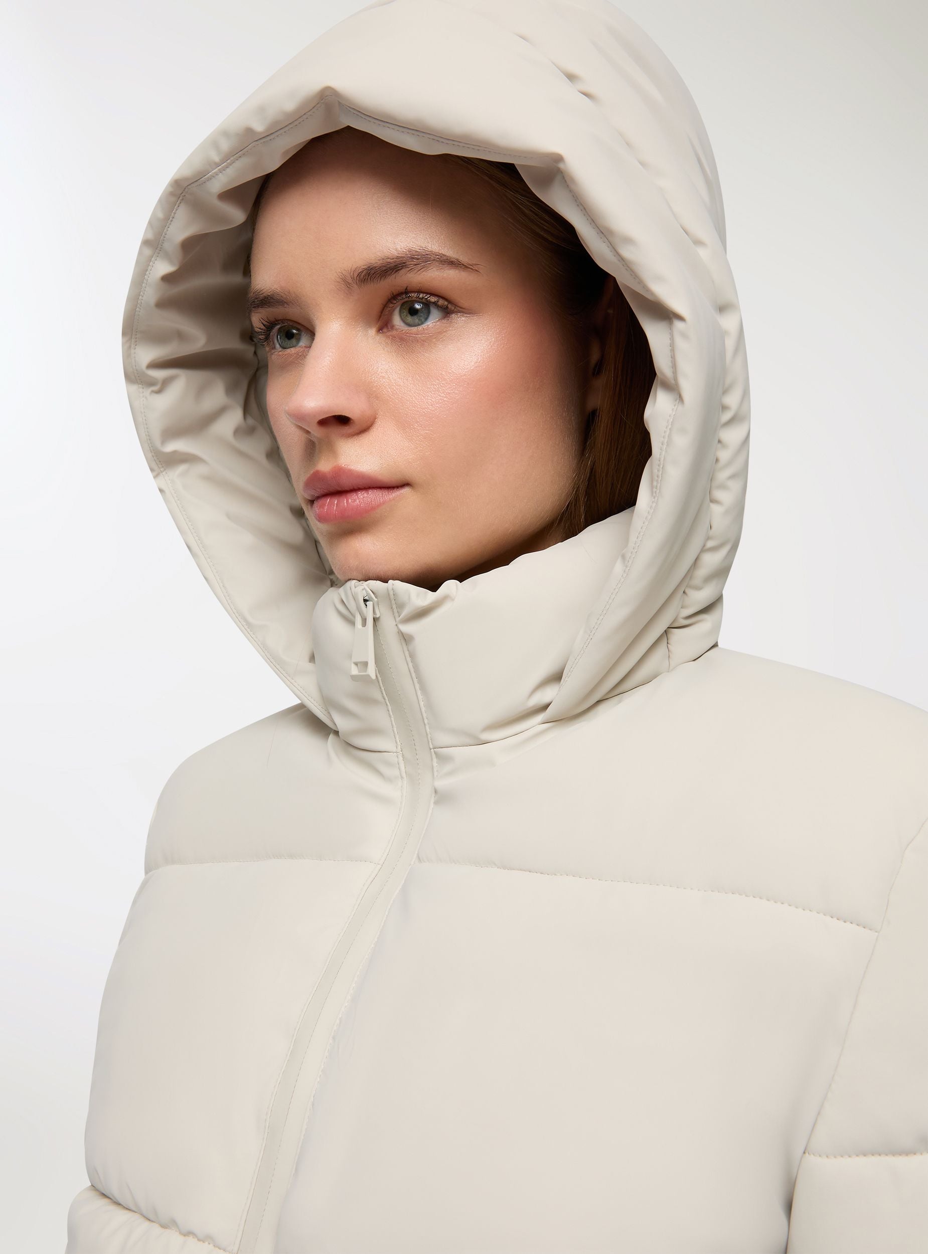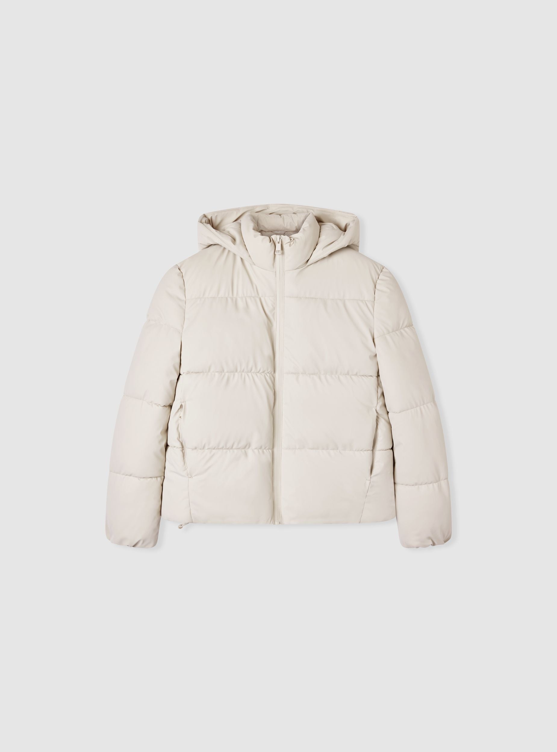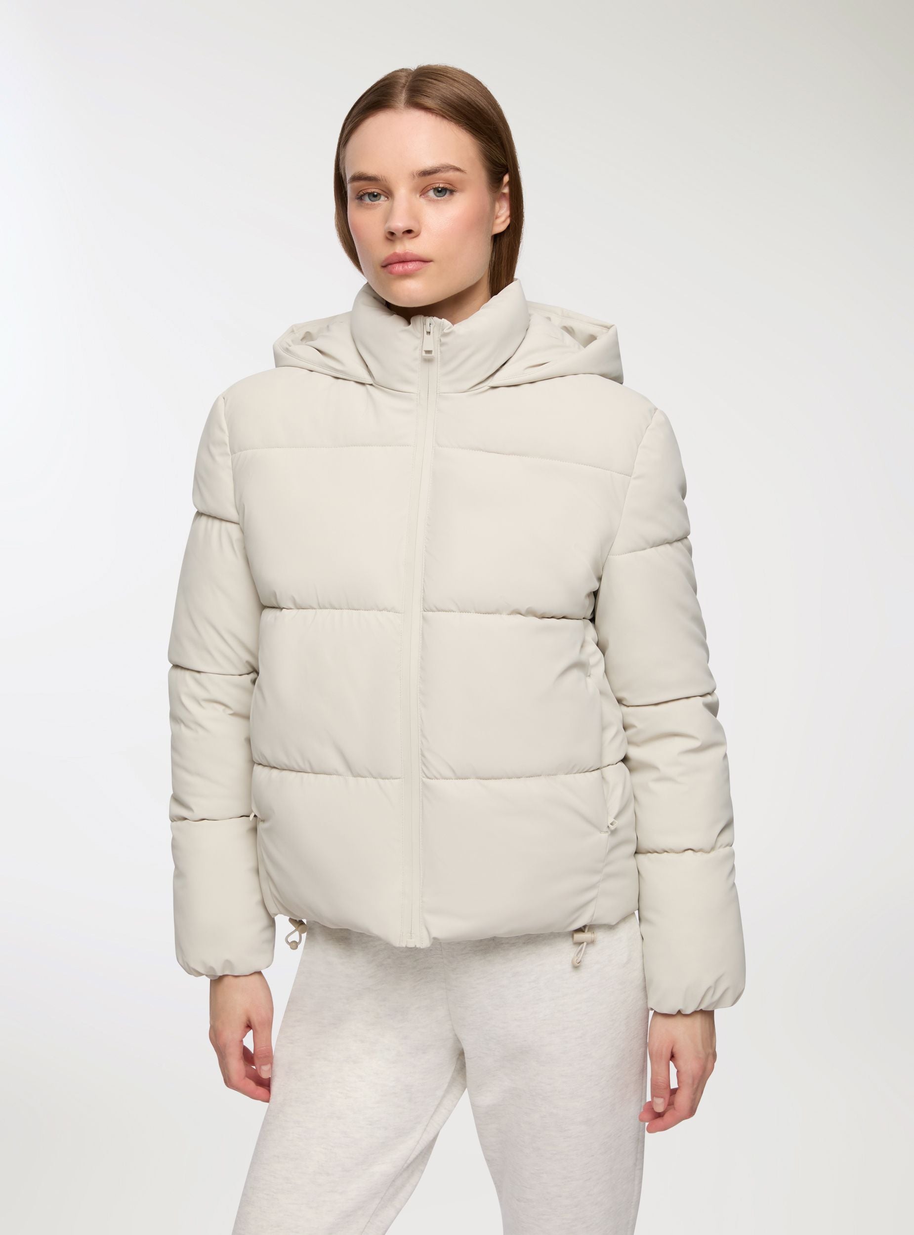 Giubbotto imbottito da donna con cappuccio, ideale per affrontare le giornate fredde con stile. Dotato di chiusura a zip, tasche laterali con zip e stopper sul fondo, offre una vestibilità comoda e pratica. Perfetto per abbinamenti casual e sportivi, si distingue per il design moderno effetto gommato e la funzionalità. Un capo versatile per completare il tuo guardaroba invernale.