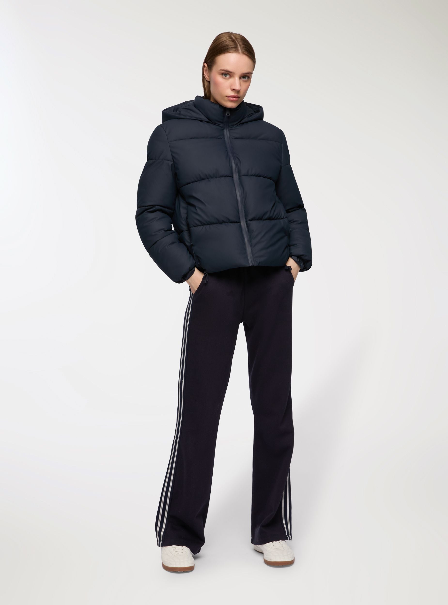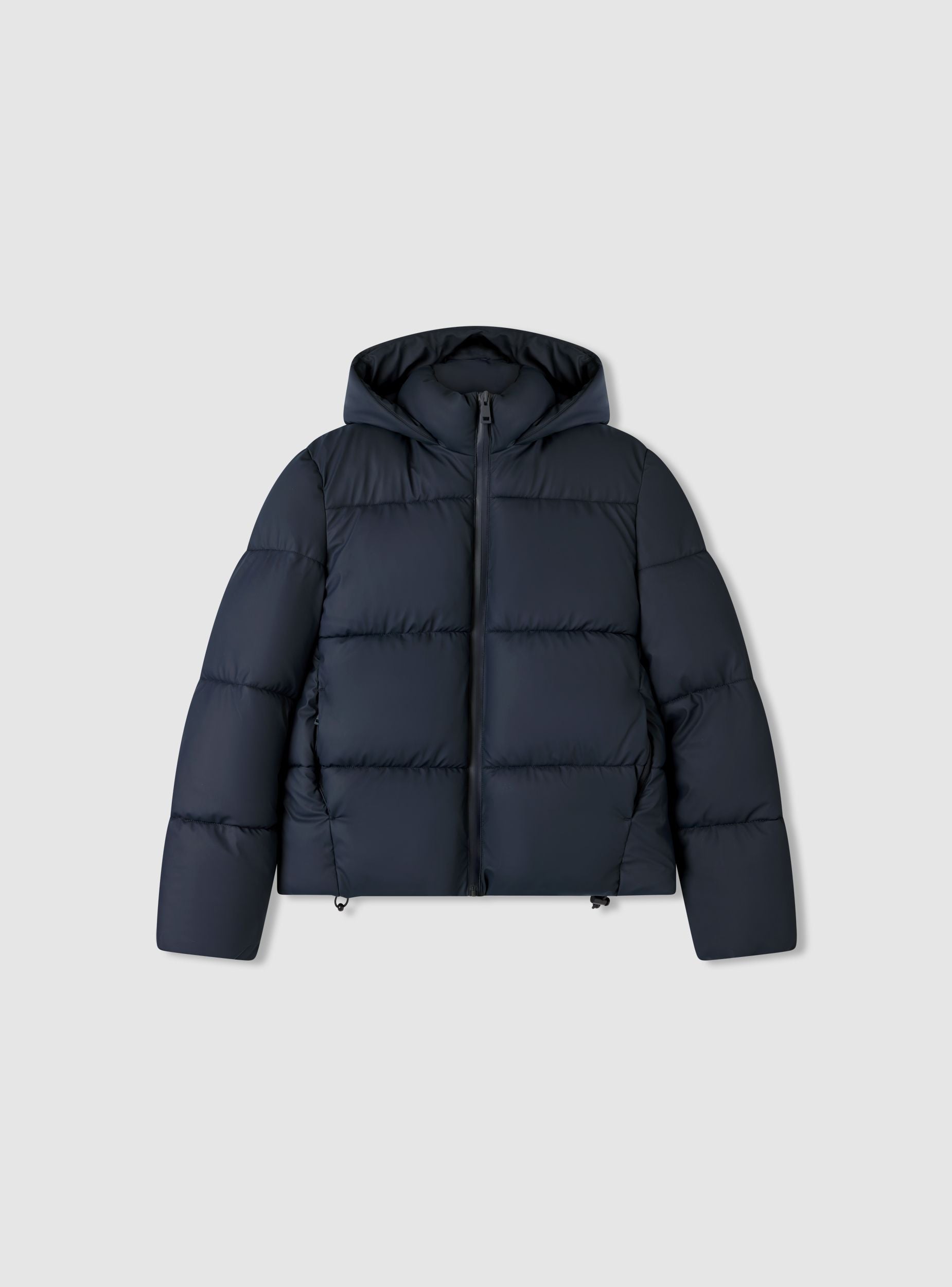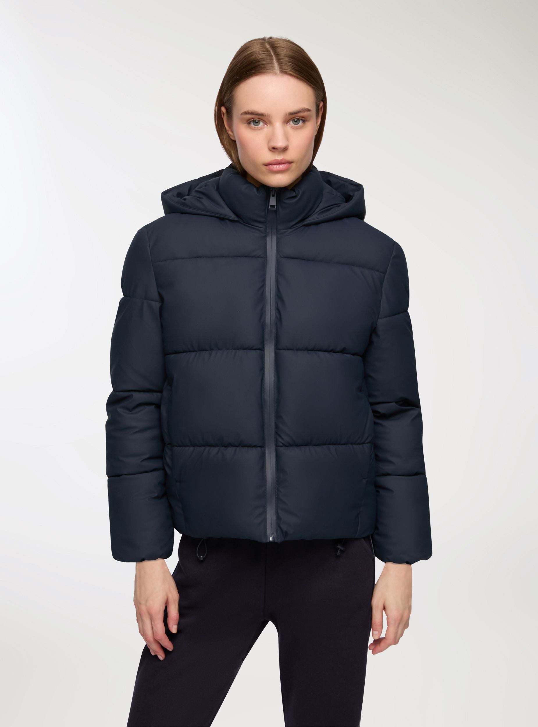 Giubbotto imbottito da donna con cappuccio, ideale per affrontare le giornate fredde con stile. Dotato di chiusura a zip, tasche laterali con zip e stopper sul fondo, offre una vestibilità comoda e pratica. Perfetto per abbinamenti casual e sportivi, si distingue per il design moderno effetto gommato e la funzionalità. Un capo versatile per completare il tuo guardaroba invernale.