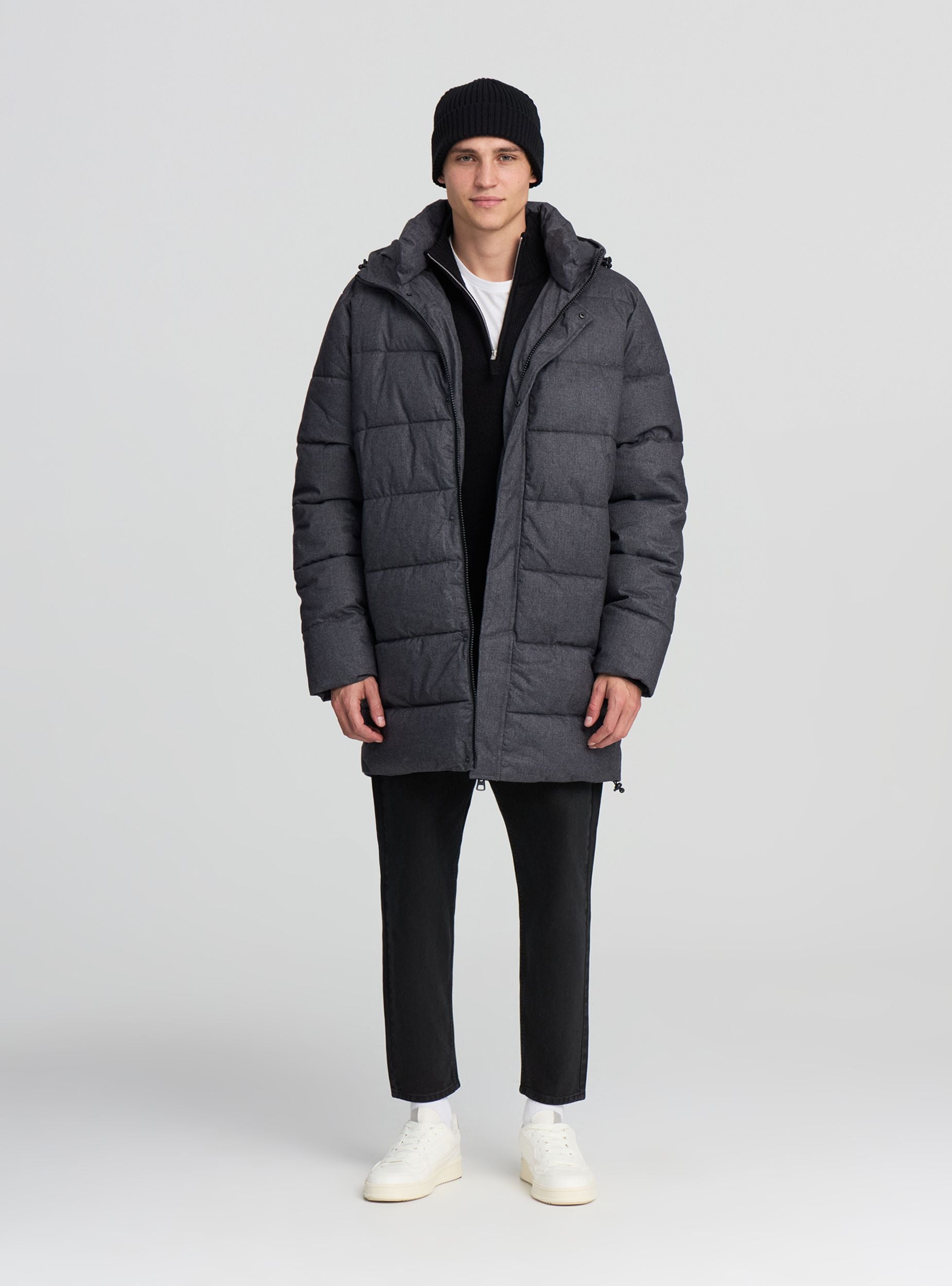 Giubbotto da uomo ideale per affrontare le giornate fredde con stile. Dotato di cappuccio per una protezione extra, presenta una chiusura con zip e tasche laterali pratiche. Il design imbottito garantisce calore e comfort, mentre la lunghezza offre una copertura ottimale. Perfetto per un look casual urbano, si abbina facilmente a jeans e scarpe sportive per un outfit versatile e moderno.