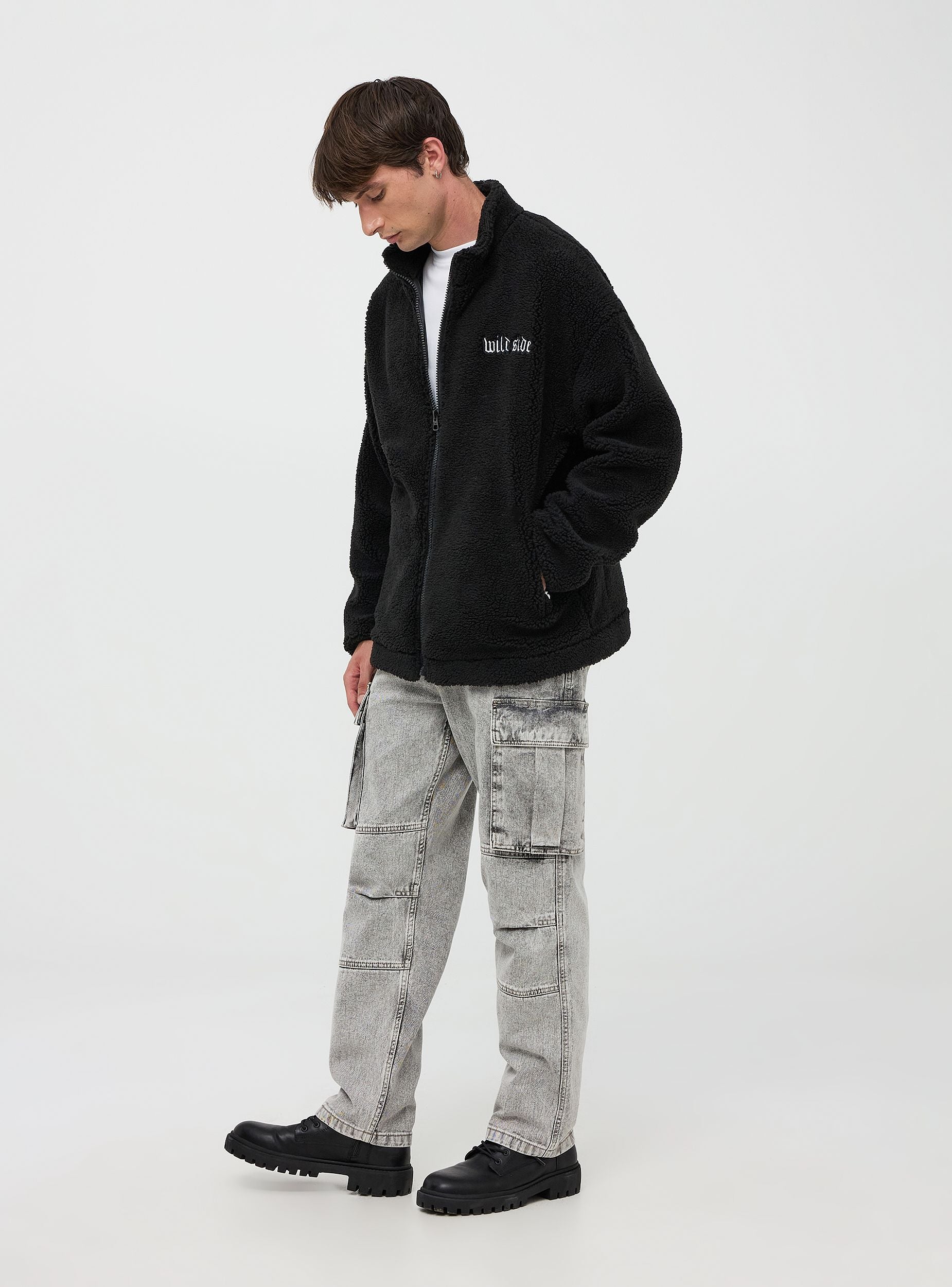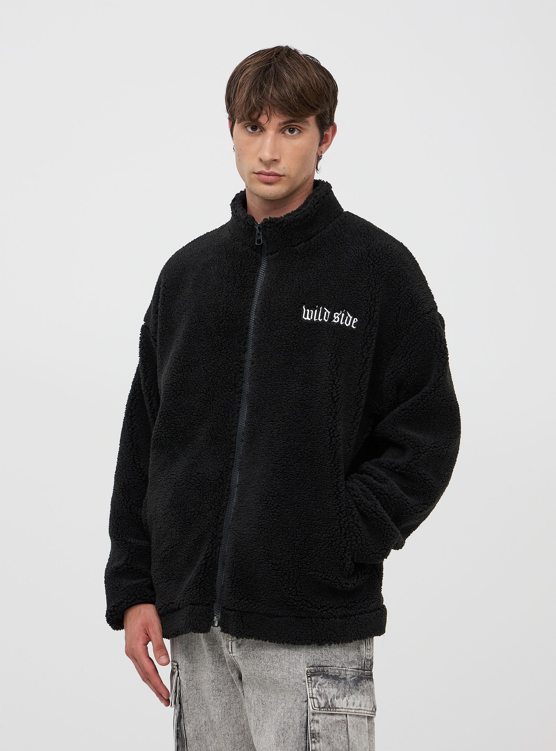 Giubbotto da uomo con zip frontale tono su tono, collo alto e tessuto sherpa che offre calore e comfort. Presenta una scritta ricamata sul petto e un'ampia scritta sulla schiena. Modello con tasche laterali con zip. Le maniche lunghe e i bordi elasticizzati garantiscono una vestibilità ottimale e protezione contro il freddo. Perfetto per le giornate invernali è ideale per un look casual e alla moda, adatto a uscite quotidiane, passeggiate in città o attività all'aperto. Si abbina facilmente a jeans, pantaloni sportivi o tute per un outfit comodo e trendy. Vestibilità oversize.