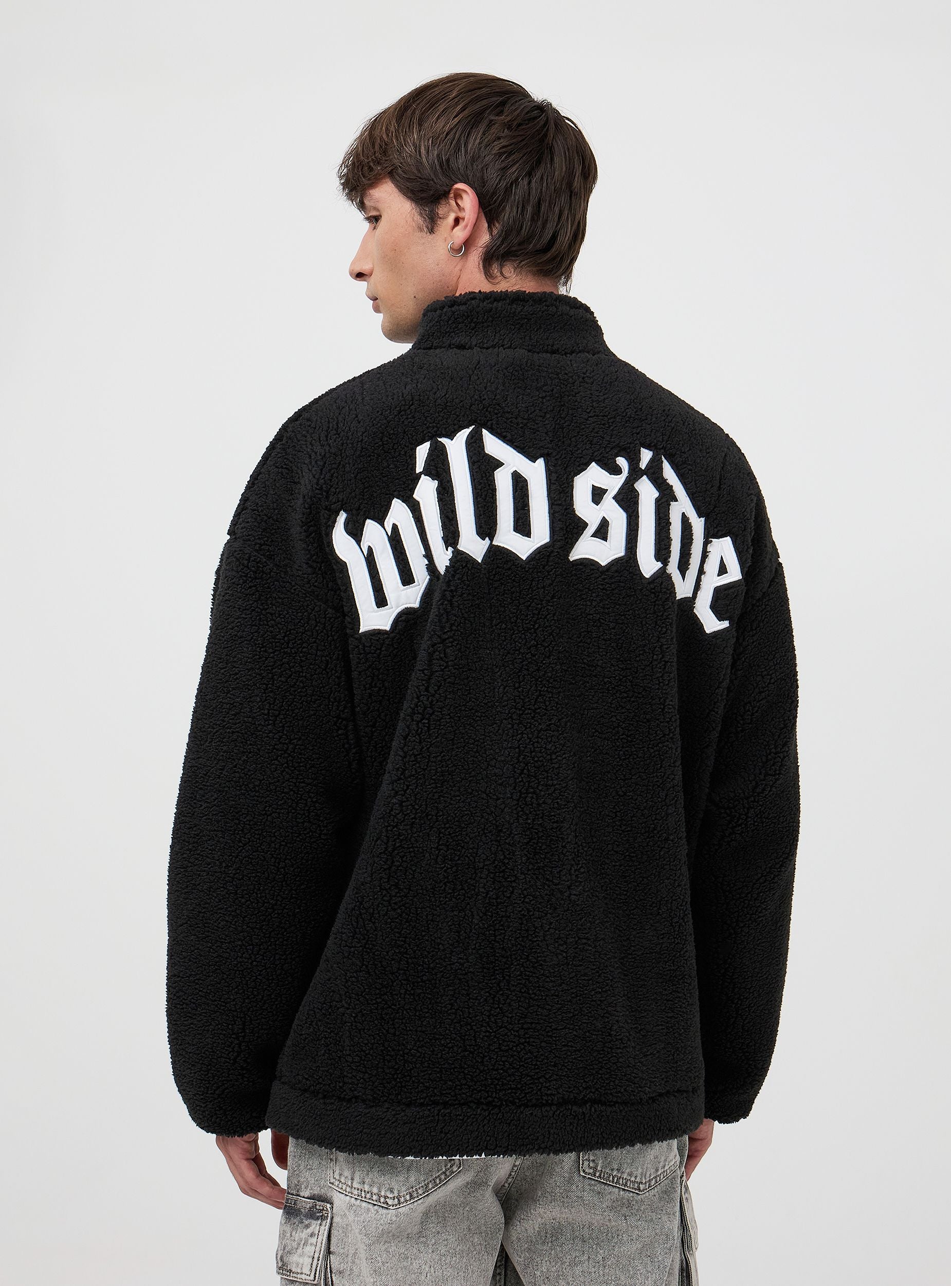 Giubbotto sherpa con ricamo scritta fronte/retro