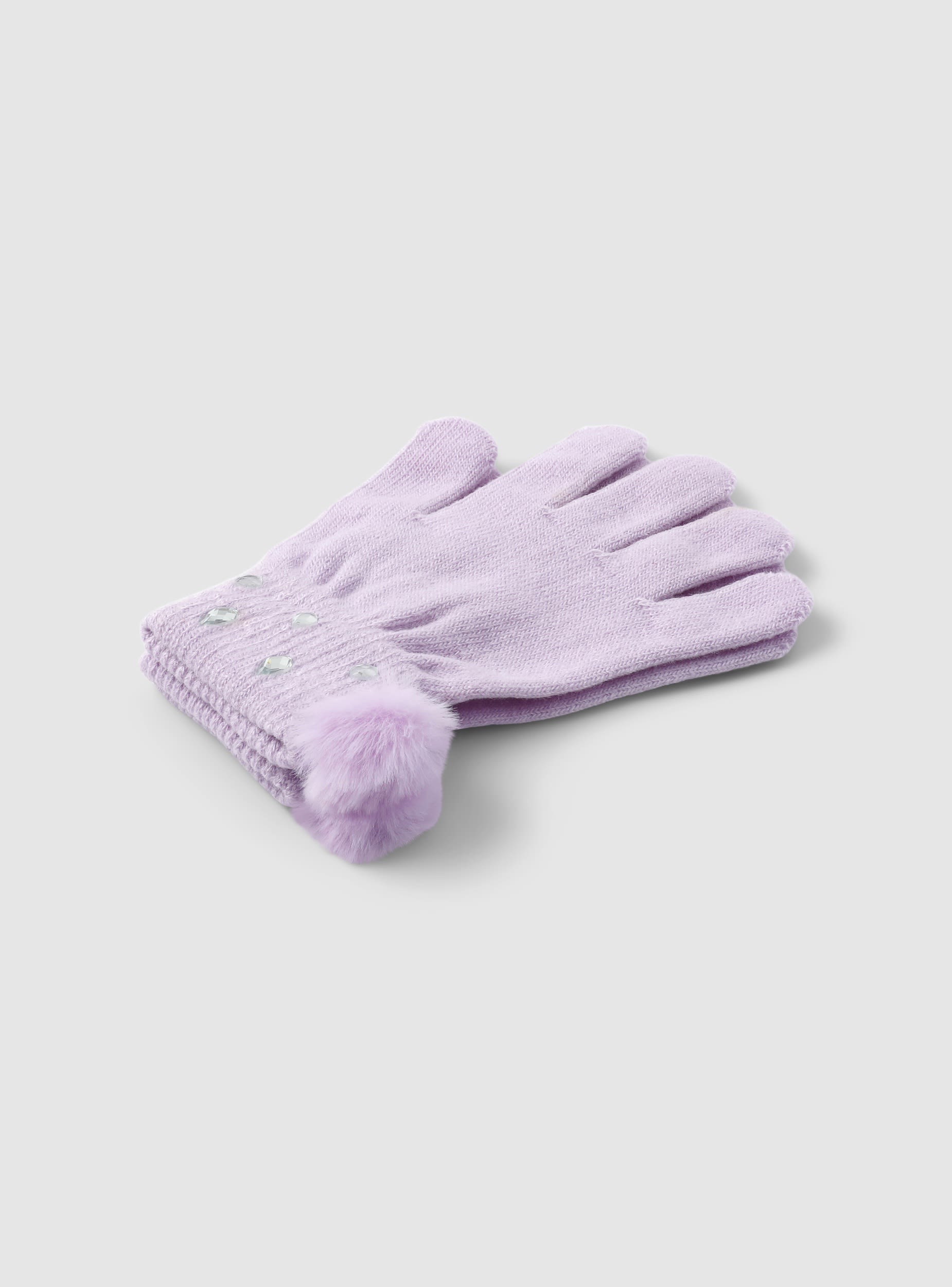 Guanti da bambina ideali per proteggere le mani dal freddo con stile. Presentano un design con pompon decorativi e applicazioni luccicanti sul polsino, aggiungendo un tocco di eleganza. Perfetti per completare outfit invernali casual o per occasioni speciali. La vestibilità comoda e il materiale morbido garantiscono comfort durante l'uso.