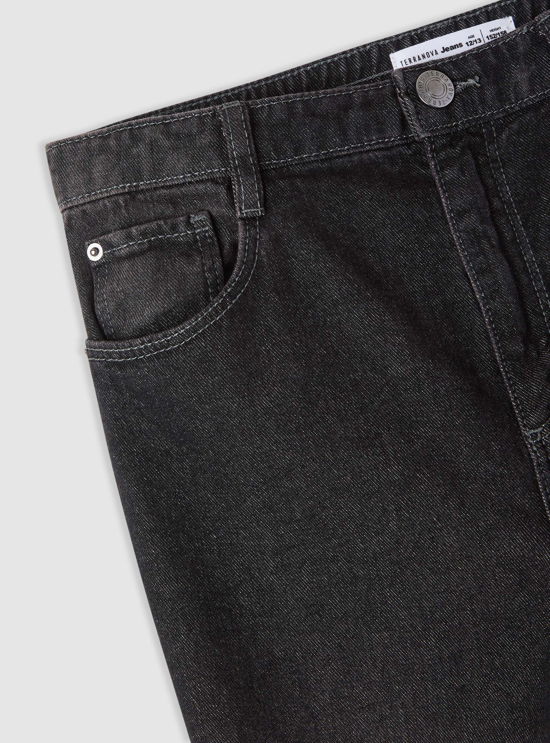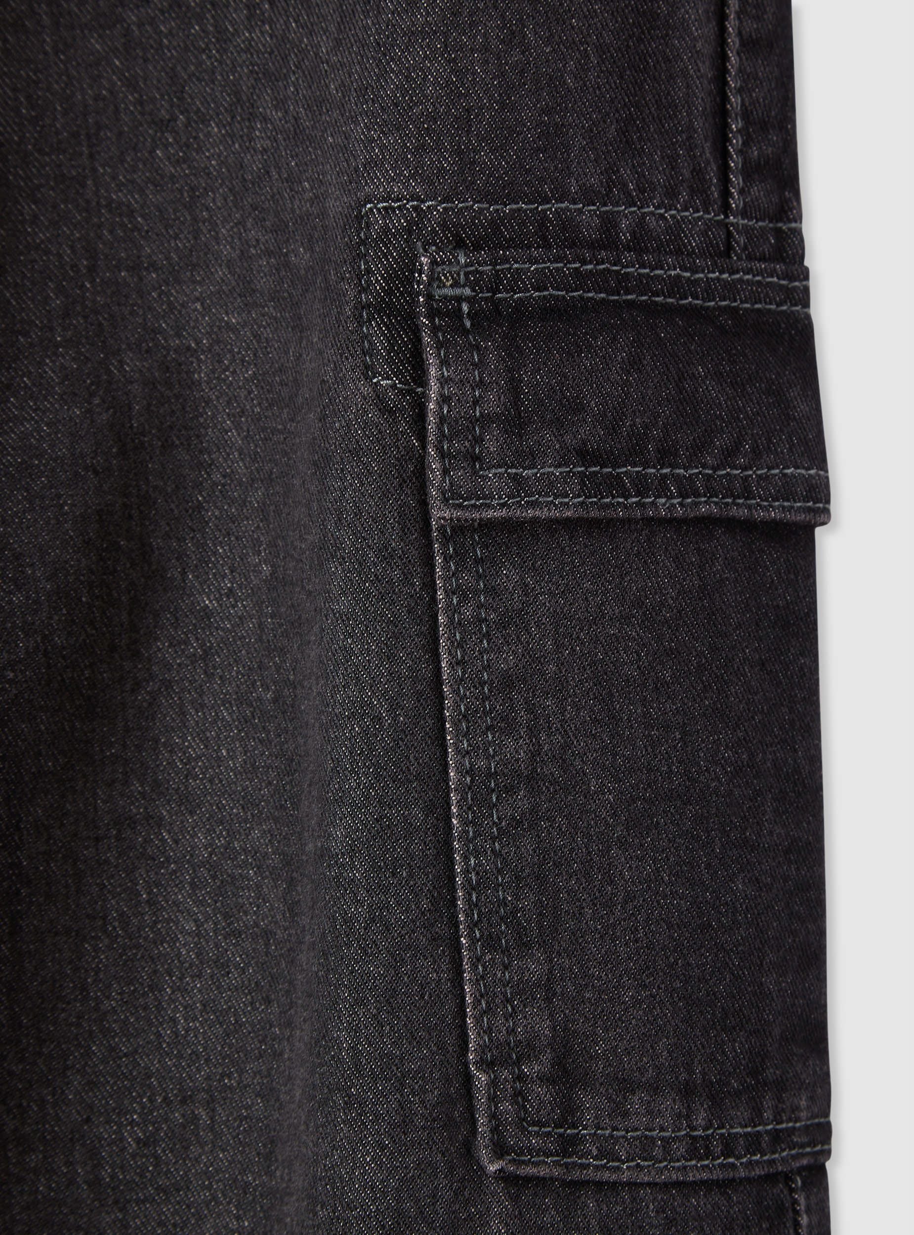 Jeans da bambina in tinta unita, modello cargo a gamba ampia e lunghezza piena. Presentano chiusura con bottone e zip, passanti in vita e tasche cinque classiche più tasche cargo con patta sui lati. Ideali per la scuola e il tempo libero, si abbinano a felpe o magliette e sneakers per un look pratico e contemporaneo. Vestibilità Regular con design resistente e dettagli cuciti a vista.