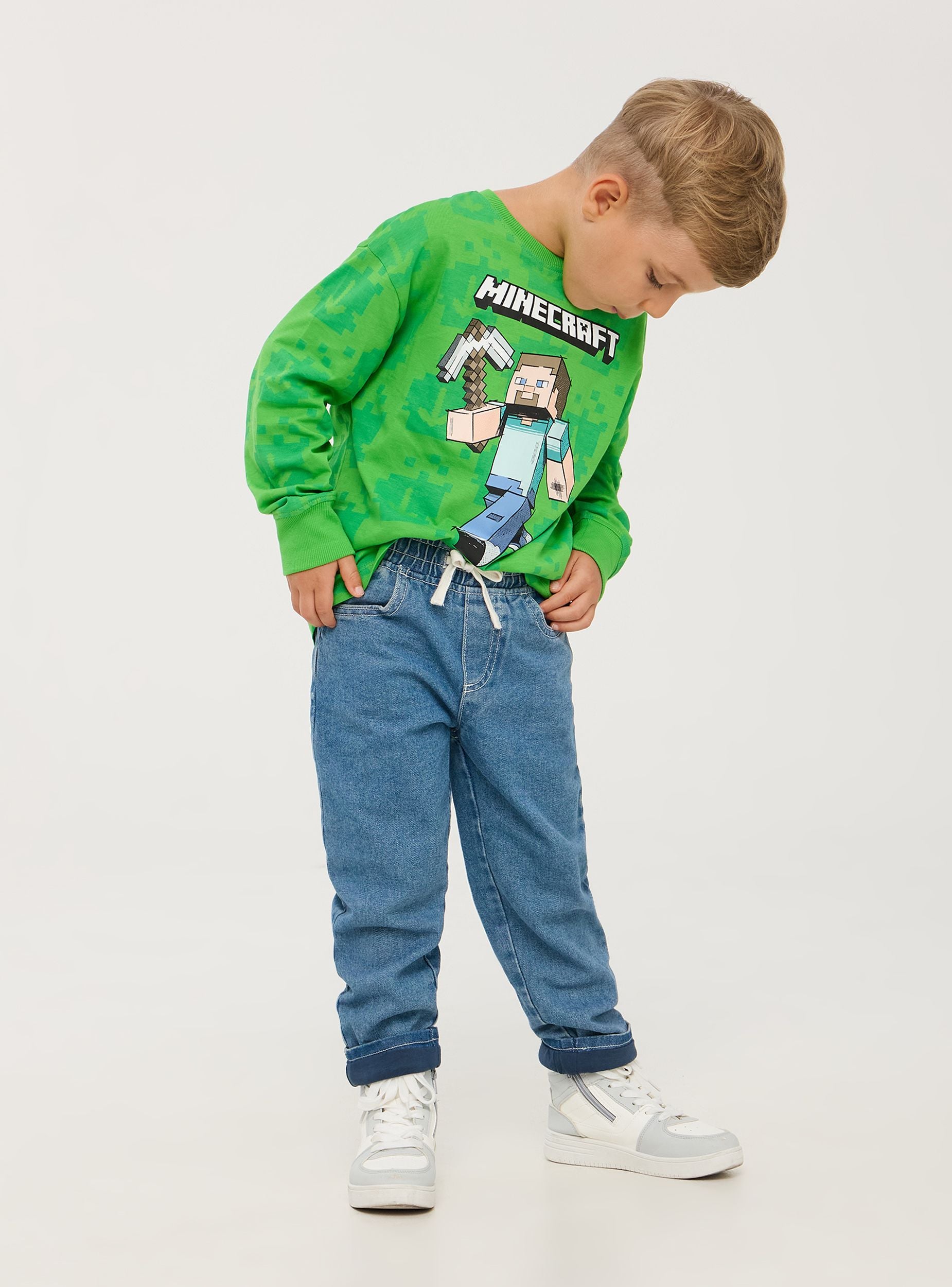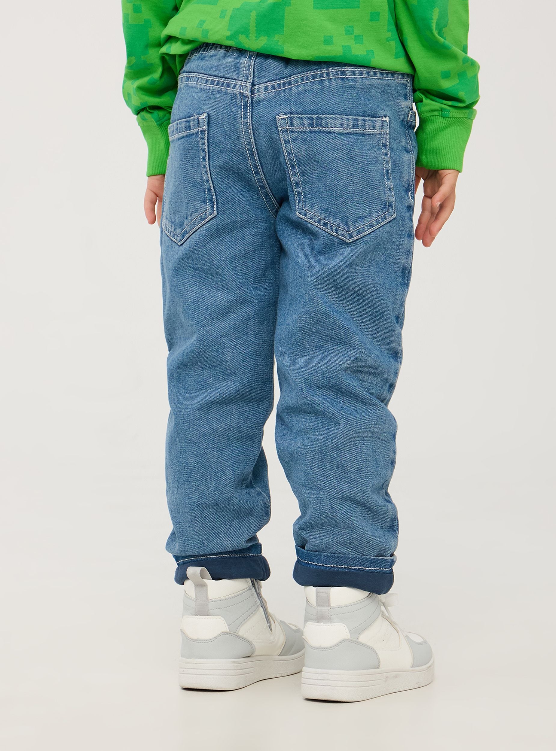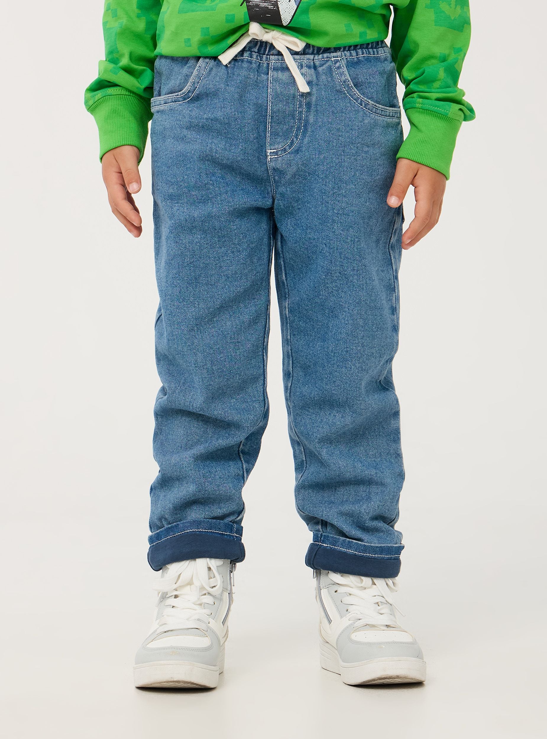 Jogger da bambino realizzati in denim lavaggio medio, offrono comfort e stile per un look moderno. Il design include una pratica coulisse in vita per una regolazione facile, due tasche frontali e due tasche posteriori per maggiore funzionalità. Perfetti per occasioni casual.Dettagli