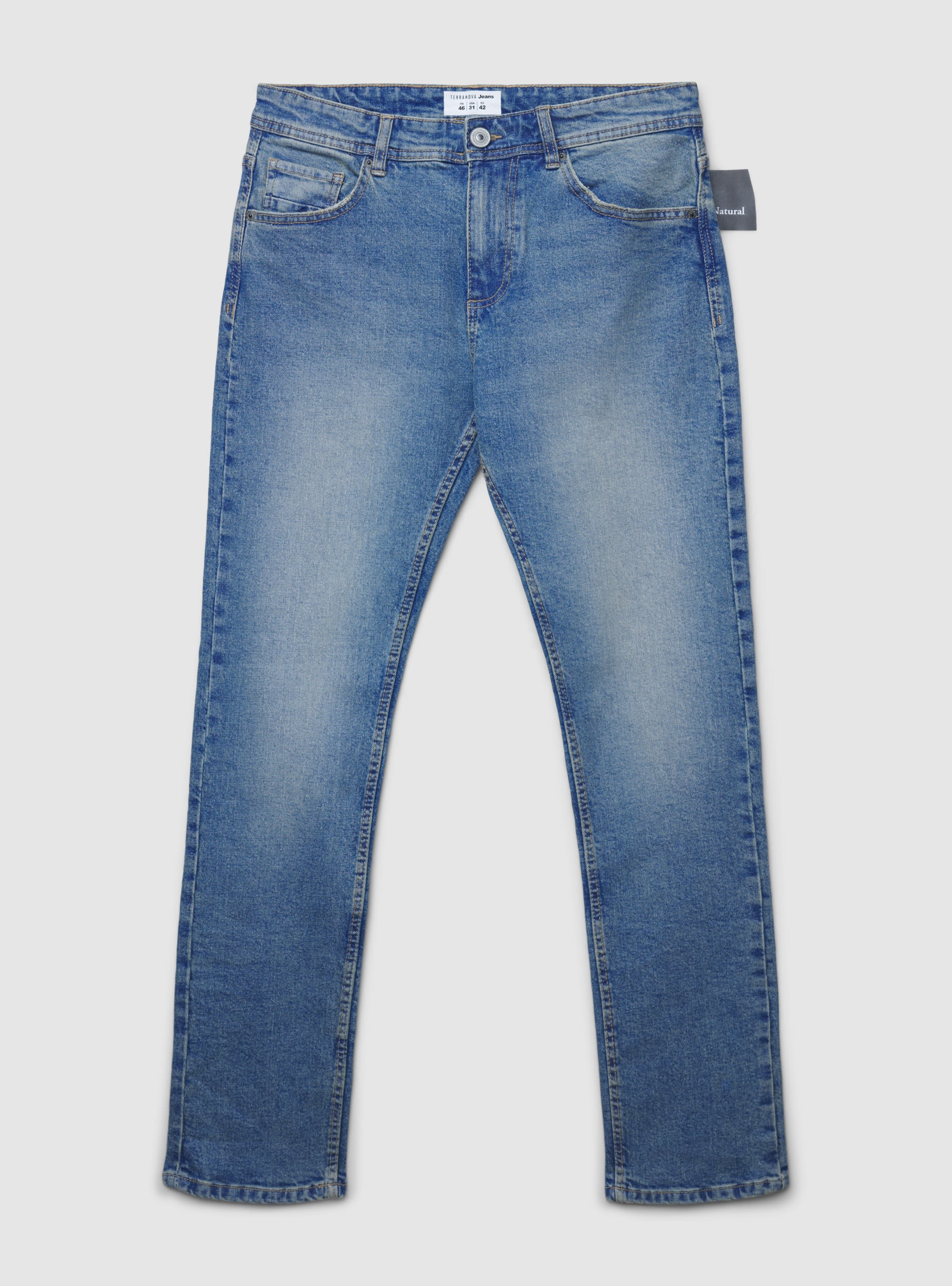 Jeans da uomo a tinta unita con vestibilità regular, perfetti per l’uso quotidiano. Modello a cinque tasche con taschino portamonete e chiusura con bottone e zip. Vita media e gamba dritta che cade comoda sulla scarpa. Ideali con una maglietta e sneakers per il tempo libero o con camicia e cintura per un look curato in ufficio informale. Passanti per cintura e cuciture visibili completano il design.Dettagli