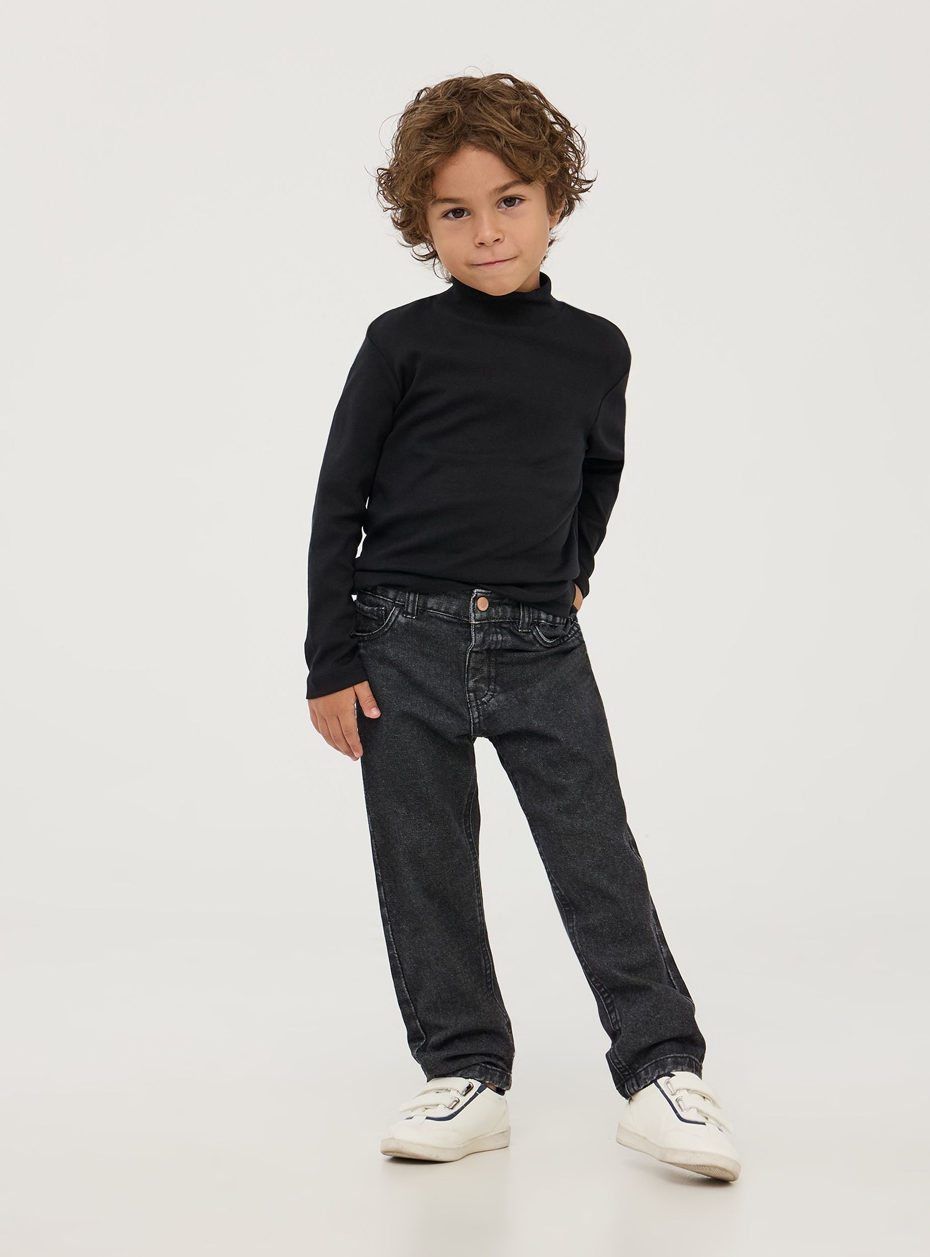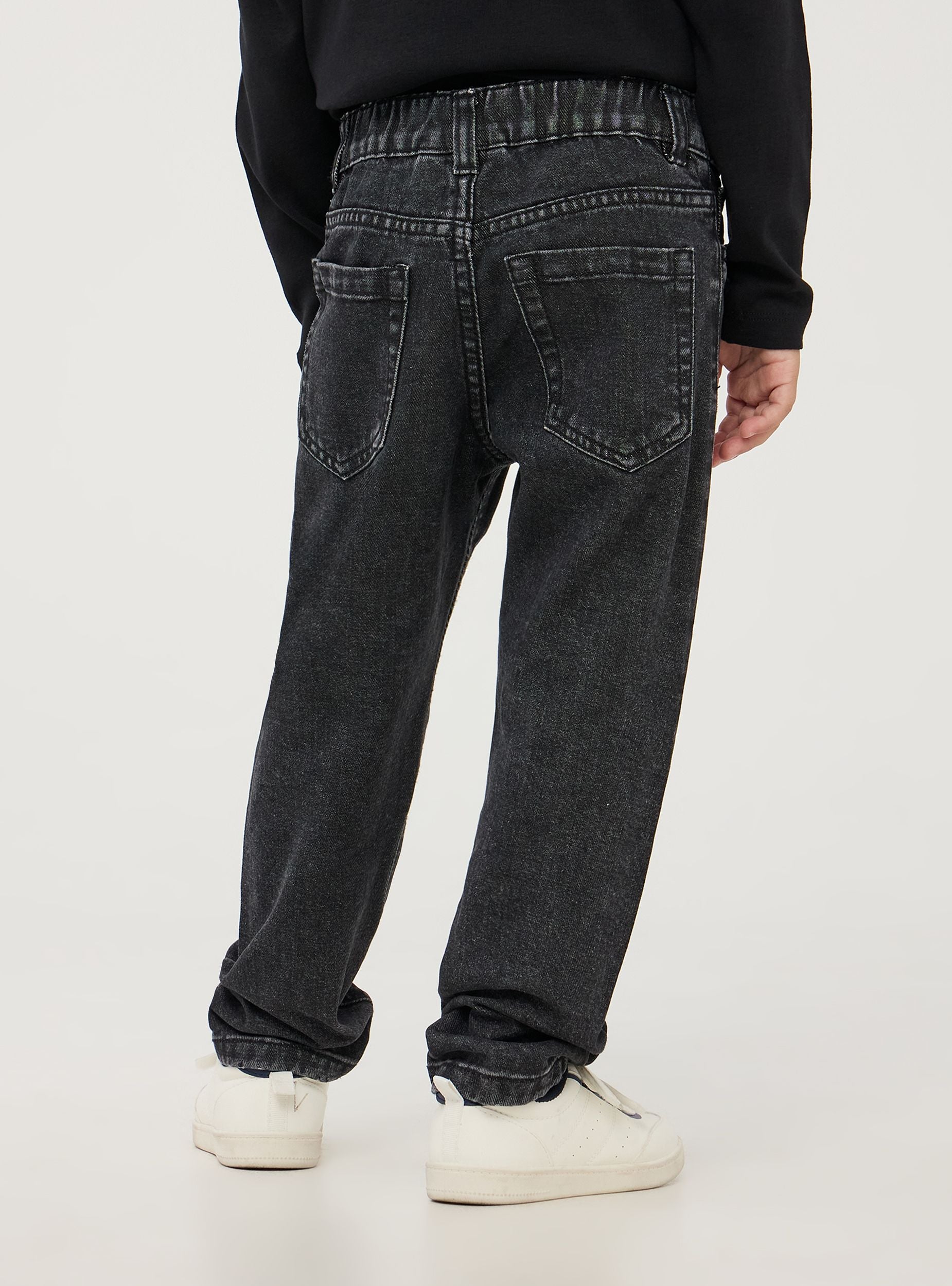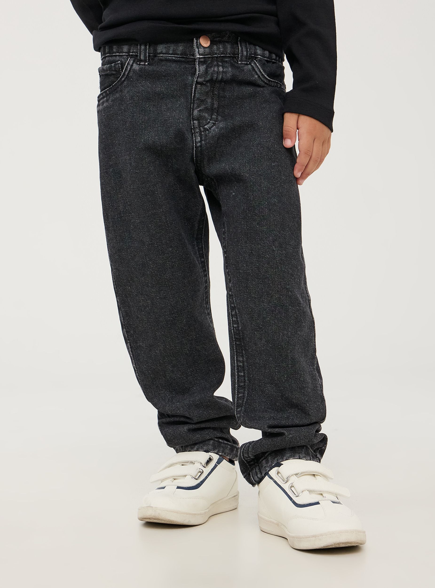 Jeans da bimbo regular fit realizzati in resistente denim di cotone. Il leggero effetto sbiadito dona un look moderno e versatile. Dotati di chiusura con bottone ed elastico in vita, presentano passanti in vita, finte tasche frontali e due tasche posteriori. La vestibilità regular offre comfort e libertà di movimento, ideale per un look casual quotidiano. Perfetti per l'asilo, la scuola o il tempo libero.