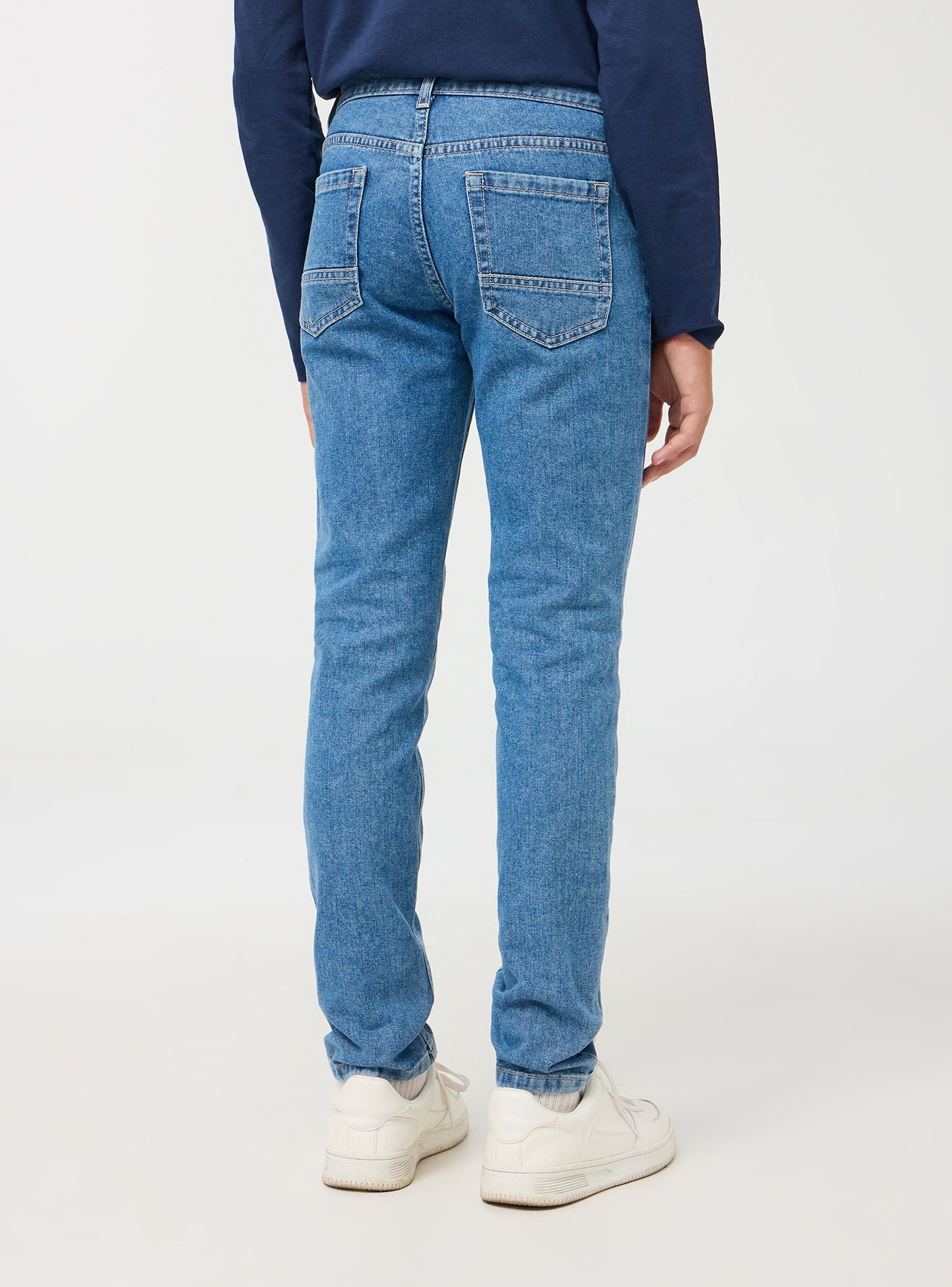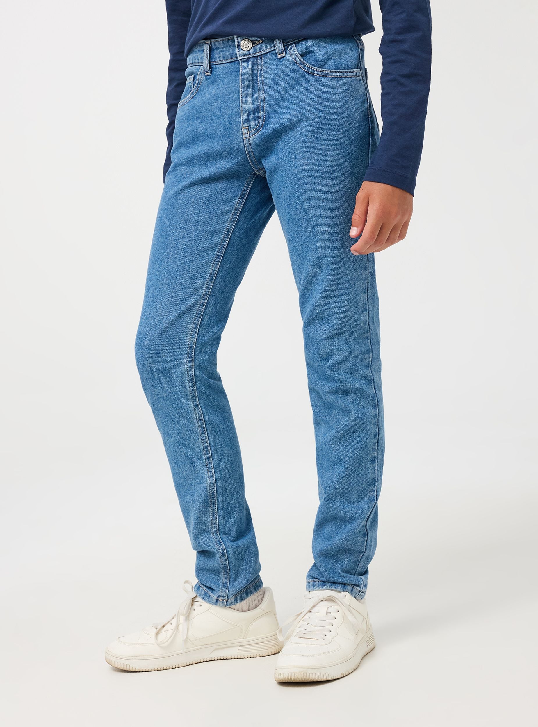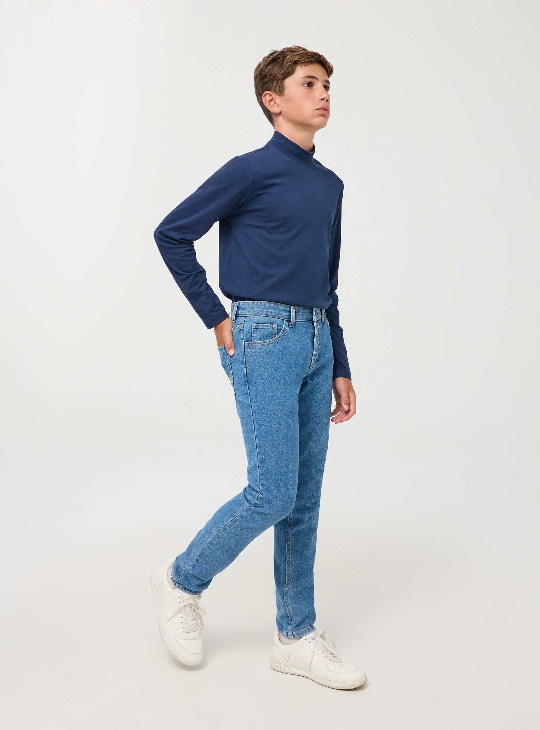 Questi jeans regular da bambino in denim azzurro sono un capo must-have, indispensabile nel guardaroba. Realizzati in cotone, offrono una vestibilità comoda. Dotati di cinque tasche classiche e chiusura con zip e bottone in metallo. Si abbinano facilmente con felpe o maglioncini e sneakers.