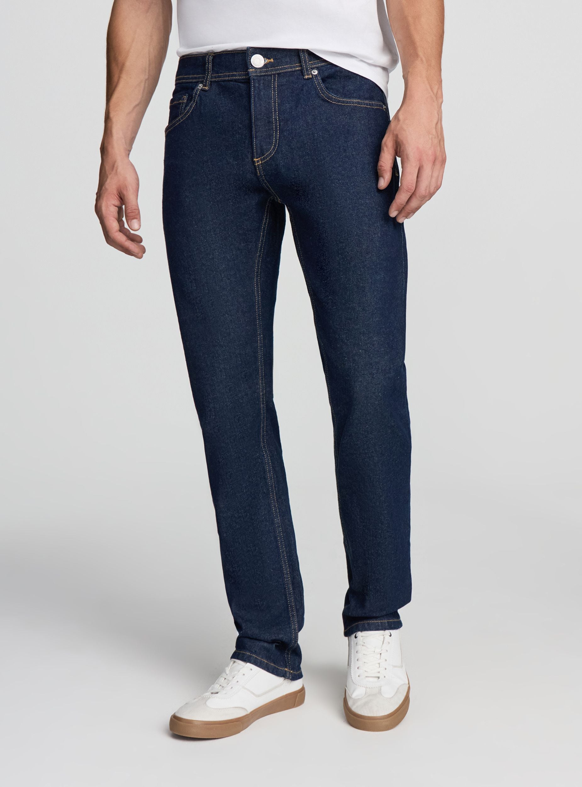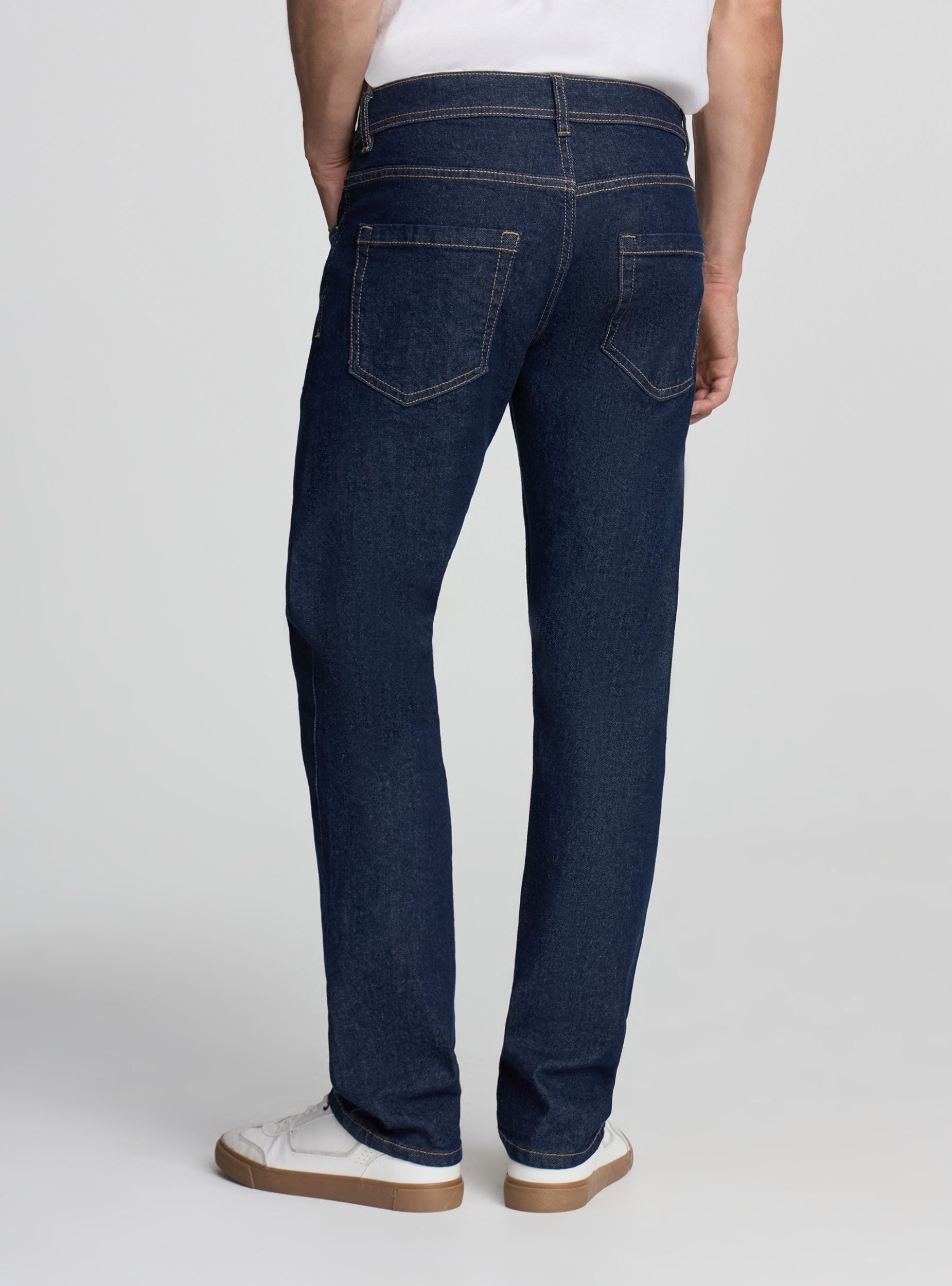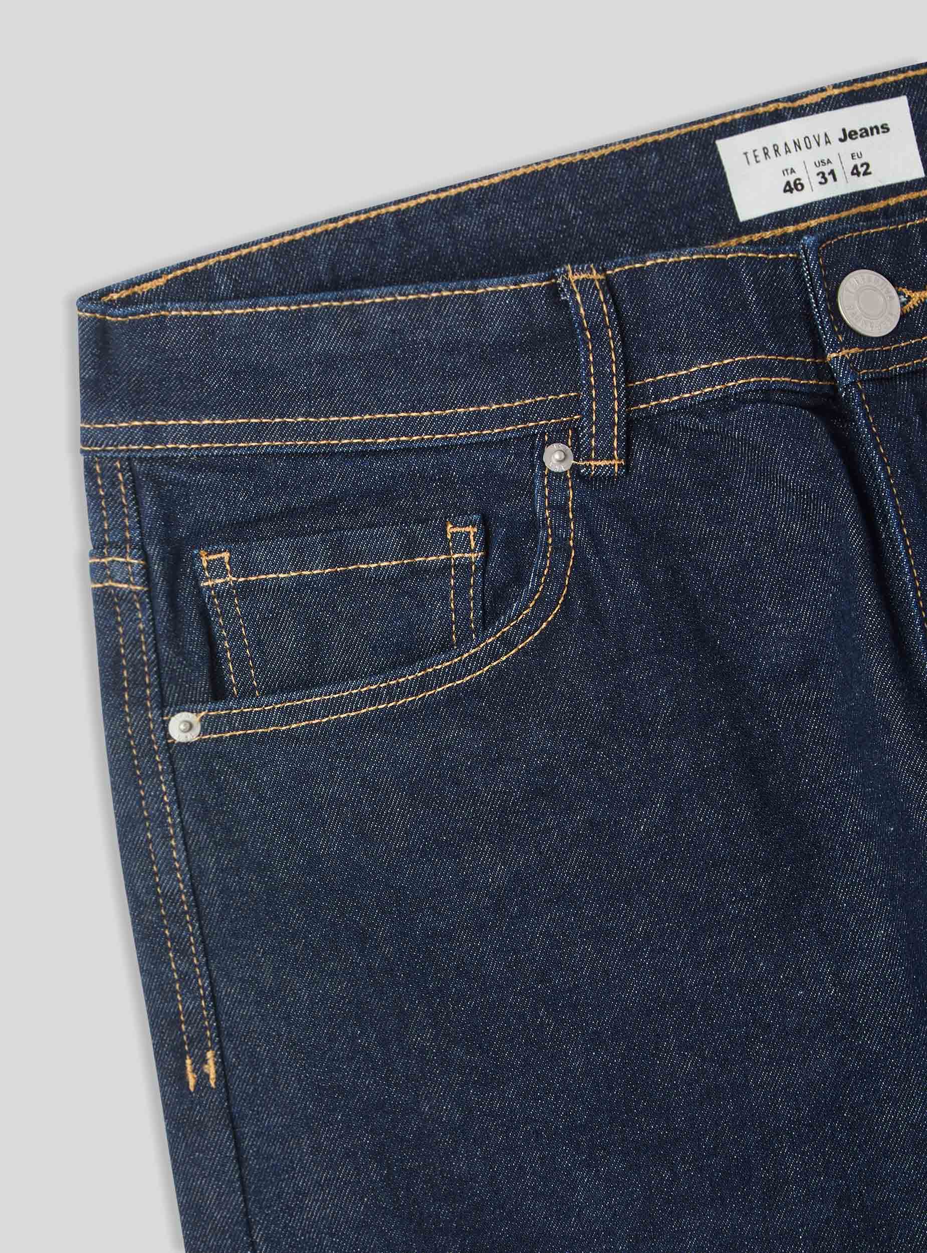 Jeans da uomo con vestibilità regular, perfetti per un look casual e versatile. Dotati di cinque tasche, chiusura con bottone e zip e passanti in vita per l’uso con cinture, sono caratterizzati da un lavaggio scuro che li rende ideali per abbinamenti con camicie eleganti o t-shirt per occasioni informali e serate casual.